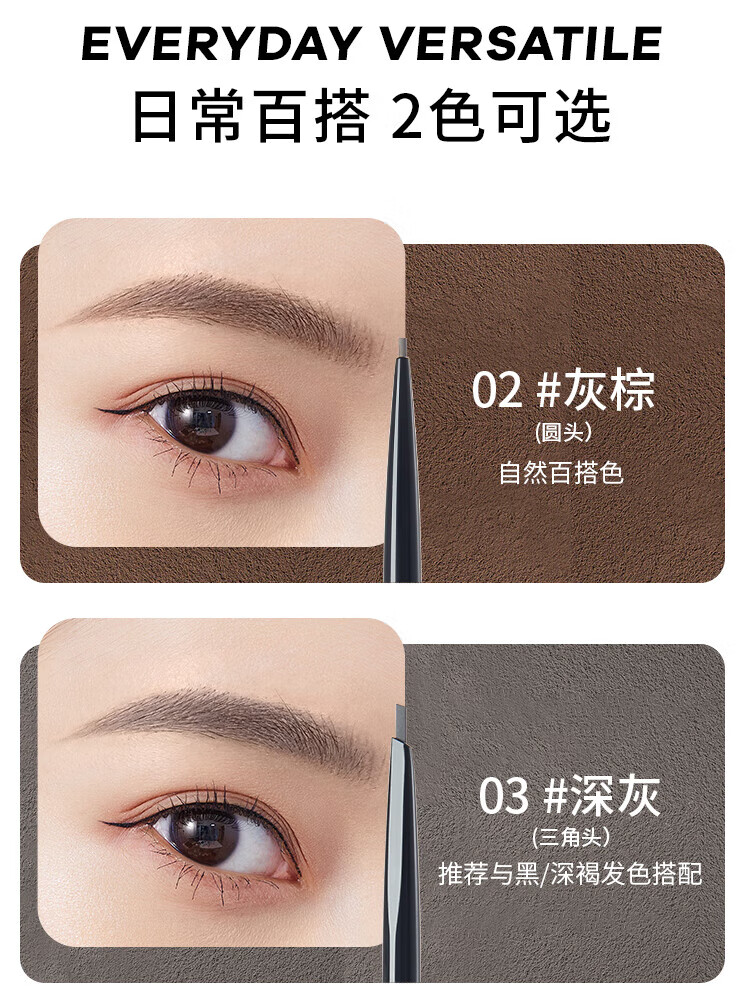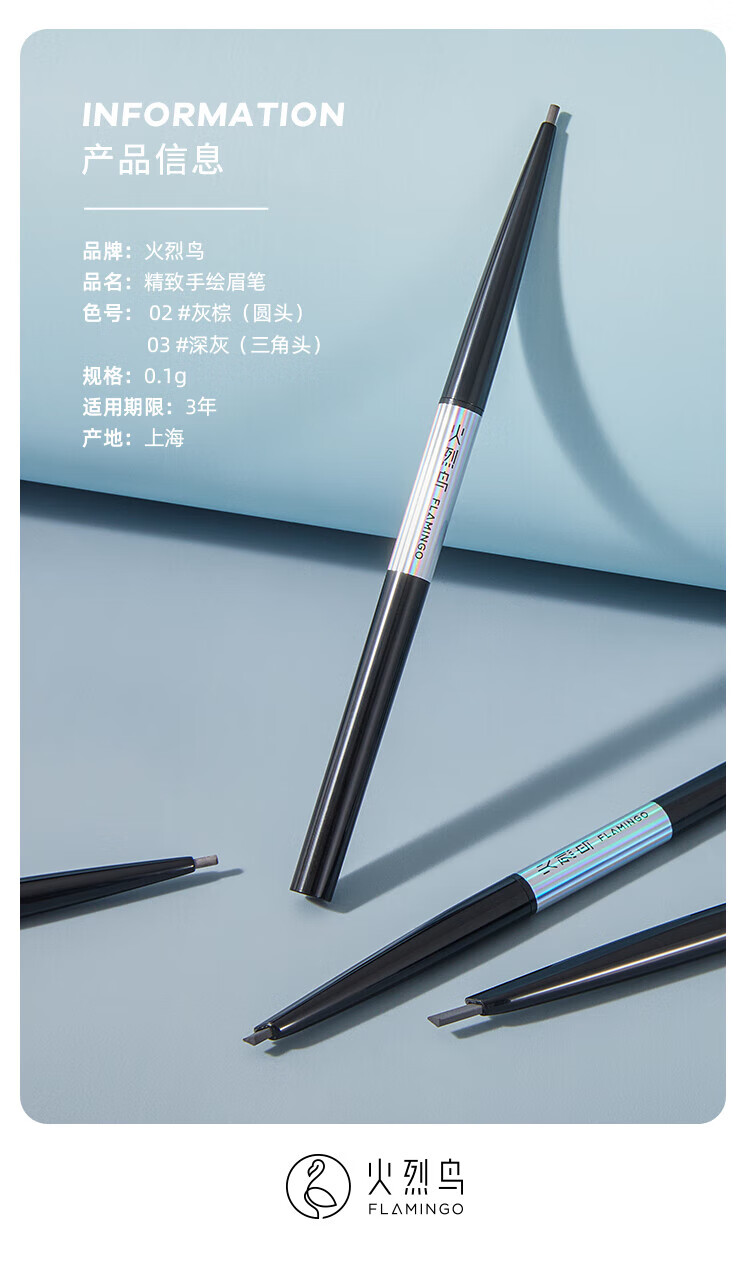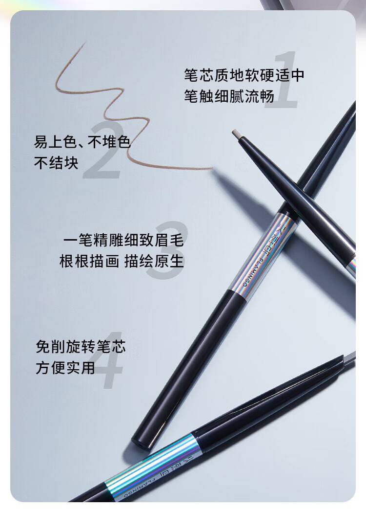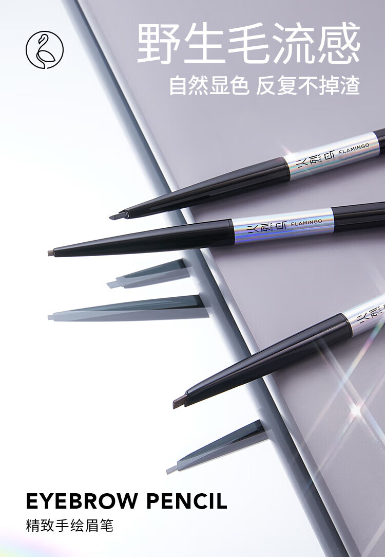 Flamingo Eyebrow Pencil, thin refill, not easy to fade, thin tip, hard core, clear and natural eyebrows for beginners, beginners 02# gray brown (single fine round tip)