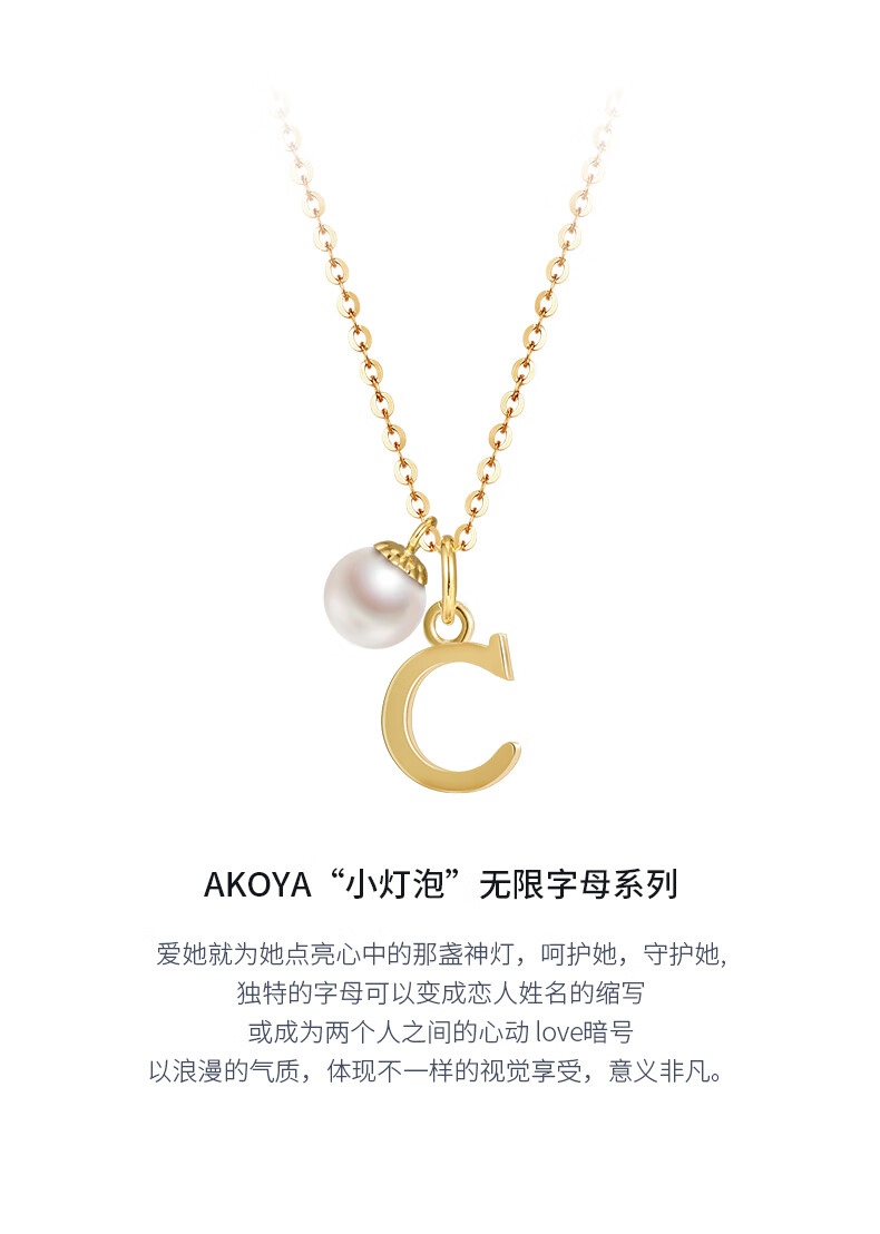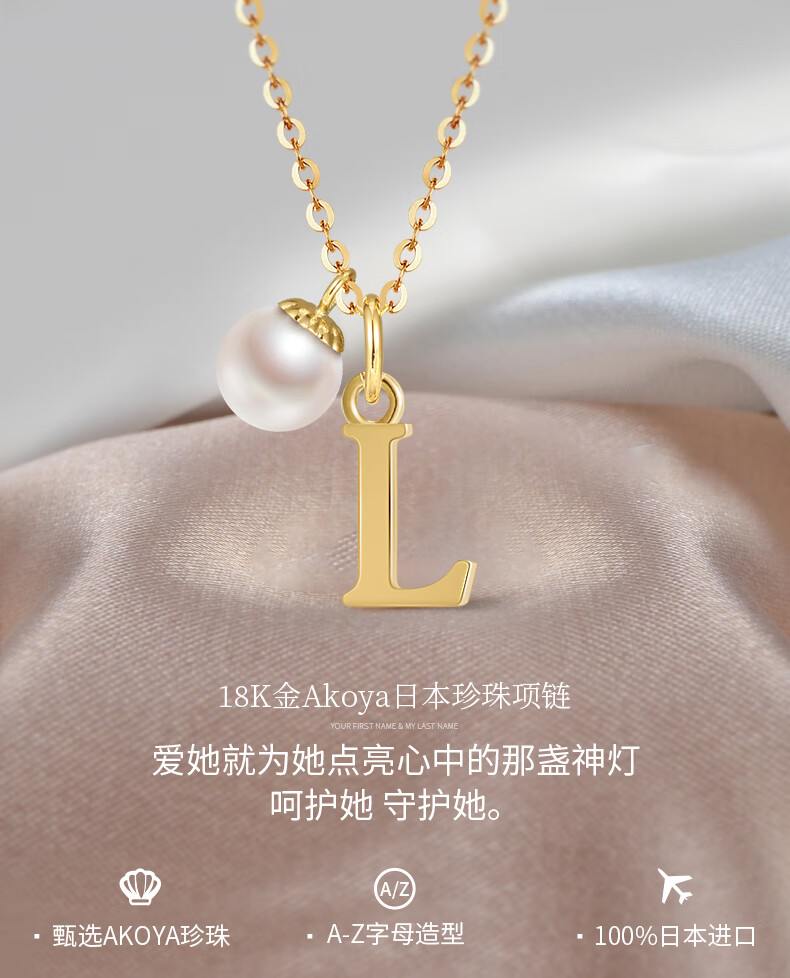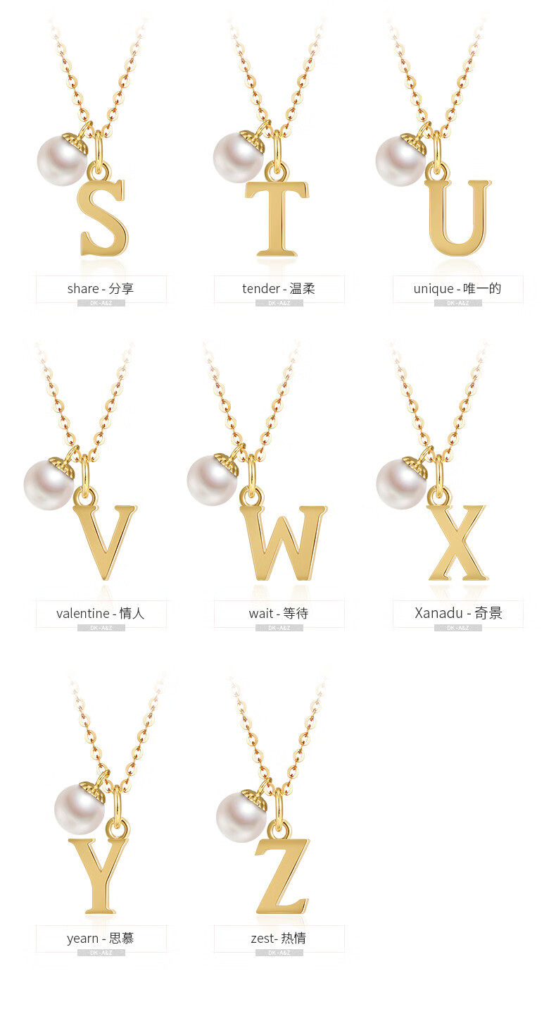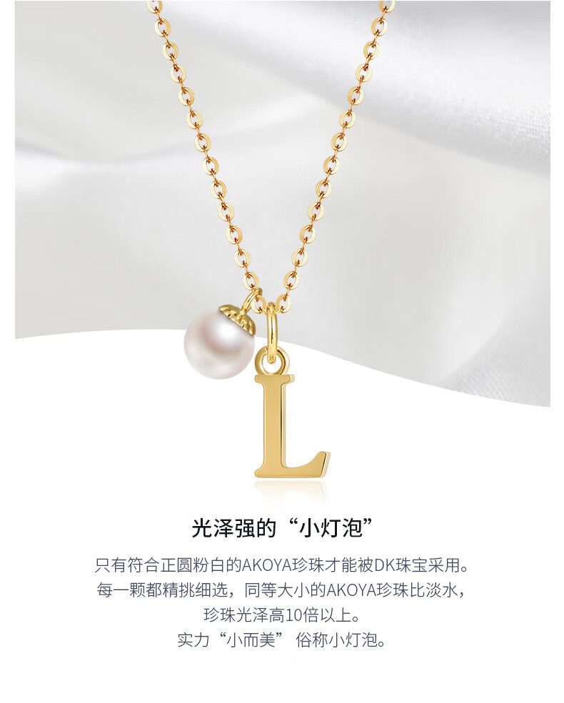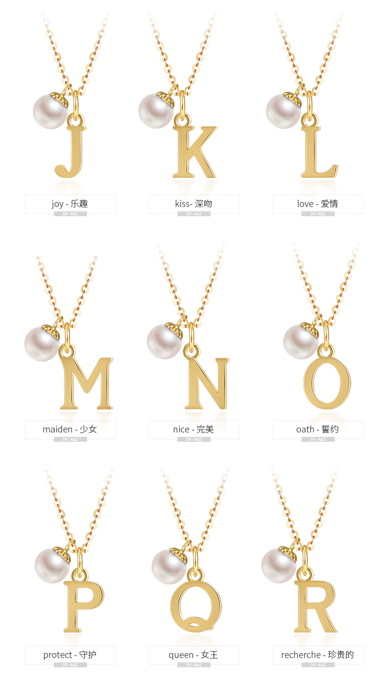 DK18k gold necklace AU750 color gold letter clavicle chain Japanese Akoya pearl necklace Valentine's Day birthday gift Japanese Akoya pearl letter pendant Letter W