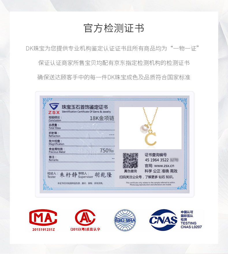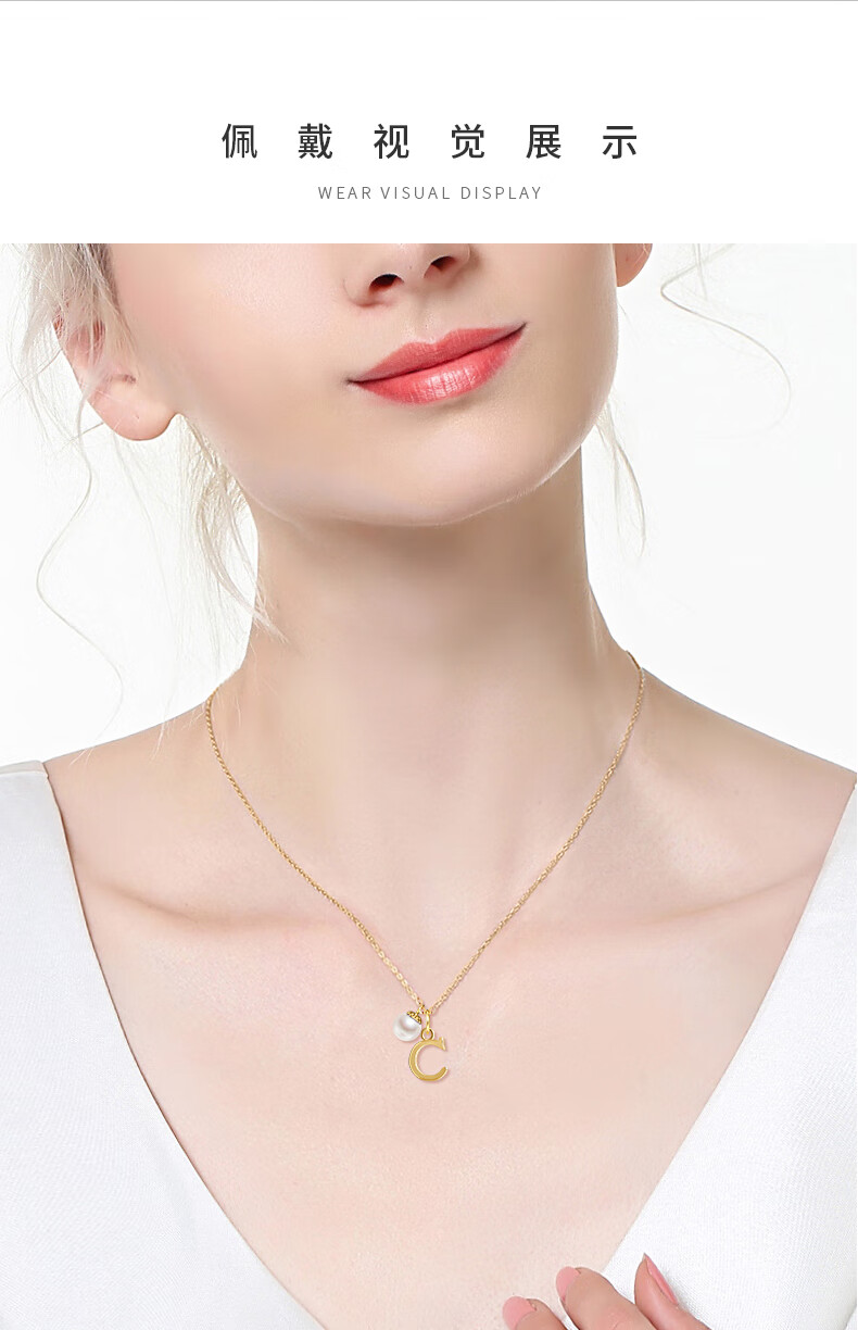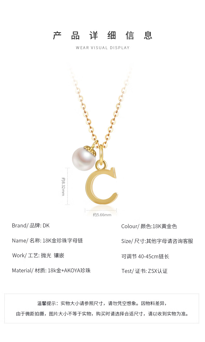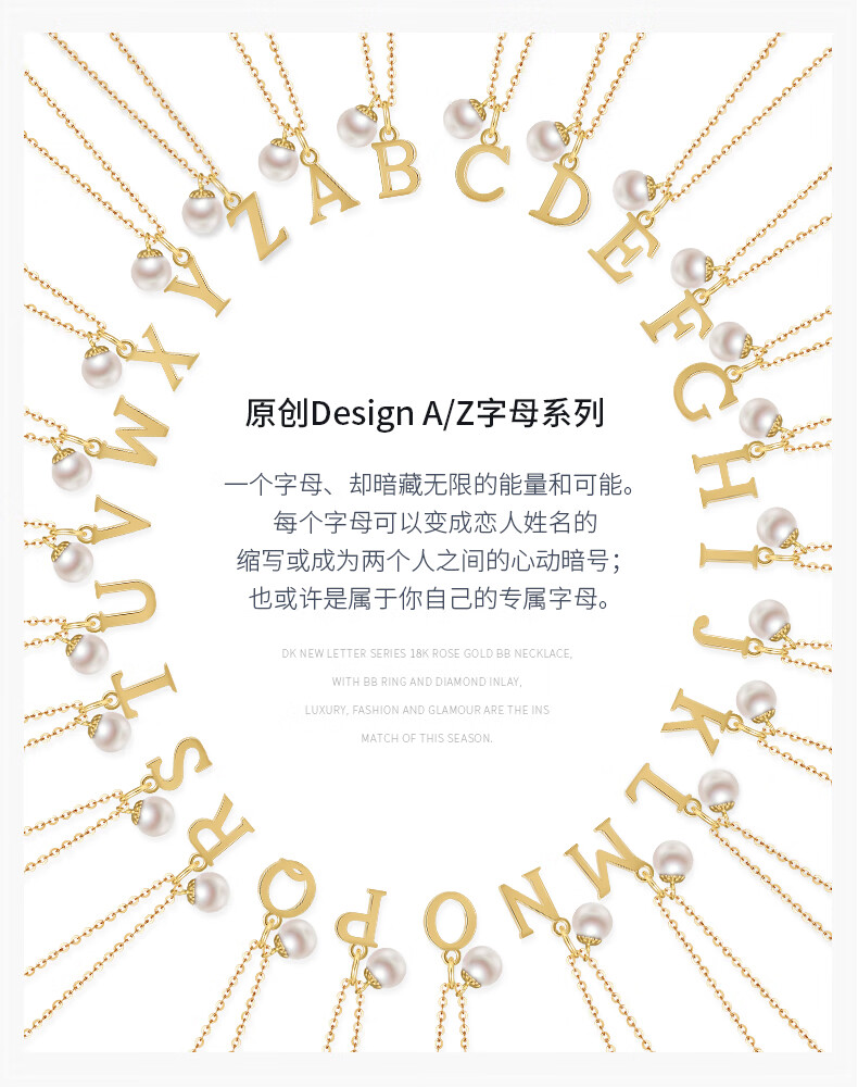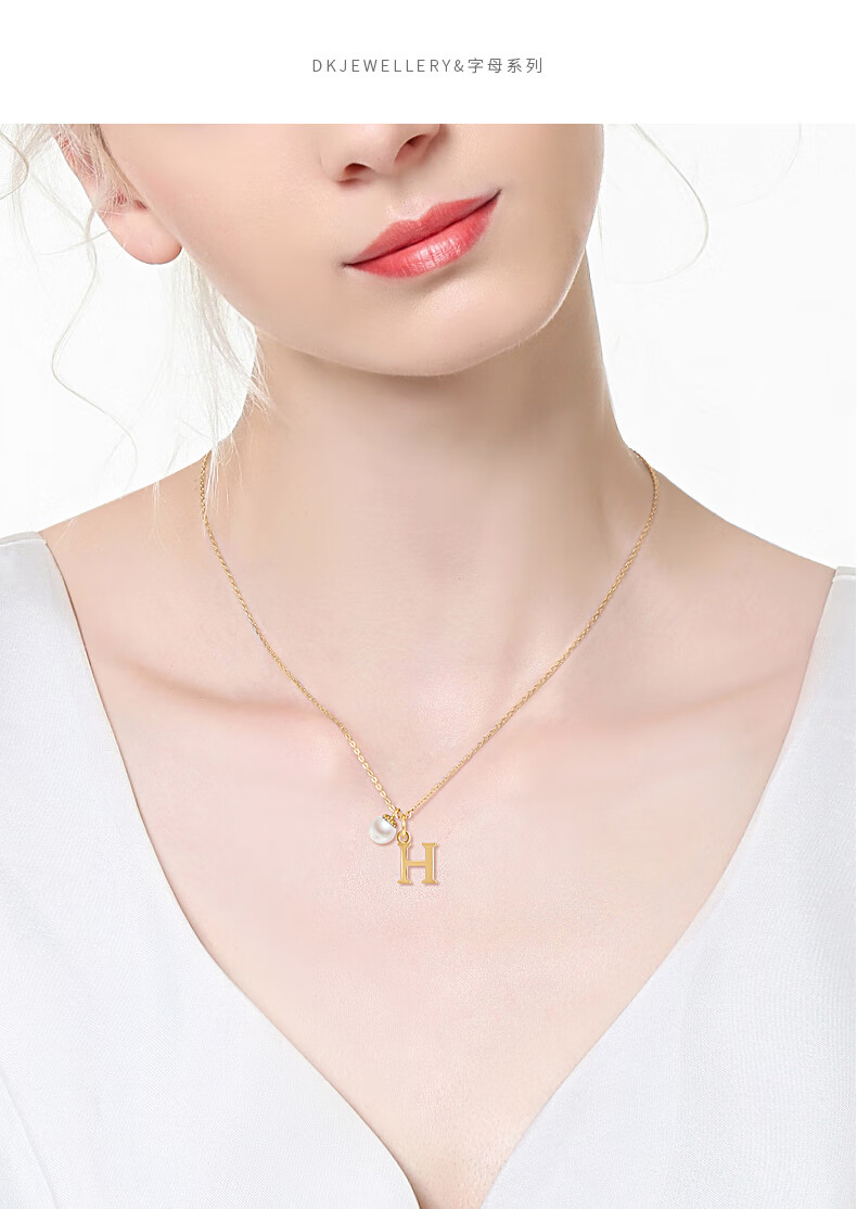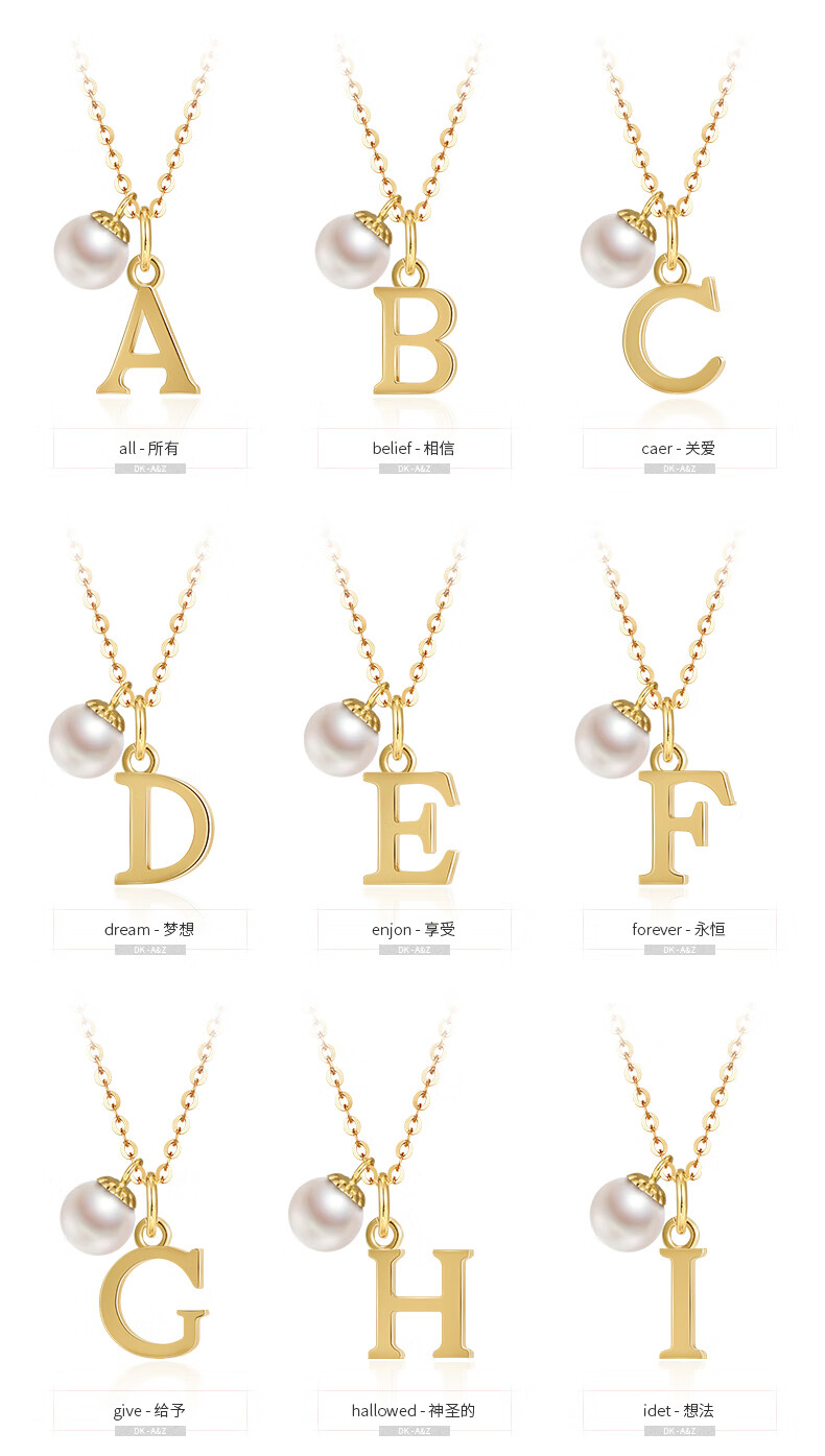 DK18k gold necklace AU750 color gold letter clavicle chain Japanese Akoya pearl necklace Valentine's Day birthday gift Japanese Akoya pearl letter pendant Letter W