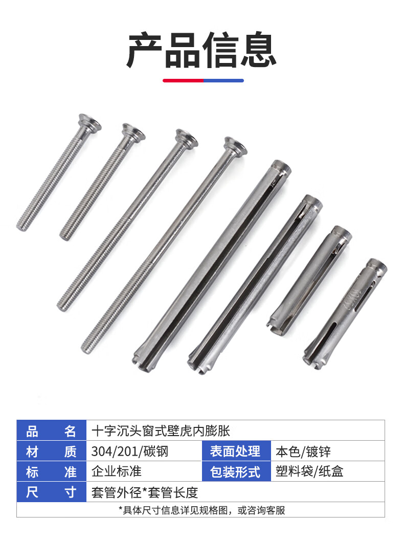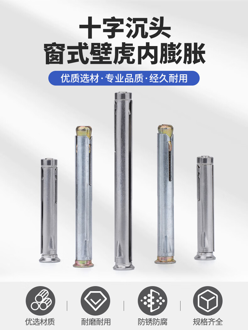 Jinggong Iron Stainless Steel Window Gecko Countersunk Head Cross Expansion Screw Door and Windows Special Pull Expansion Screw M8M10 Carbon Steel Galvanized M10*182 (5 pcs) Punch 10mm