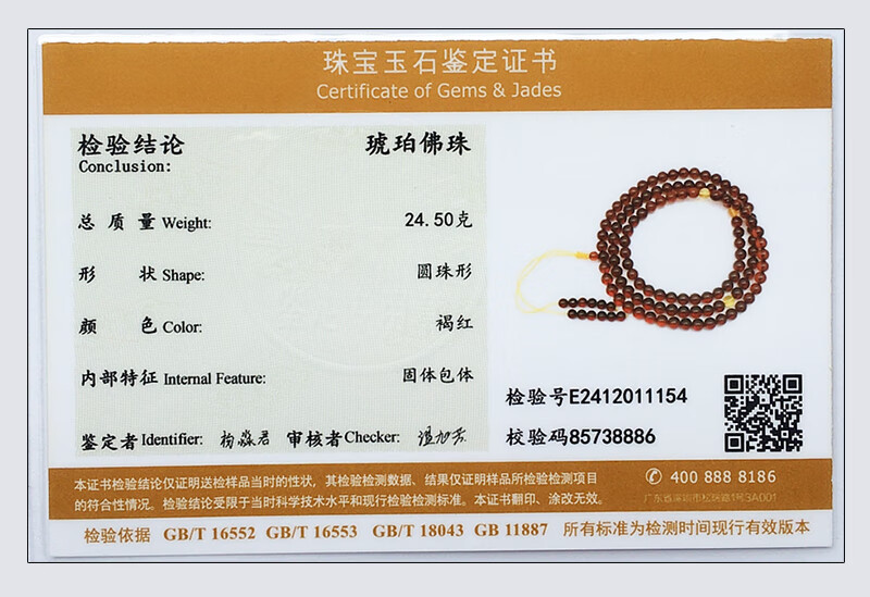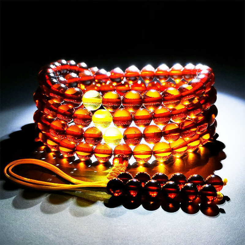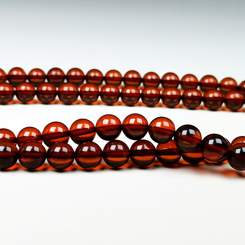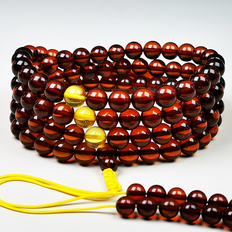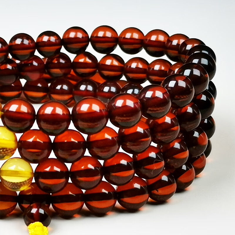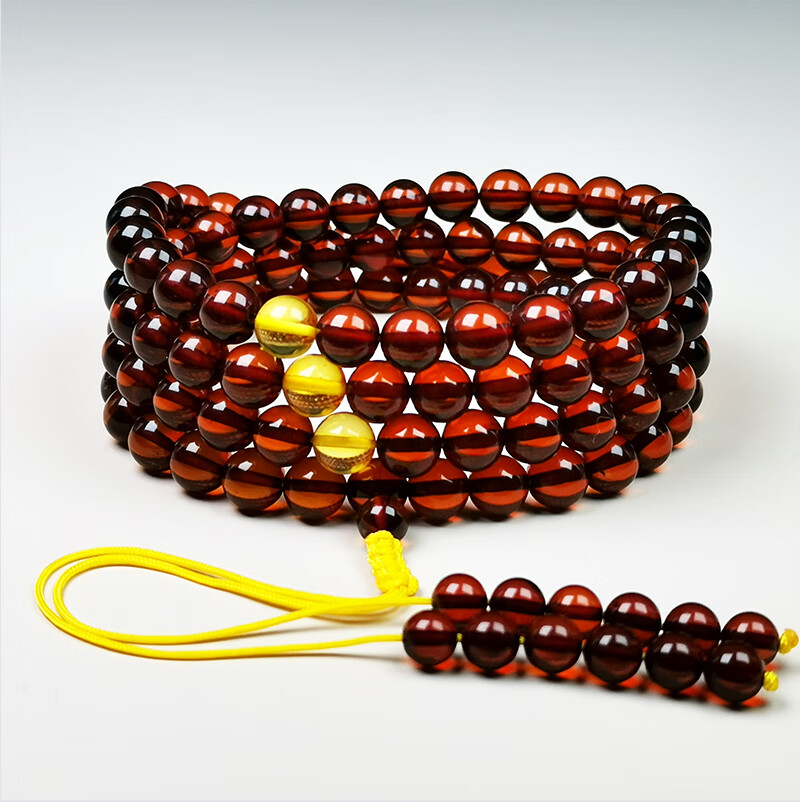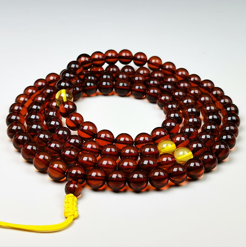 Amber style, one thing, one picture, one certificate, 108 amber bracelets, Buddhist beads, rosary necklace, men's and women's bracelets, burgundy, beads, 24.5g, 7mm