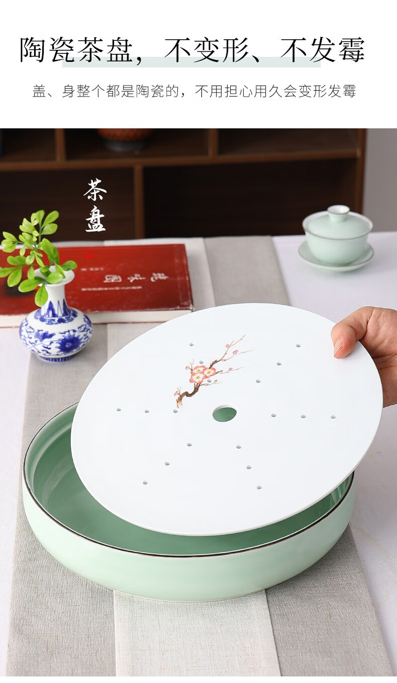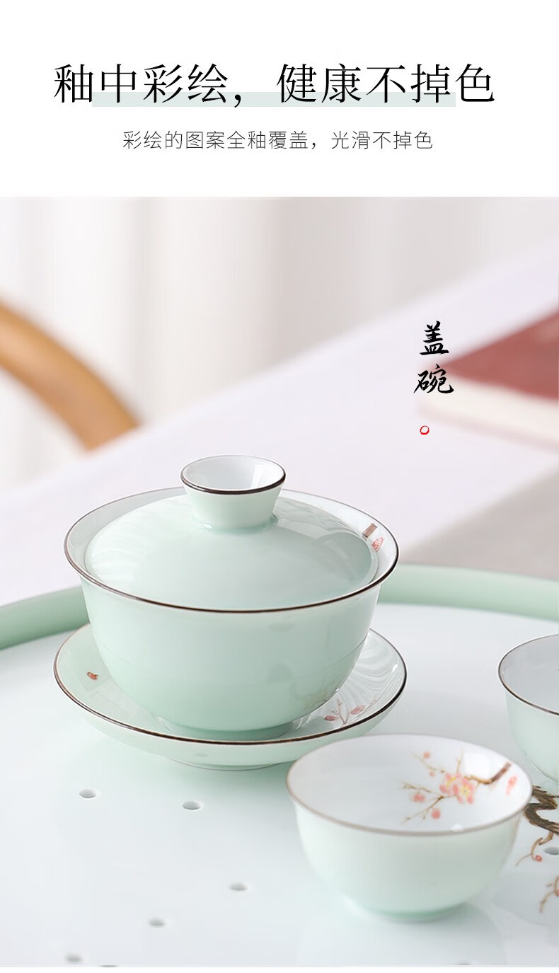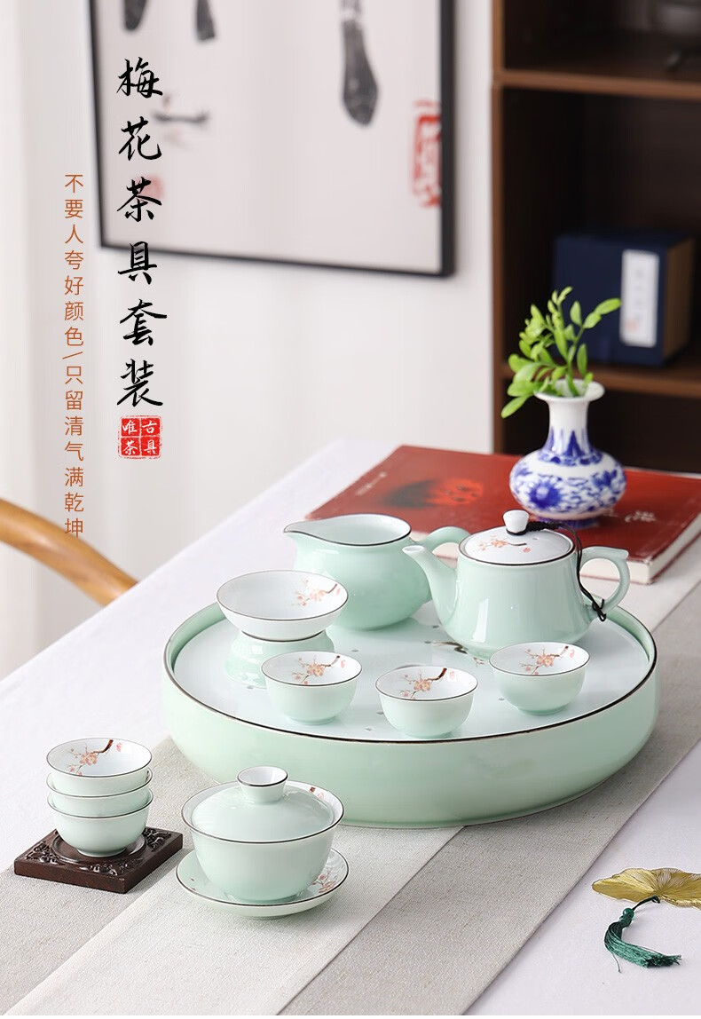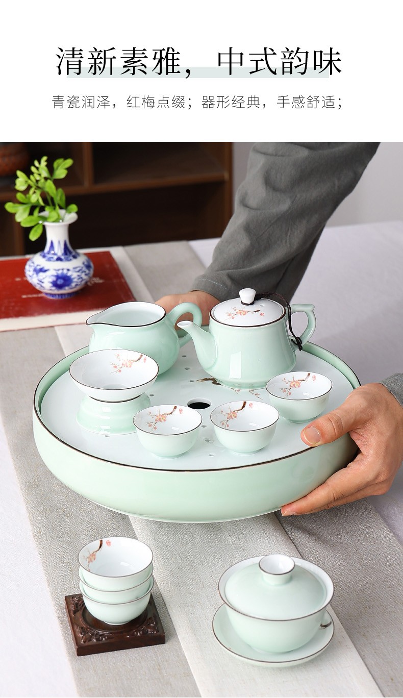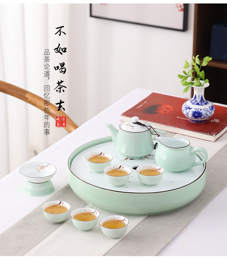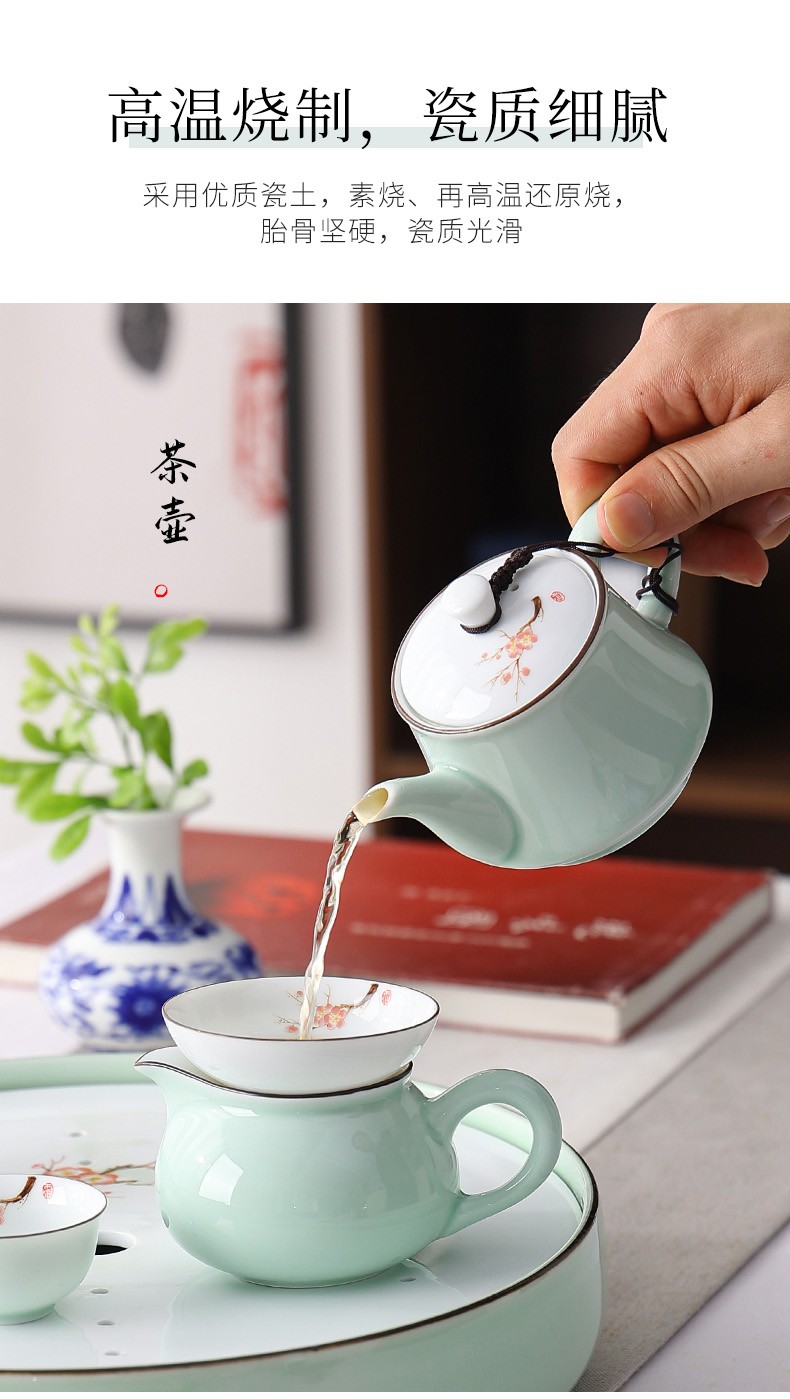 Only ancient Chaoshan Kung Fu tea set, household small set, celadon tea tray, teapot, covered bowl, teacup, ceramic tea boat, office tea sea, teapot, ceramic tea tray, 10-piece set (ordinary packaging)