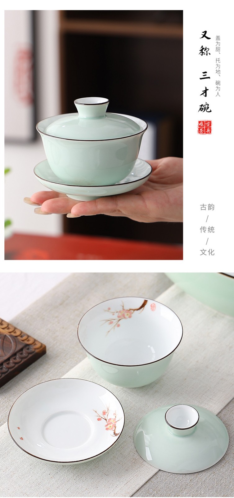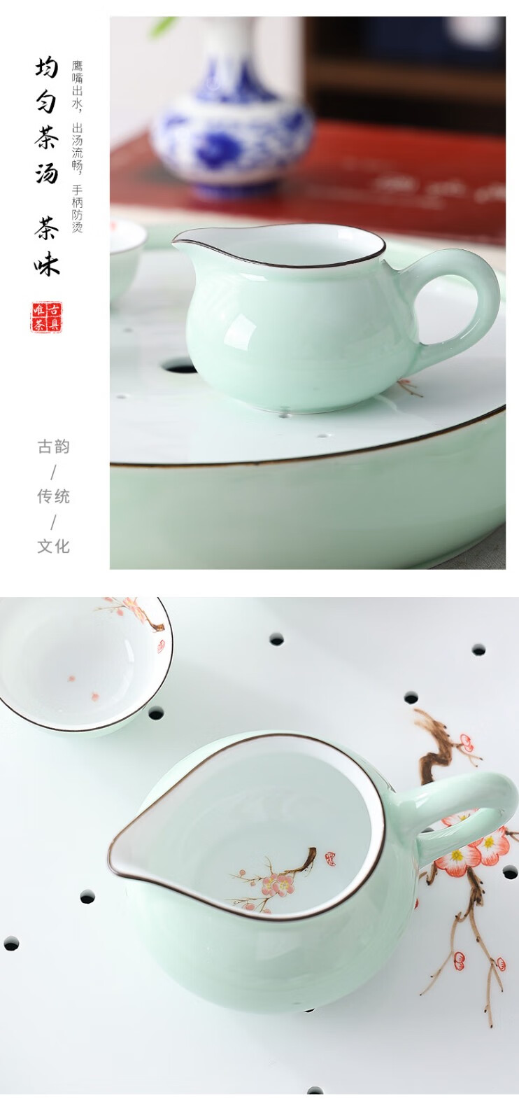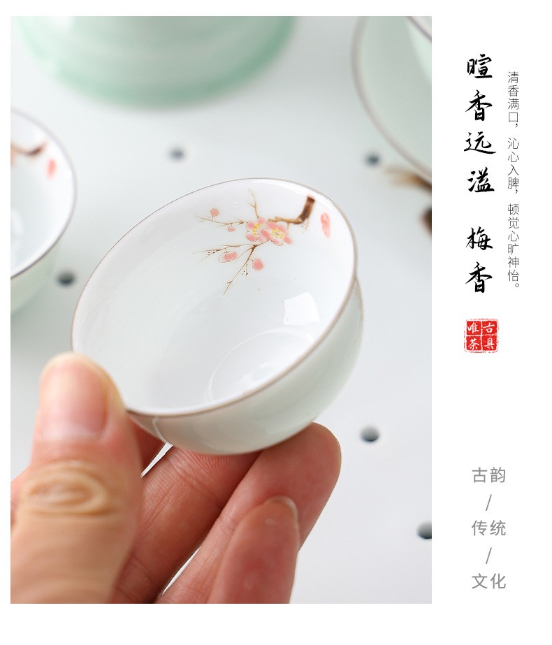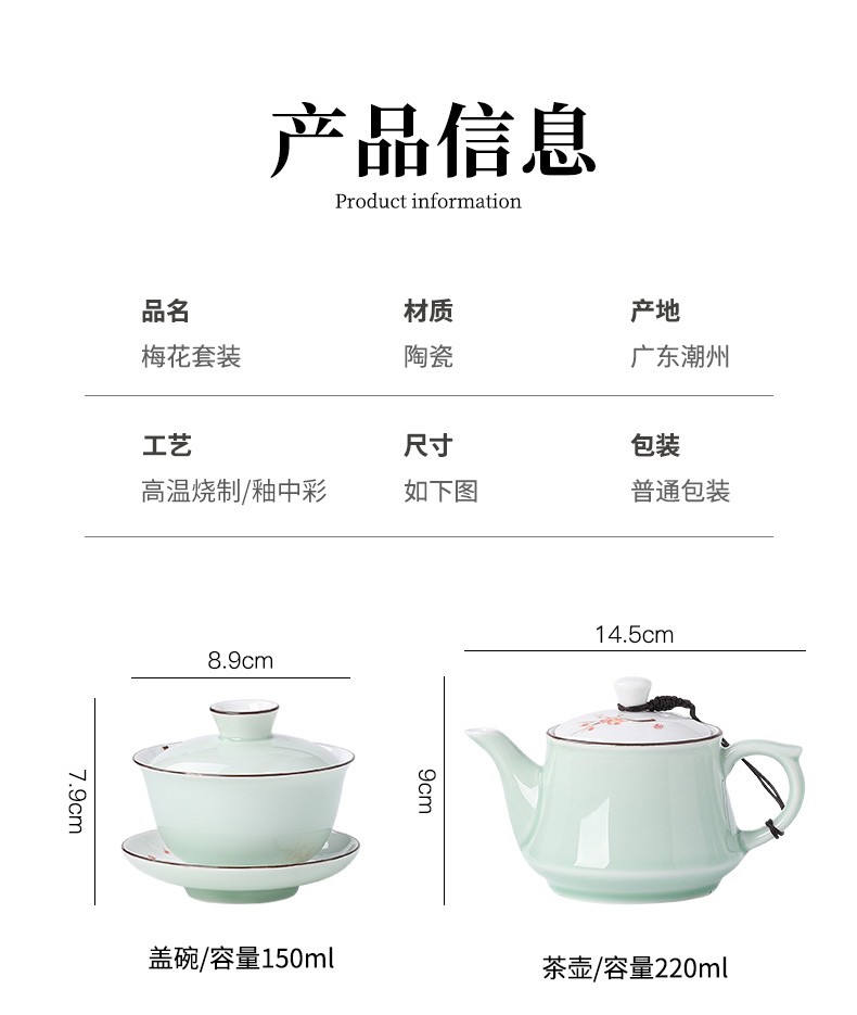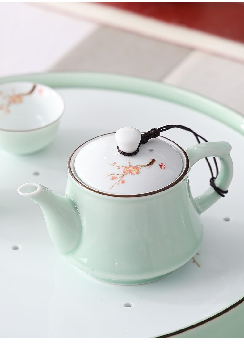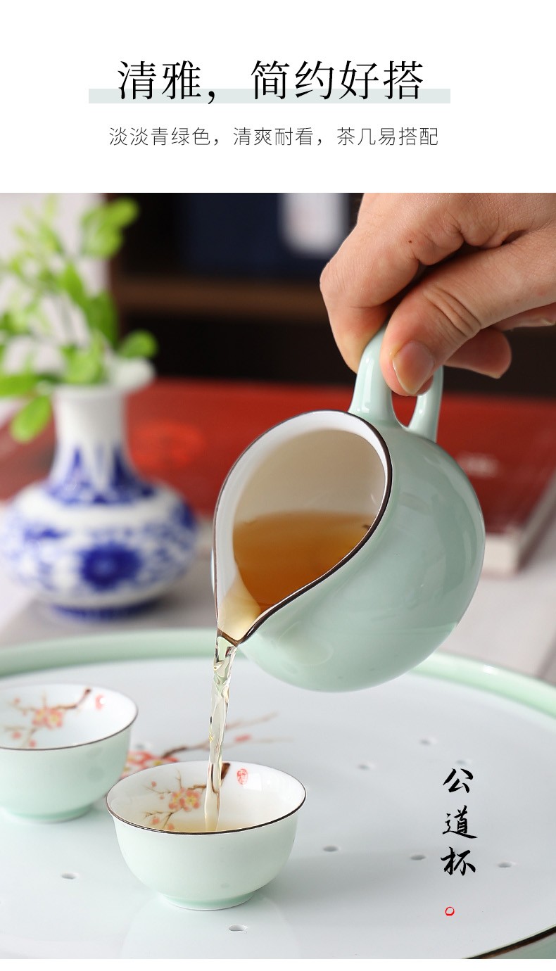 Only ancient Chaoshan Kung Fu tea set, household small set, celadon tea tray, teapot, covered bowl, teacup, ceramic tea boat, office tea sea, teapot, ceramic tea tray, 10-piece set (ordinary packaging)