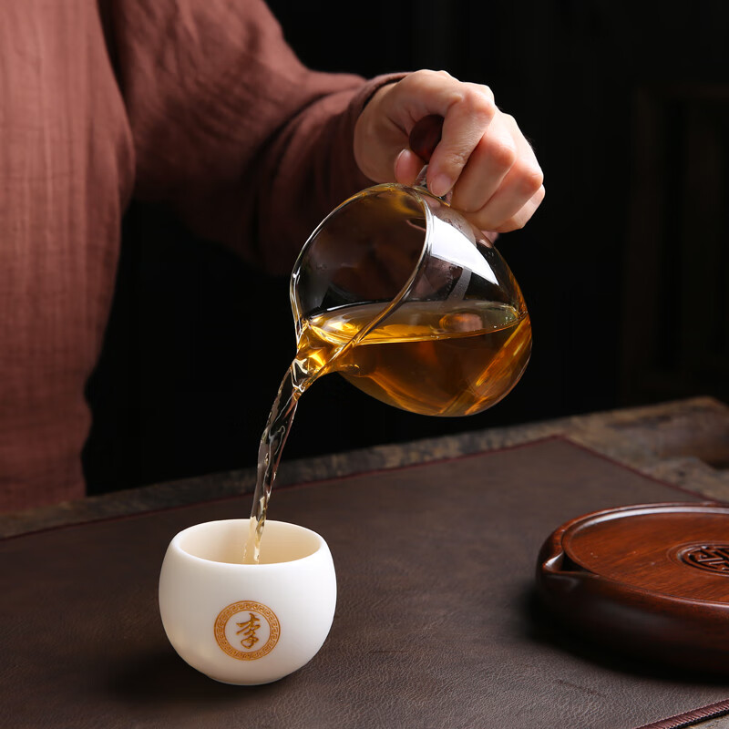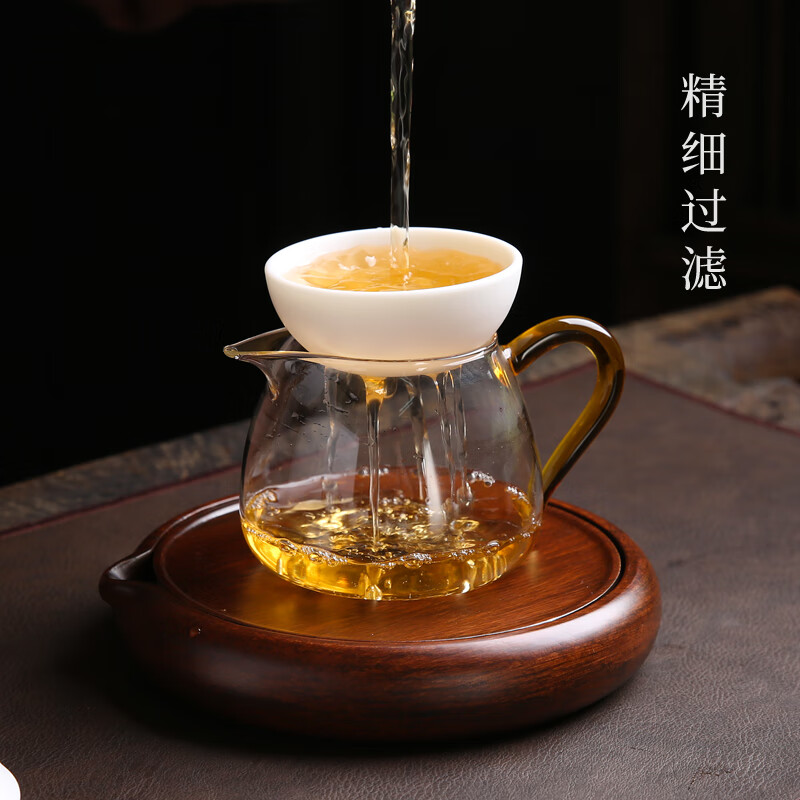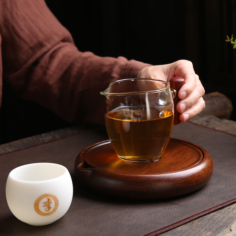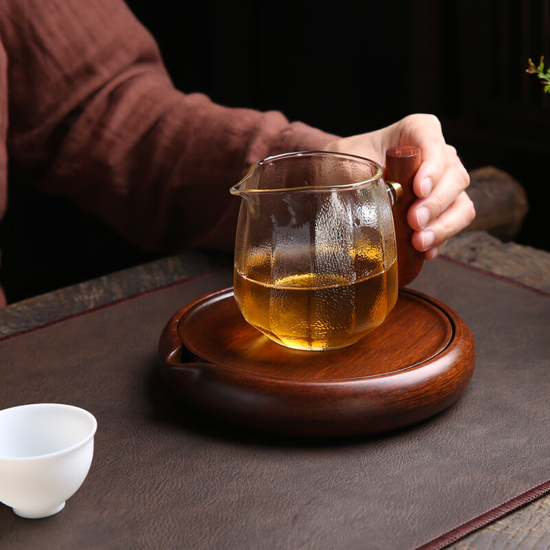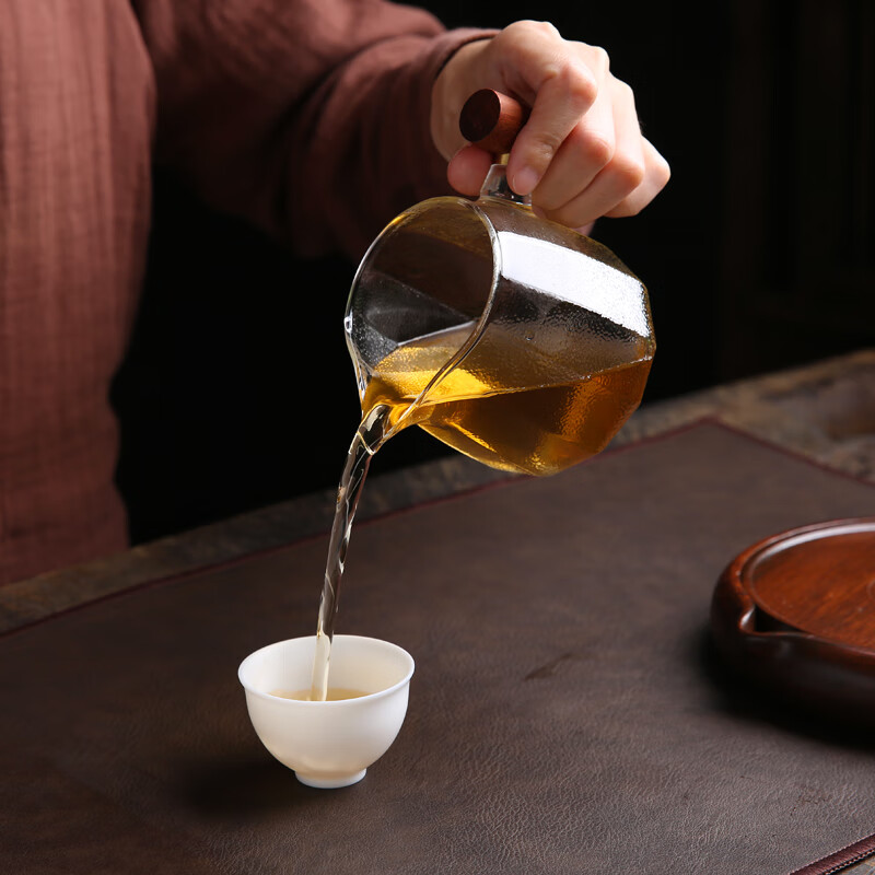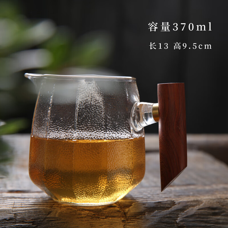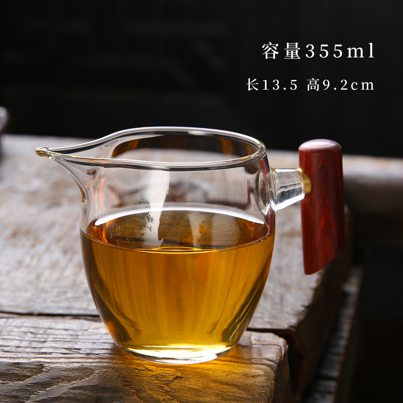Hanli glass fair cup thickened heat-resistant tea divider tea sea Kungfu tea set accessories high borosilicate male cup medium and large tea ceremony wooden handle high transparency anti-scalding high-end glass fair cup (390ml)