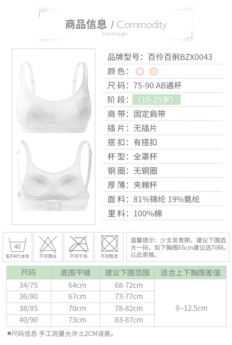 Bilim developmental girls underwear, no rims, no sponge, thin vest-style student bra ZX0043 0003 gray 75B