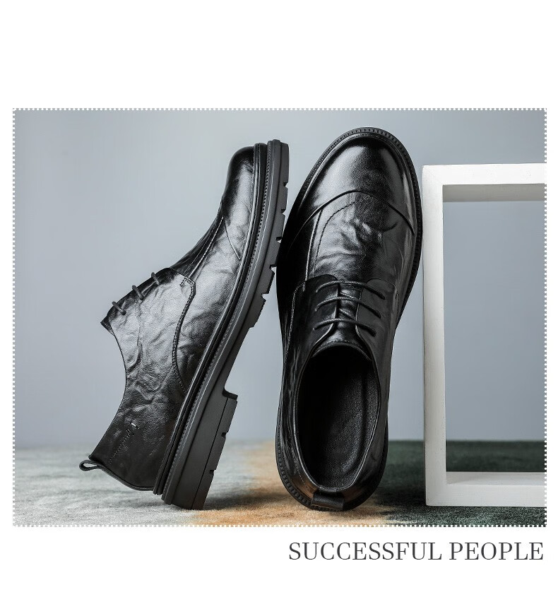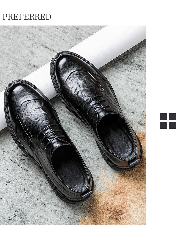 Walker Shop Fashionable Big Toe Shoes for Men 2025 New British Soft Sole Increased Men's Commuting Business Casual Leather Shoes Black 42