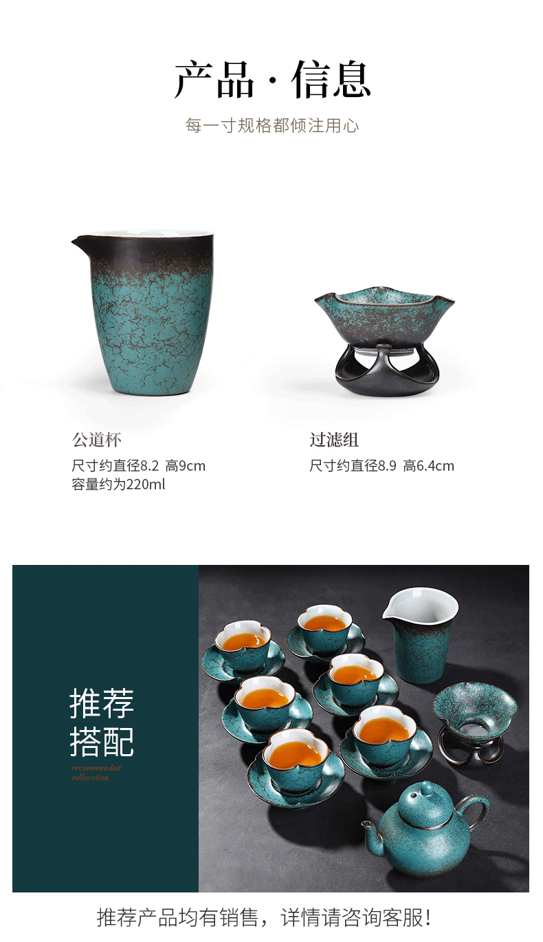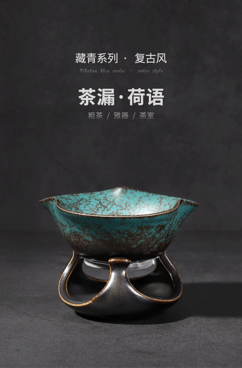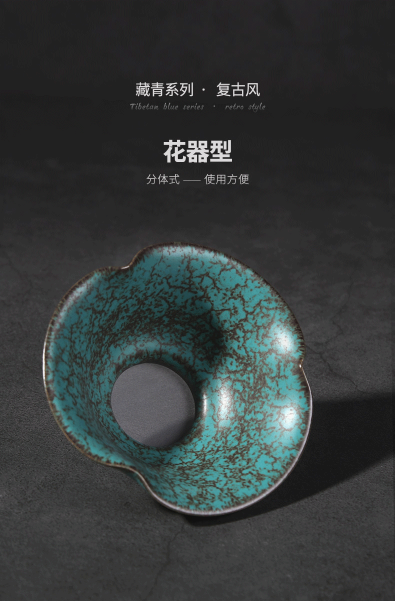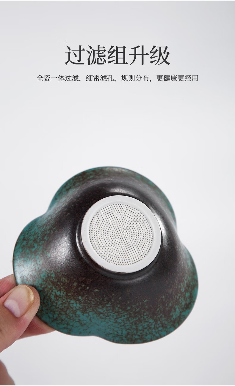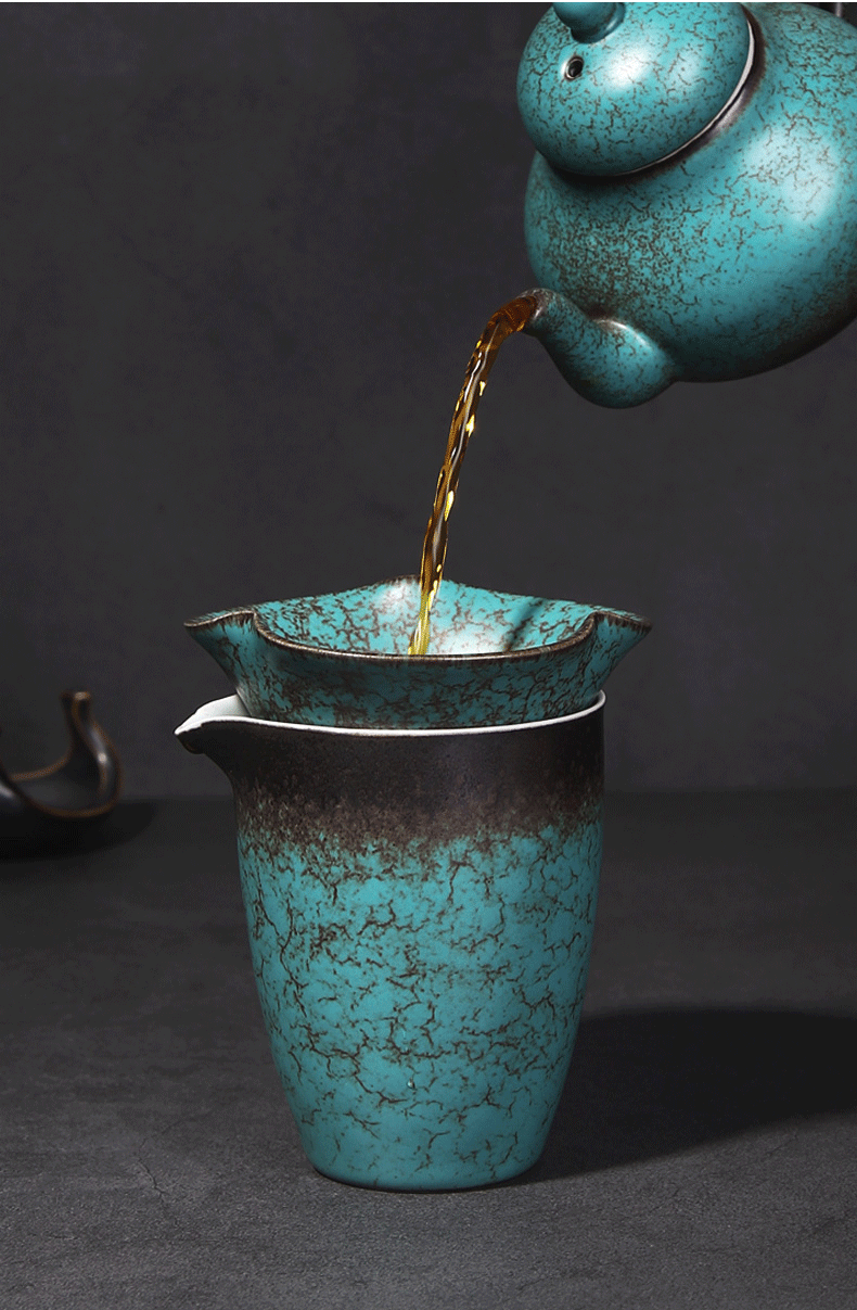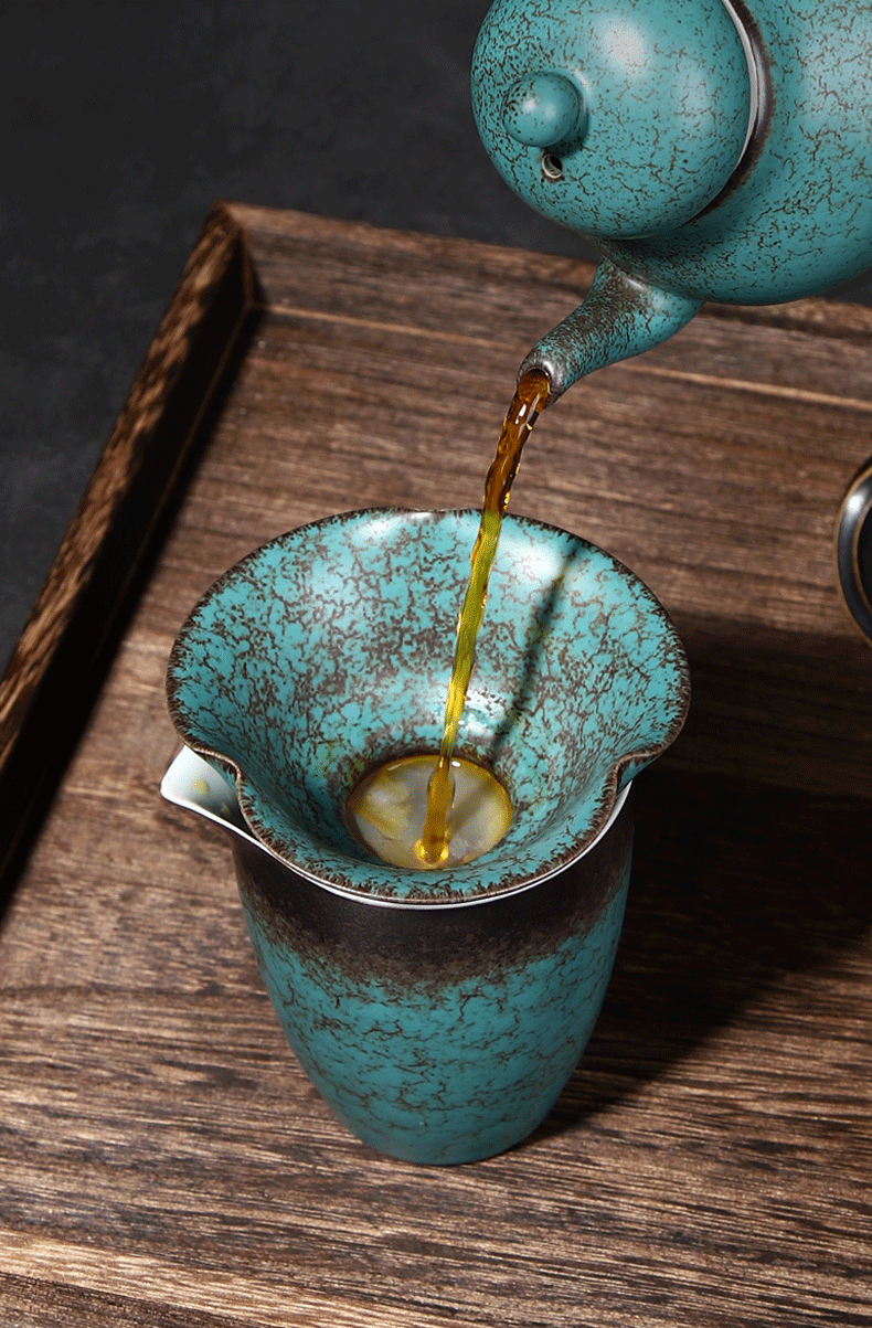 Tang Feng Ceramic Tea Strainer Household Retro Personalized Tea Strainer Kiln Transformed Tianmu Glaze Filter Tea Divider Kungfu Tea Strainer Dutch Tea Strainer (Green) + Luwu Justice Cup