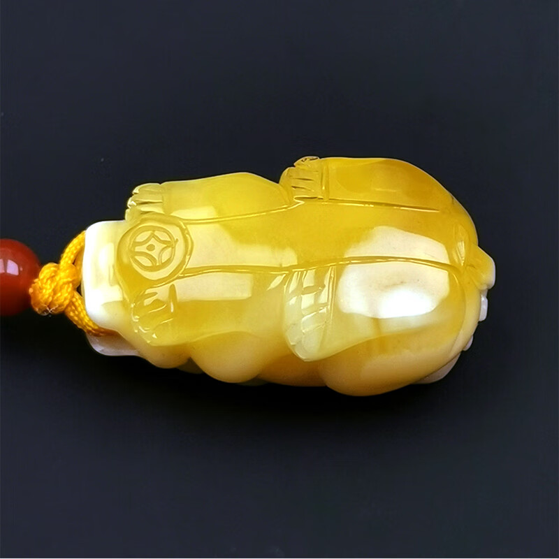 Amber School, one thing, one picture, one proof, beeswax pendant, Pixiu, natural amber, men's and women's pendant, sweater chain, unbaked color, Pixiu pendant, 5.95g, 32*17*16mm