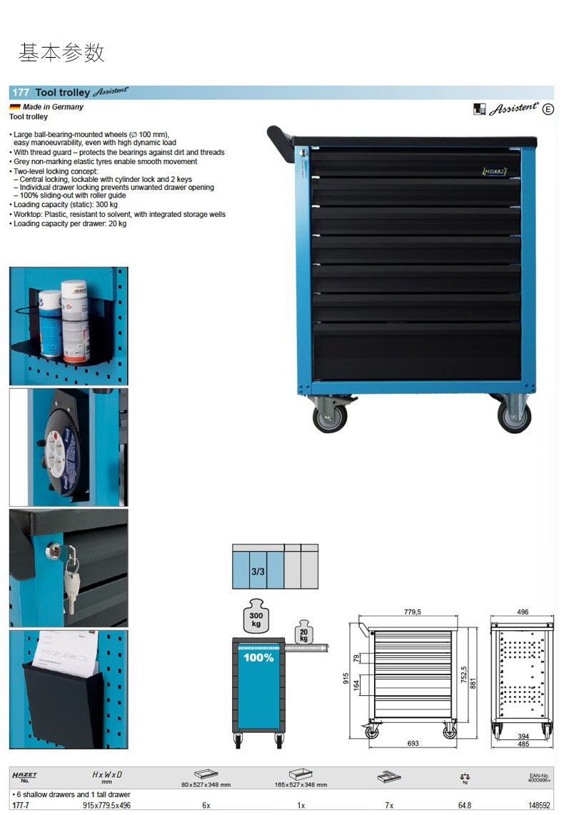 German HAZET original imported tool cart multi-function trolley auto repair tool cabinet 7 drawers 177-7