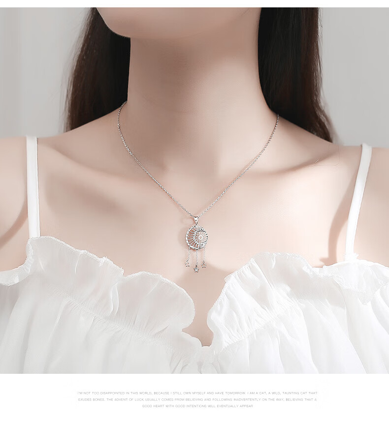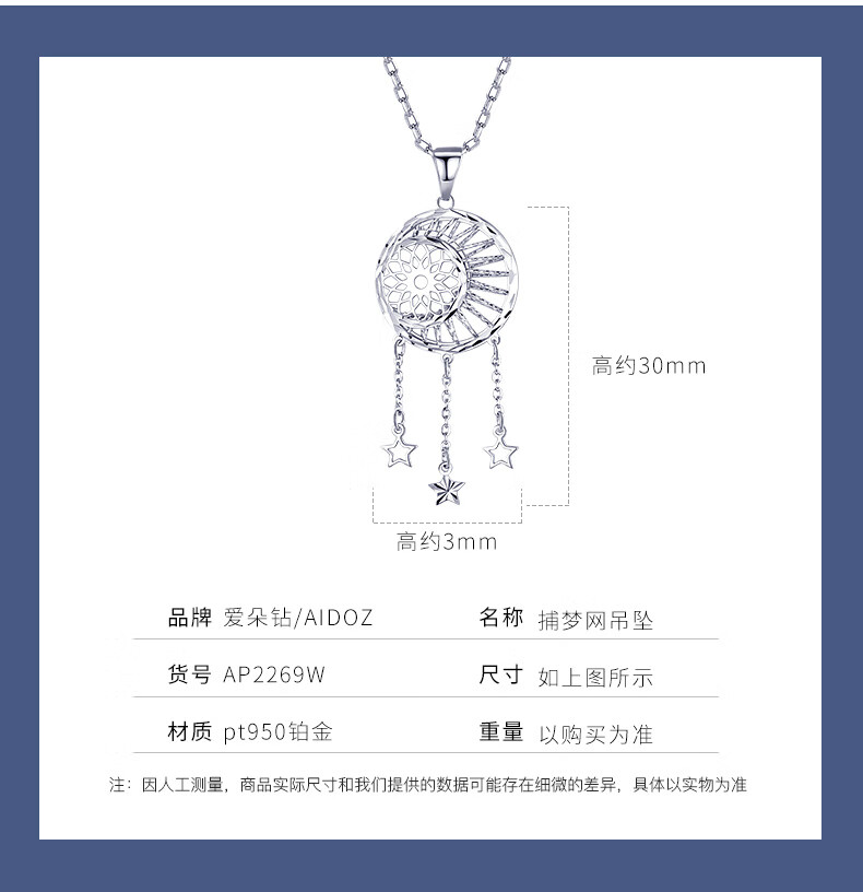 Aido Diamond pt950 platinum dream catcher pendant for women, fashionable platinum tassel pendant gift for wife, weight 1.9-2.1 grams + delivery silver chain