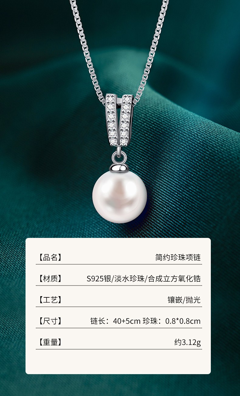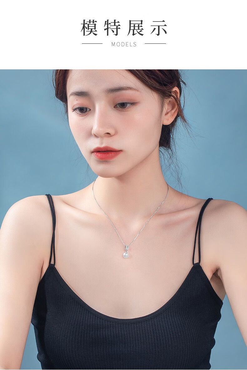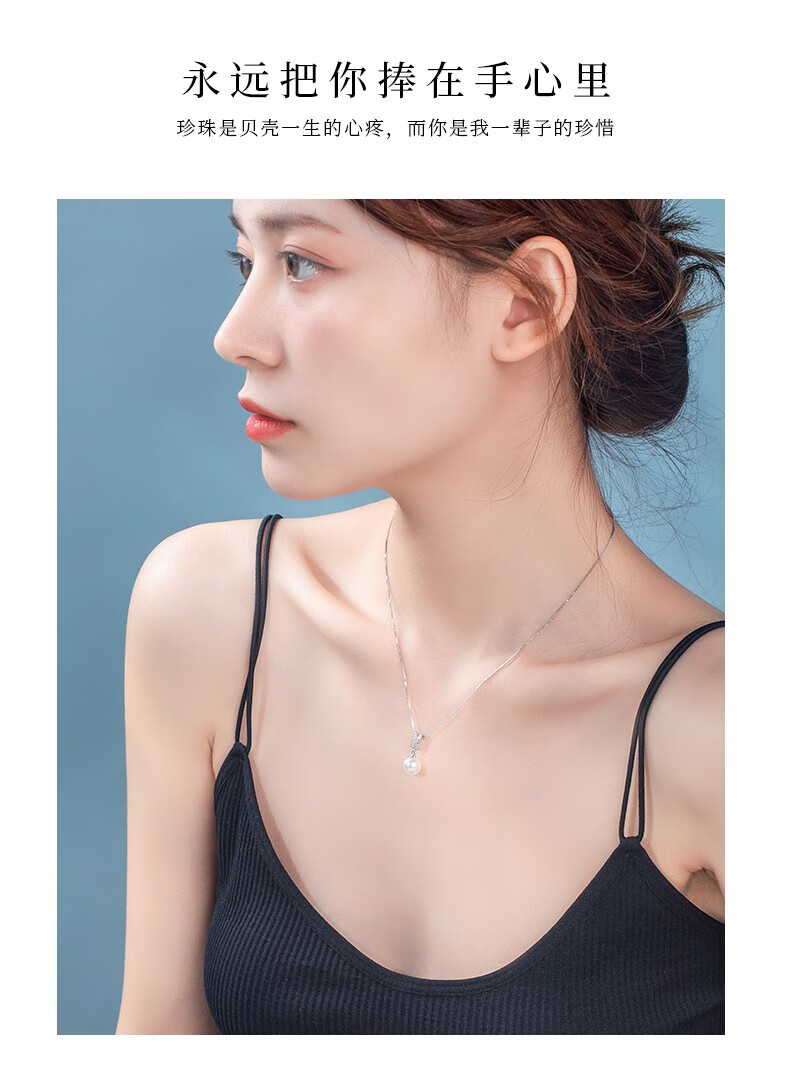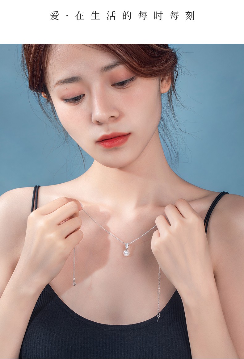 MOLADY S925 Silver Pearl Necklace Women's Pendant Clavicle Chain Young Style Birthday Anniversary Gift for Girlfriend and Wife Freshwater Pearl Simple Pearl Necklace* Gift Box