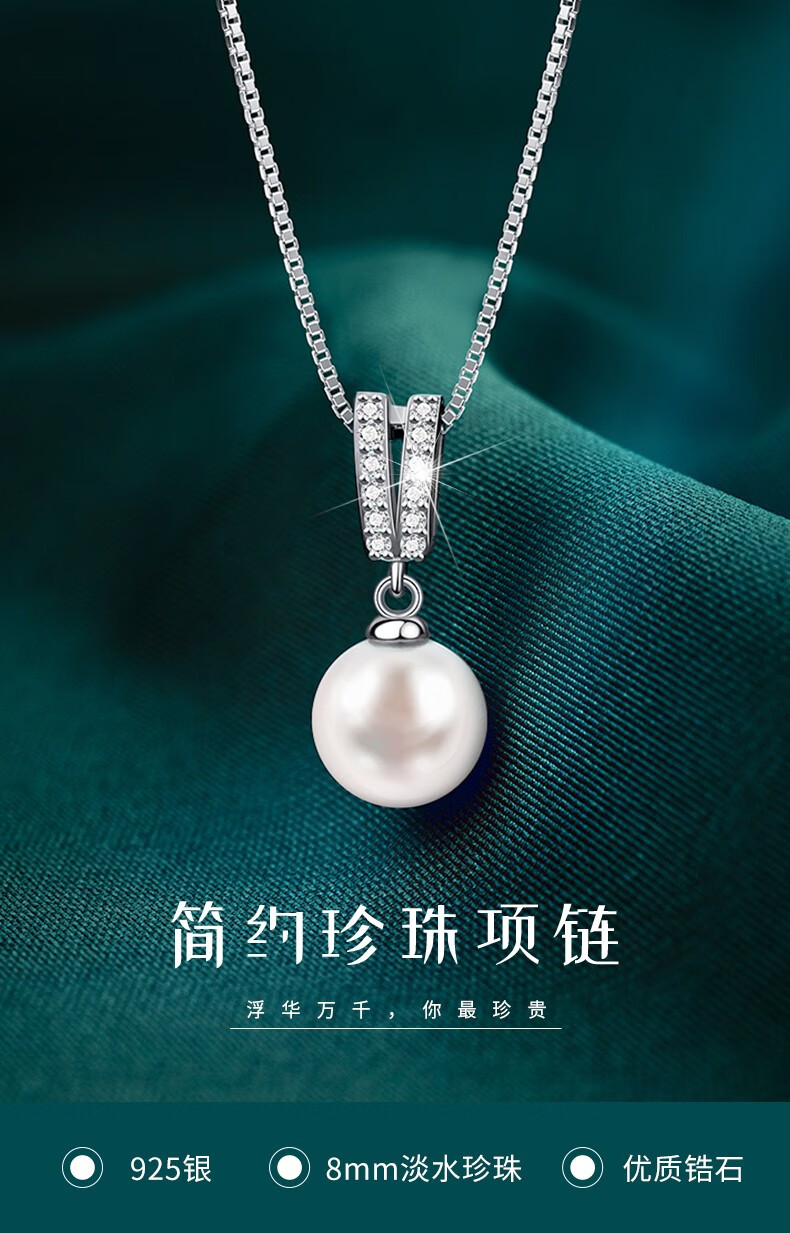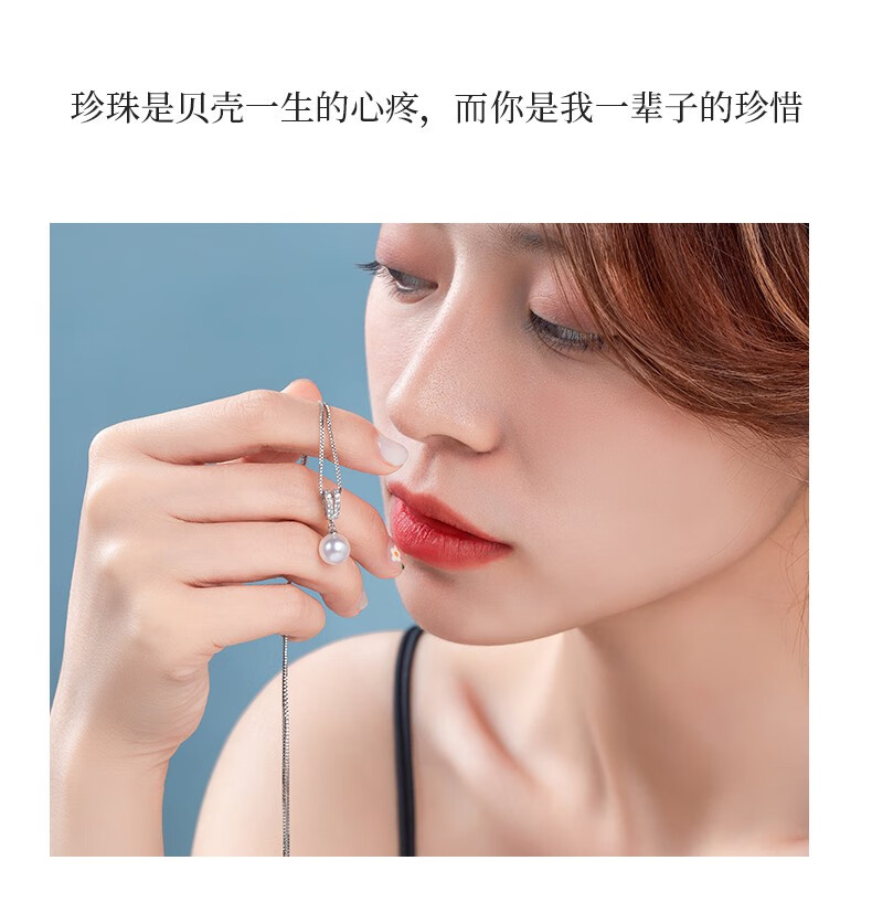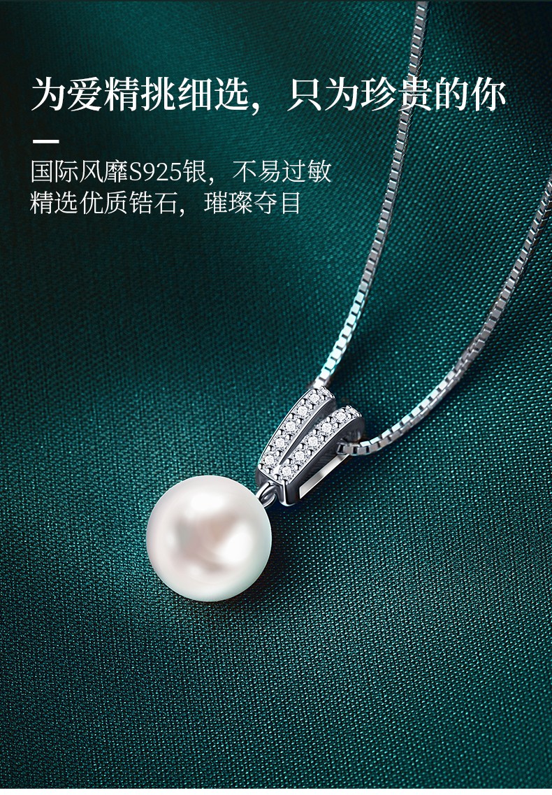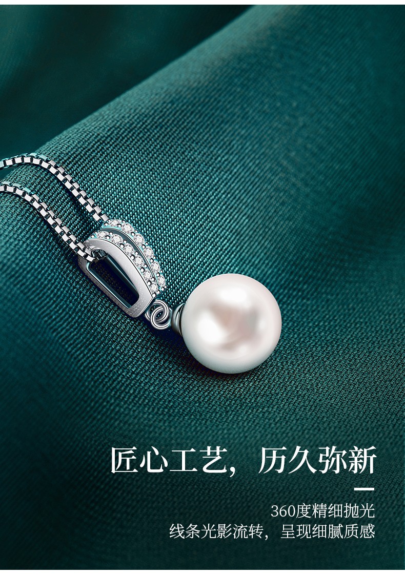 MOLADY S925 Silver Pearl Necklace Women's Pendant Clavicle Chain Young Style Birthday Anniversary Gift for Girlfriend and Wife Freshwater Pearl Simple Pearl Necklace* Gift Box