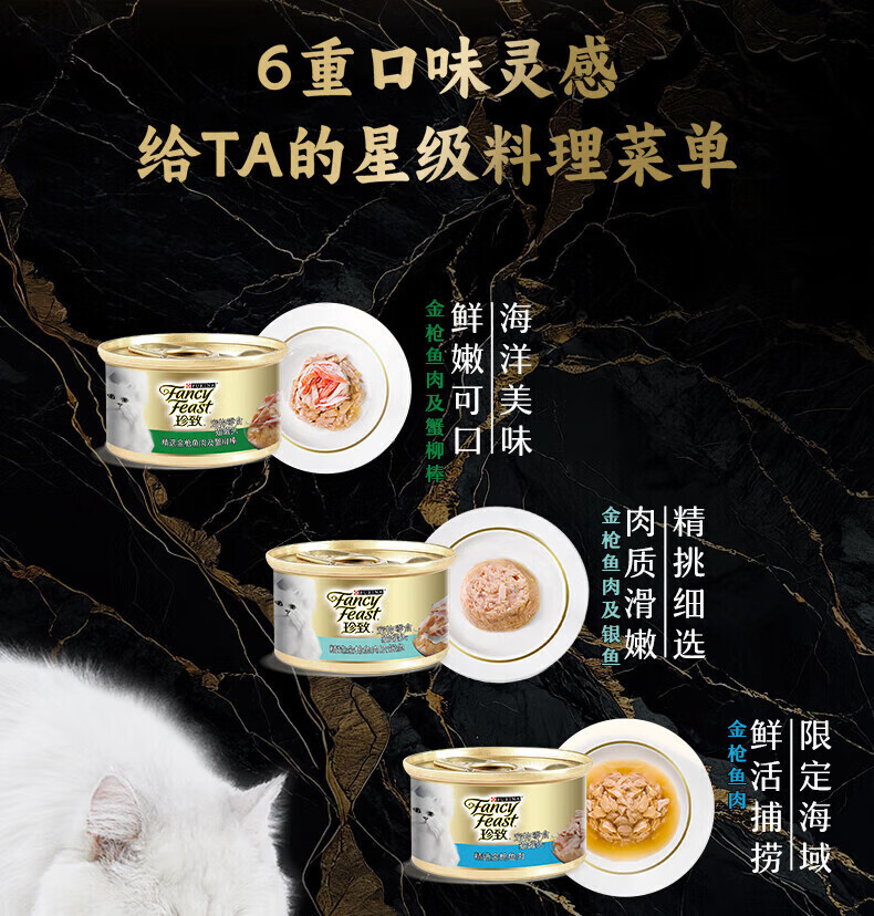 FancyFeast canned cat 24 gold cans for adult cats, general hydration and nutrition, white meat soup, canned cat snacks, canned fish, multi-flavor mixed pack, hot sale 85g*24 cans recommended