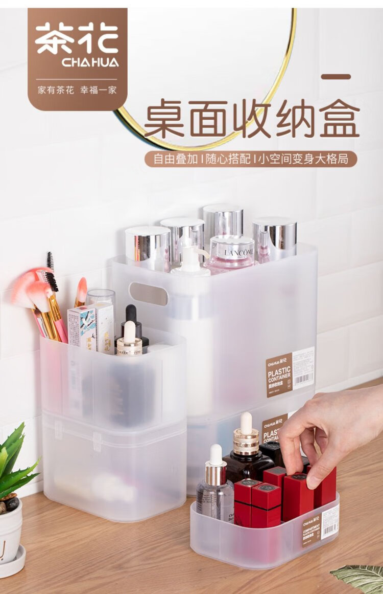 Camellia cosmetics storage box desktop box lipstick storage box household transparent small storage box with lid enlarged storage box with lid 150002