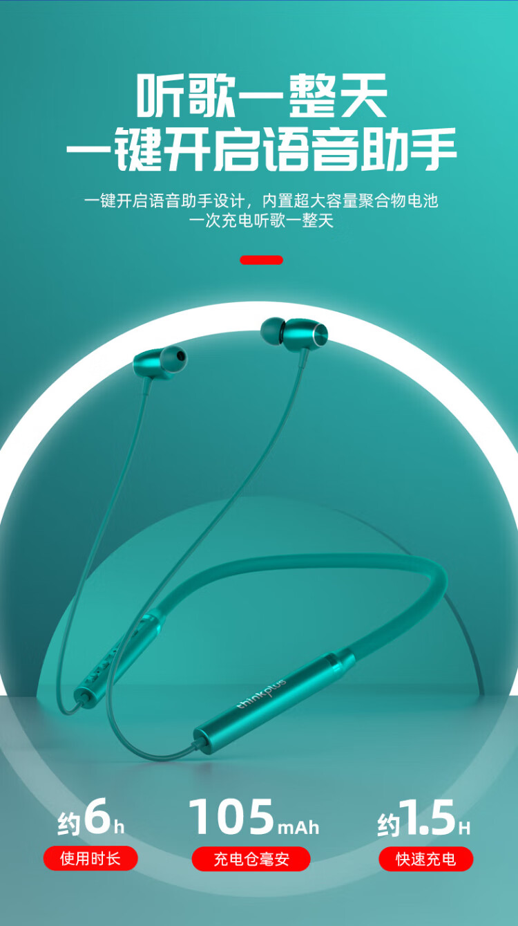 Lenovo (Lenovo) 100,000+ positive reviews HE05X second generation Bluetooth headset wireless neck-mounted sports neck-mounted in-ear type large battery noise reduction sound insulation long battery life suitable for Huawei and Apple cool black 8D stereo sound - intelligent noise reduction
