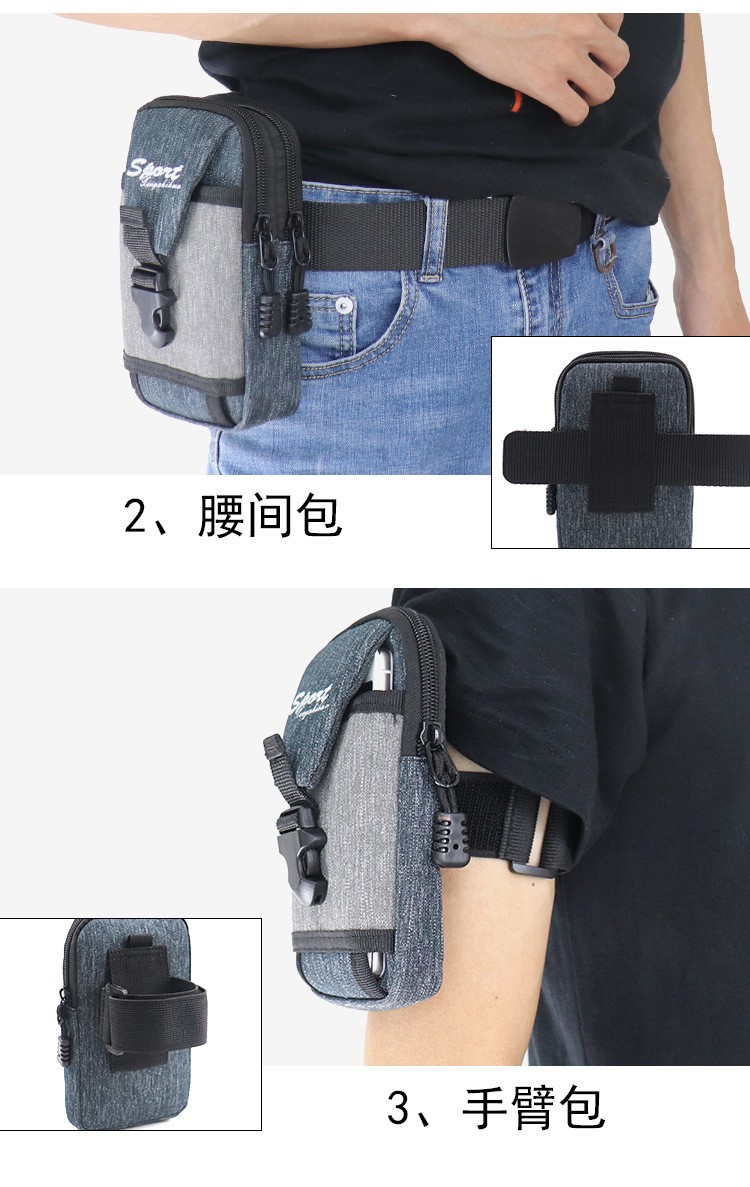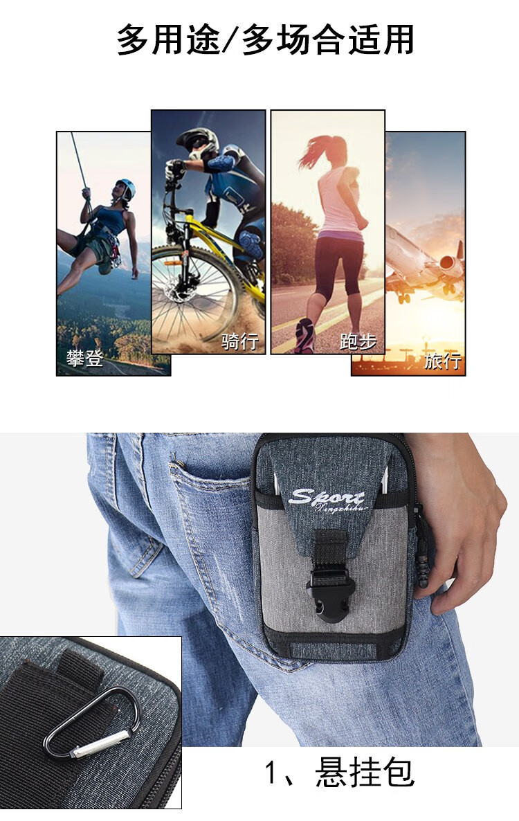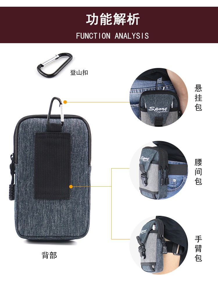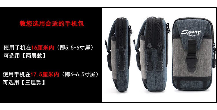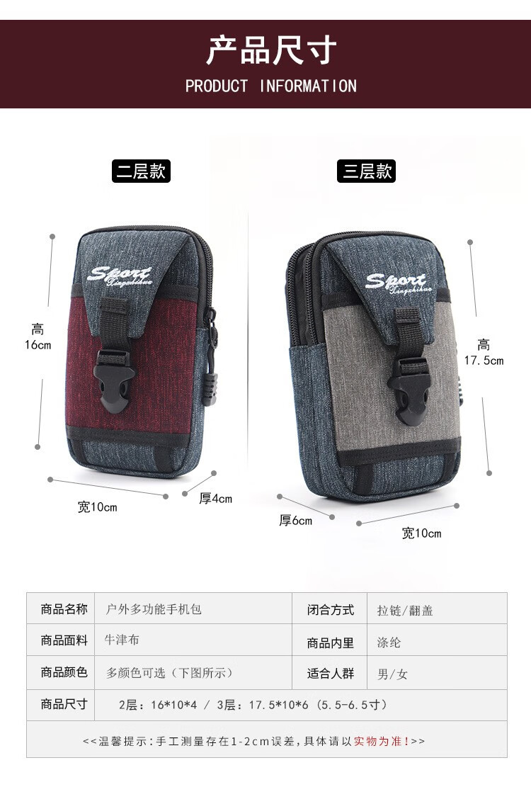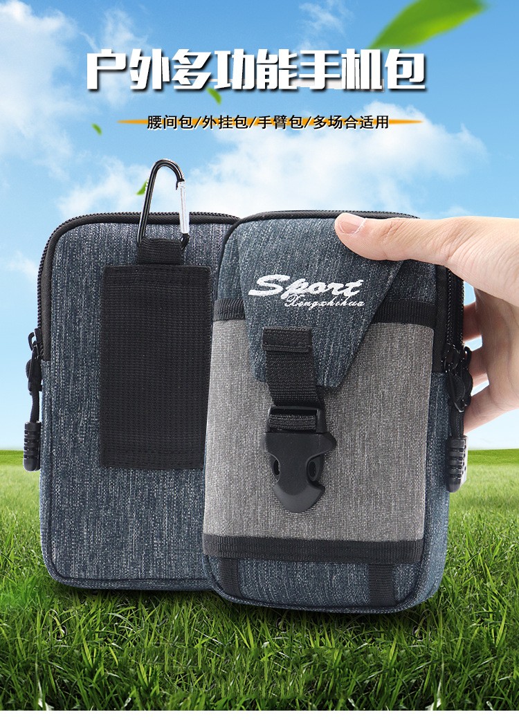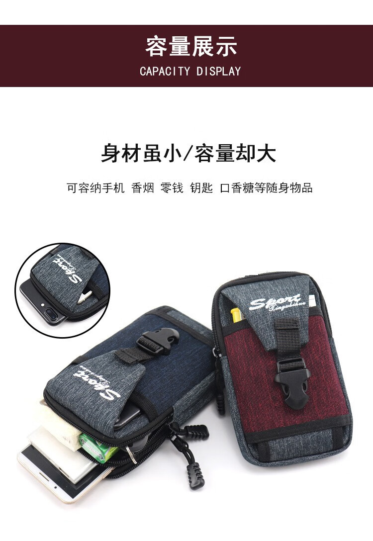 Changyin 6.5-inch mobile phone waist bag men wear belt mobile phone case fashionable young and middle-aged waist bag sports tactical waist bag mobile phone bag arm bag navy blue two layers