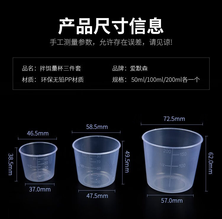 Practical measuring cup with scale, special fishing set bait cup for Diaoyutai fishing competition, small accessories for fishing gear, three-piece set for large, medium and small