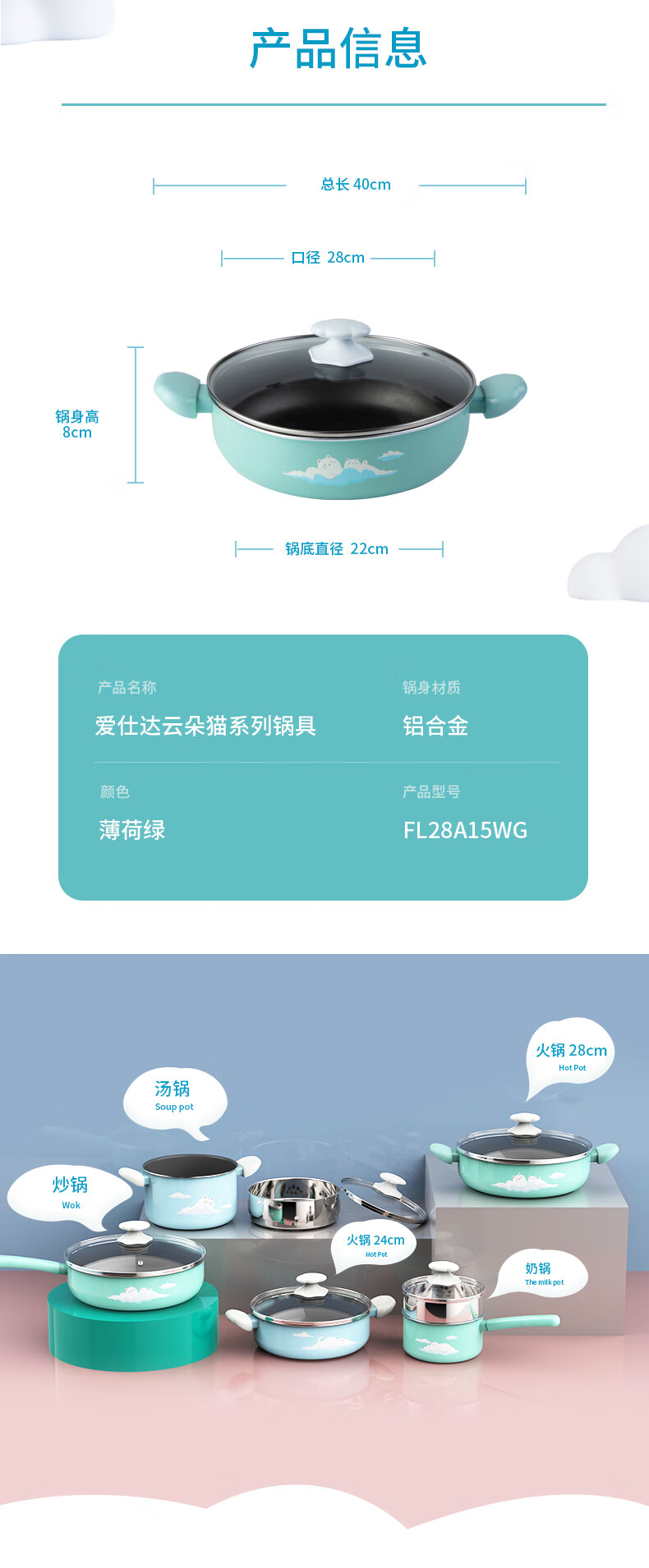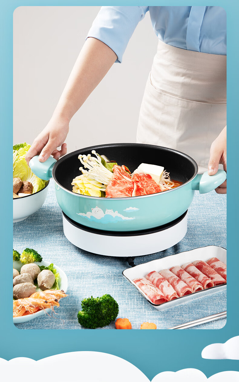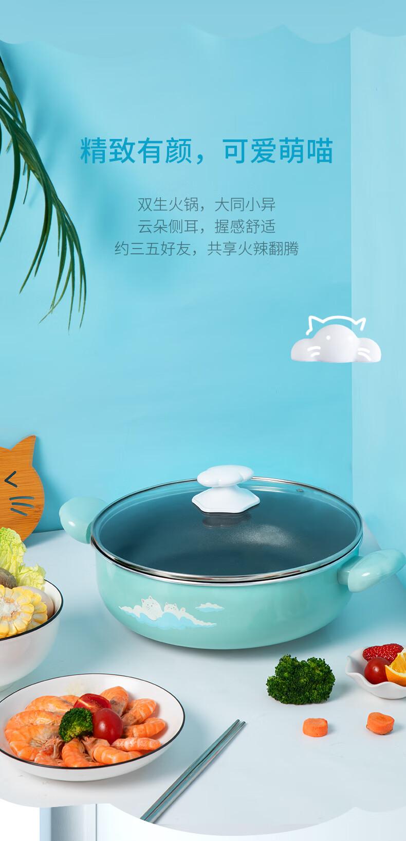 Aistar hot pot non-stick clear soup hot pot household table shabu-shabu pot easy one pot multi-purpose large capacity open flame electromagnetic universal Yunduomao non-stick hot pot 28cm