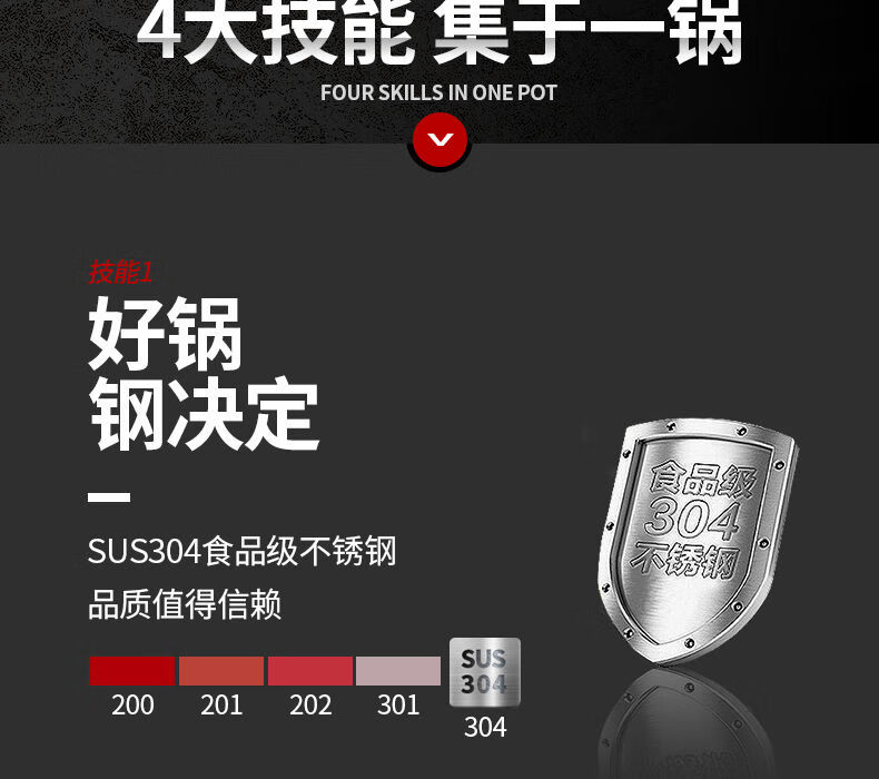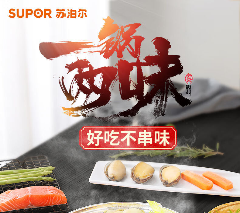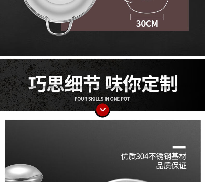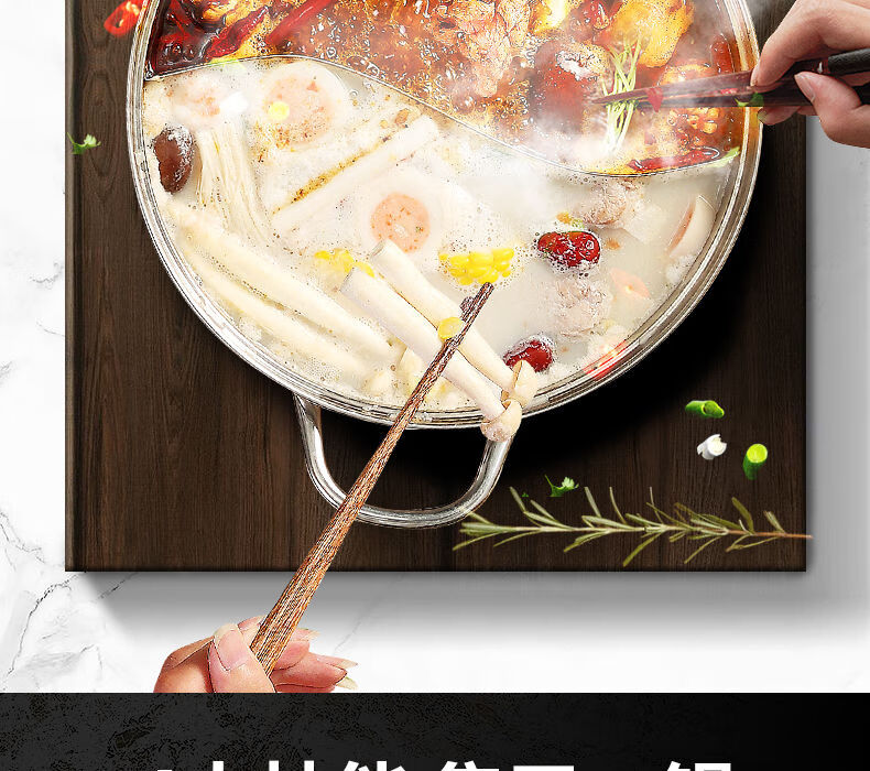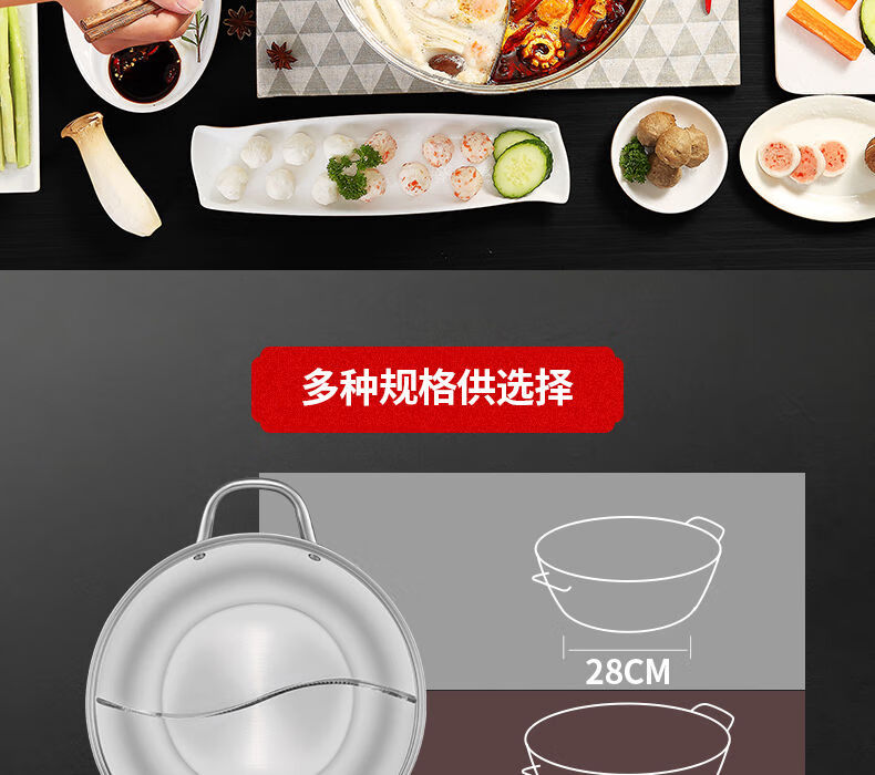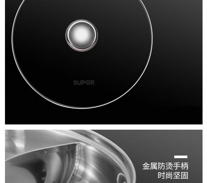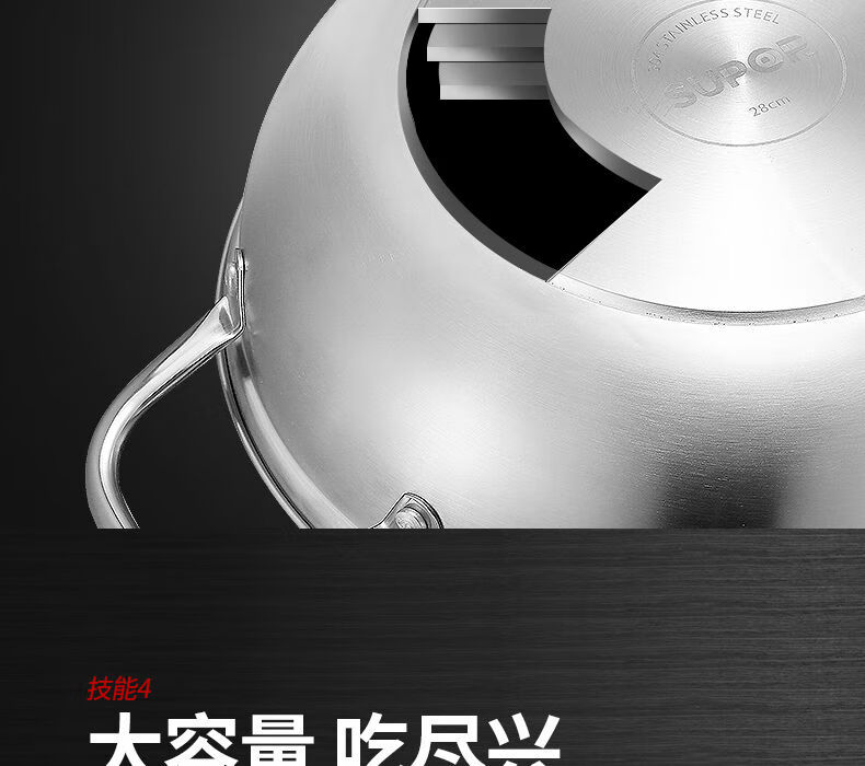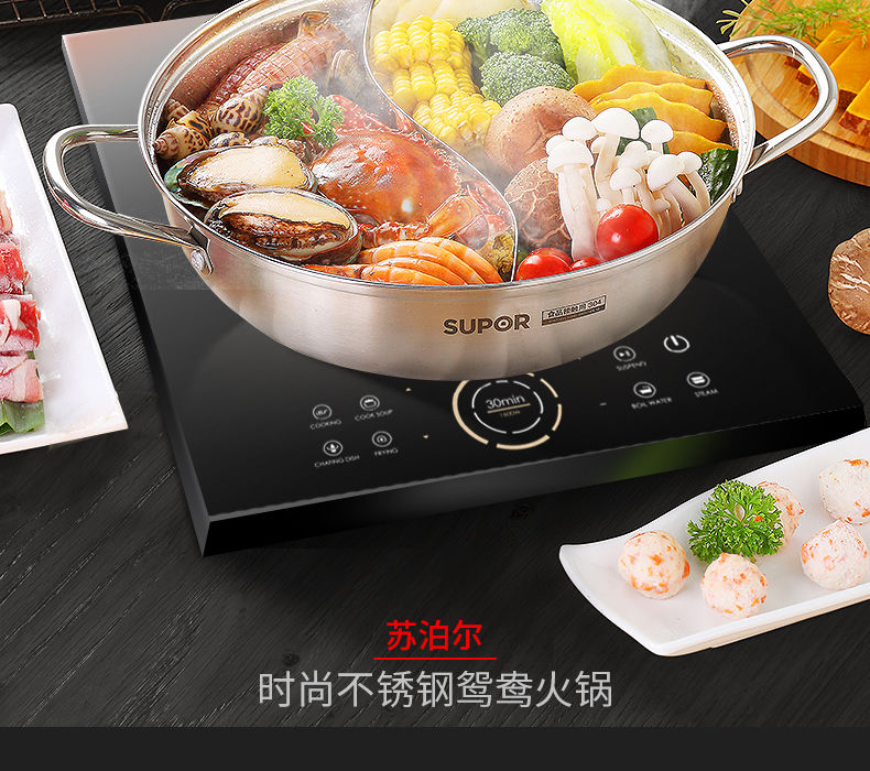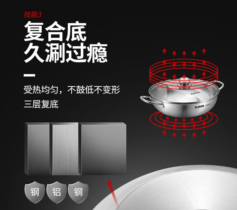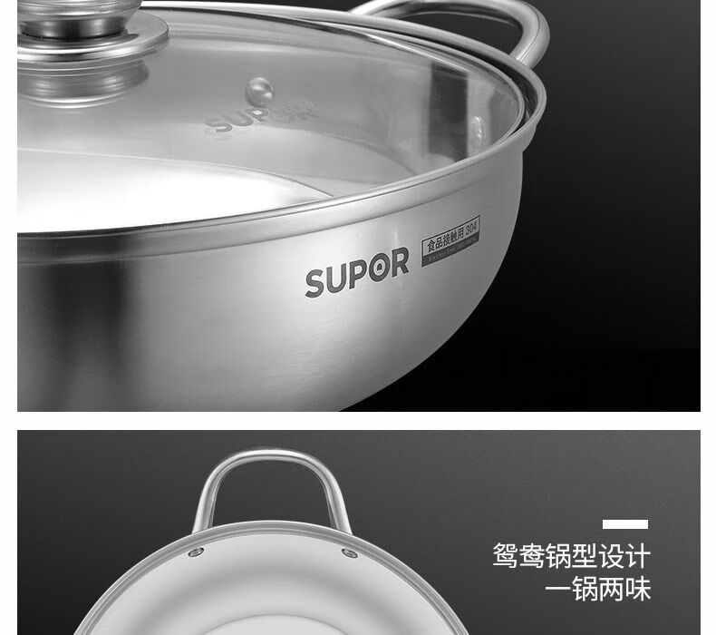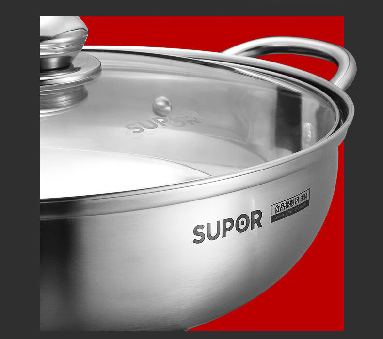 SUPOR hot pot household 304 stainless steel thickened shabu-shabu soup pot multifunctional gas induction cooker universal 30cm three-layer bottom
