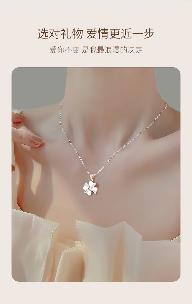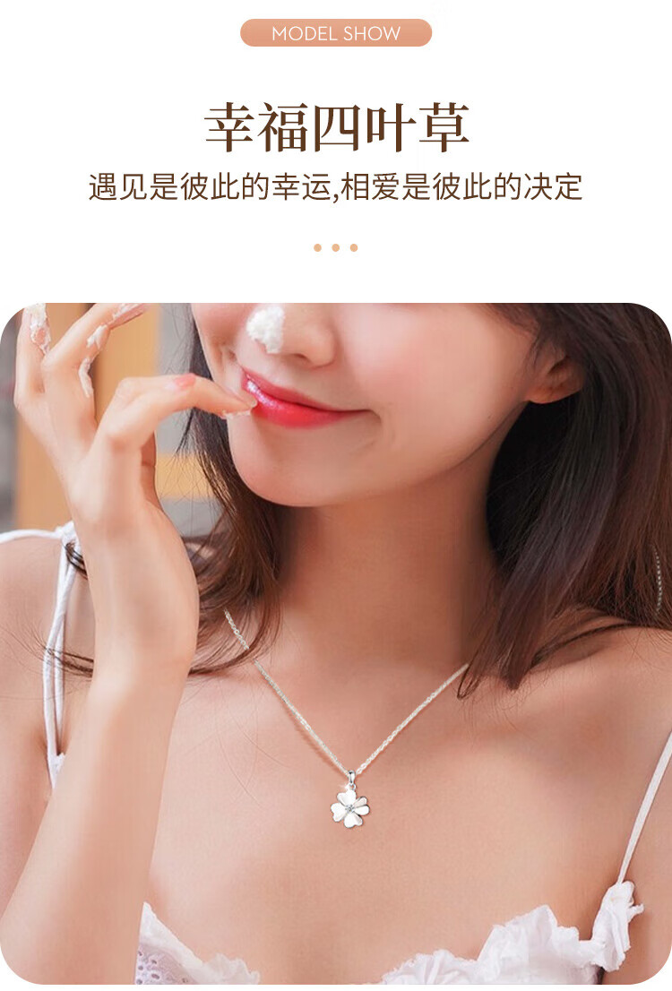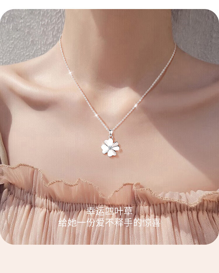 The only (Winy) four-leaf clover necklace 999 sterling silver necklace women's pendant birthday gift for girls to give to girlfriend and wife silver jewelry