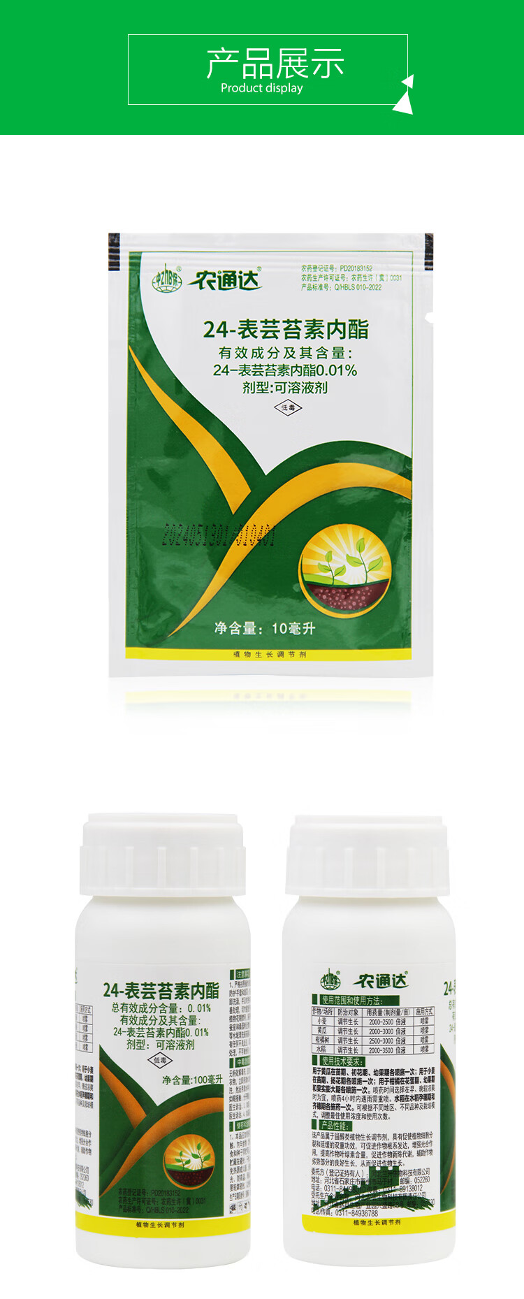 Zhongbao (ZhB) 24 Epibrassinolide Rice Citrus Wheat Cucumber Growth Promoting Root Plant Growth Regulator Pesticide 500ml