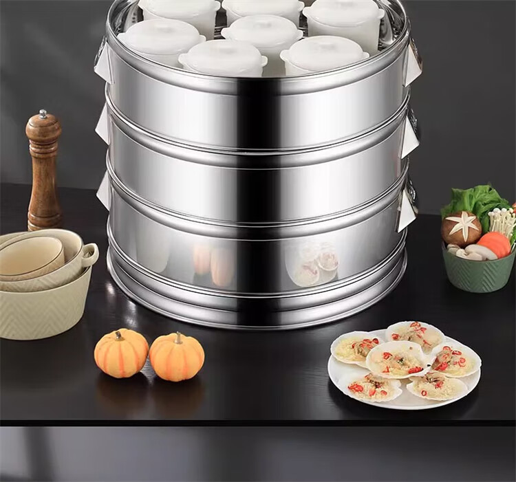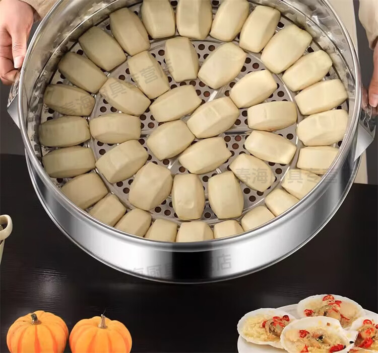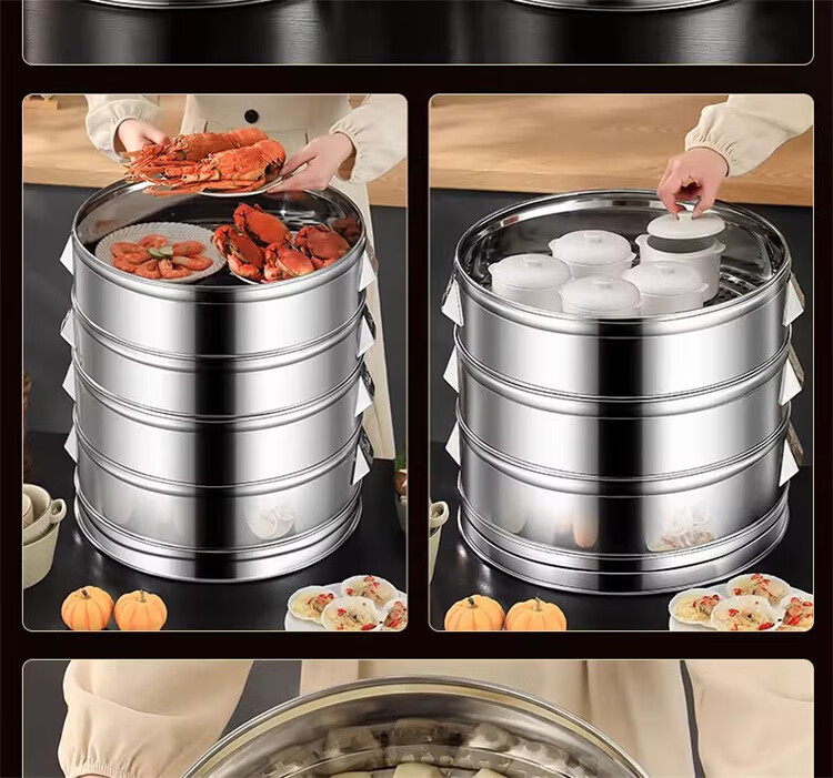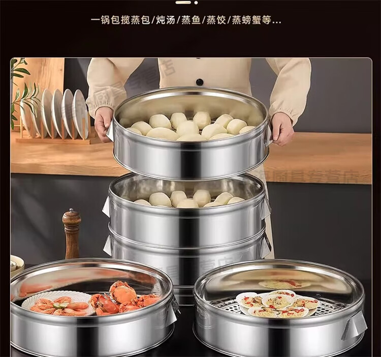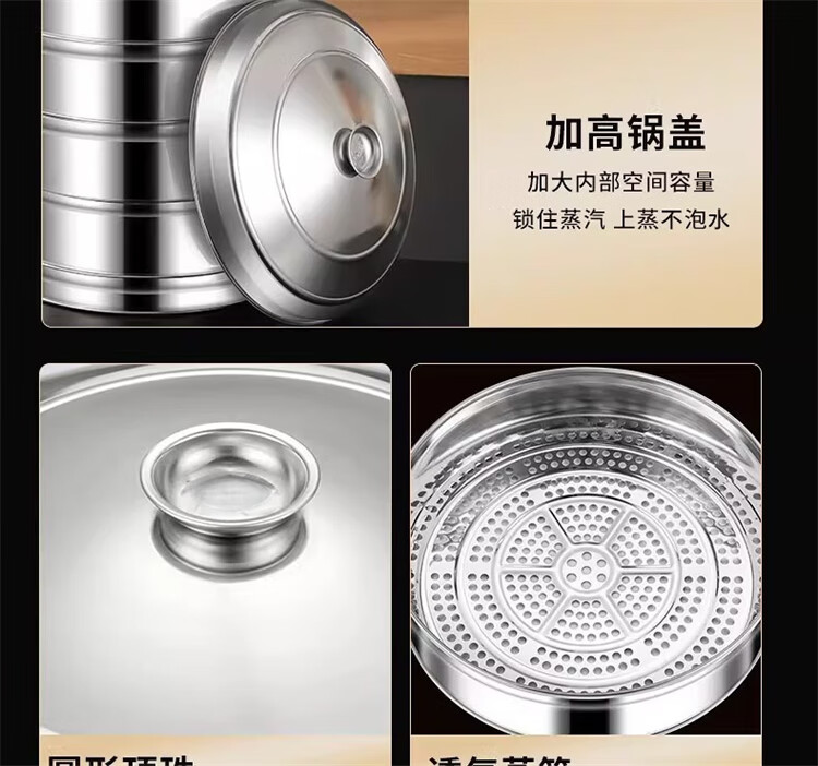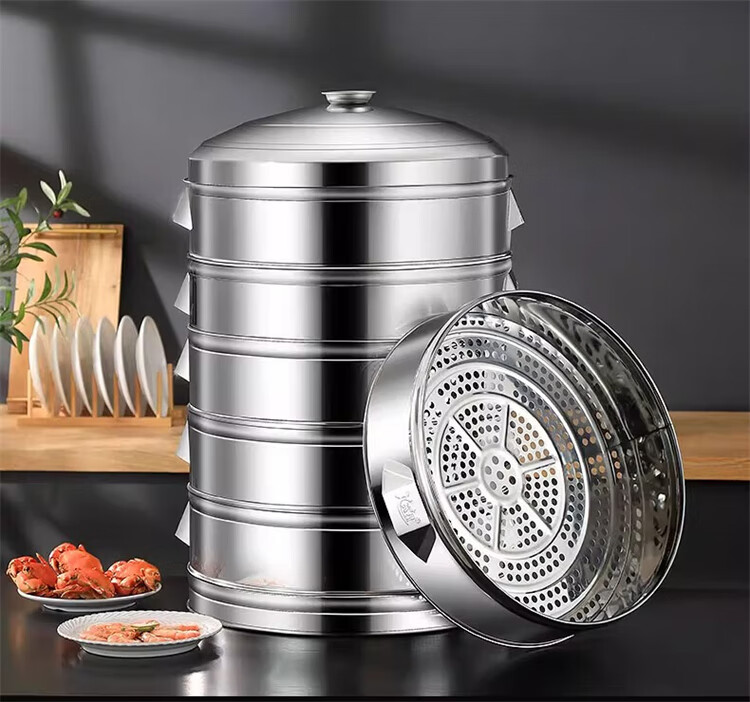 Qiermei stainless steel large steamer drawer steamer household large steamer steamer basket product round hole steamer multi-layer thickened steamer drawer thickened 47cm (2 drawers + 1 cover + 1 tripod)