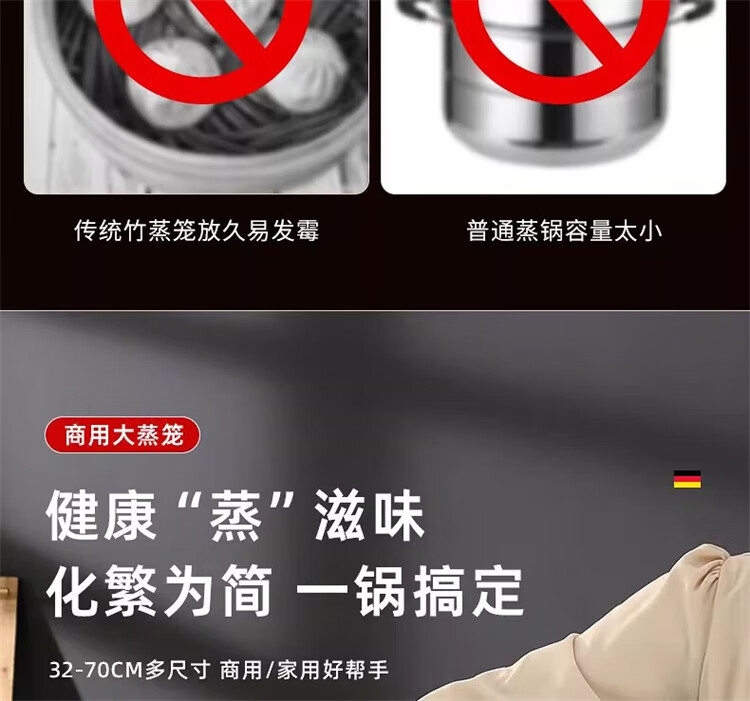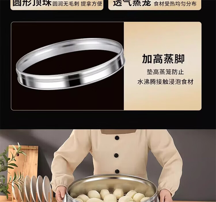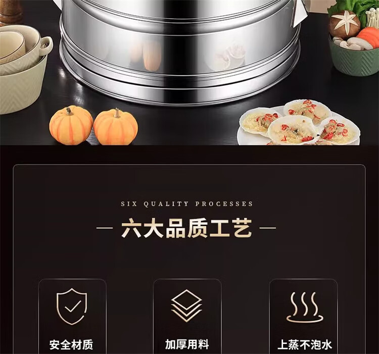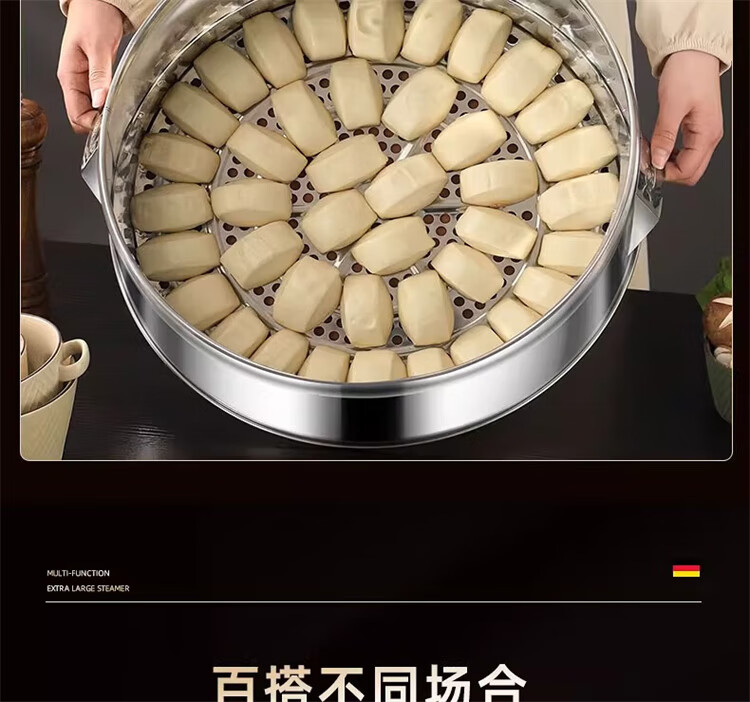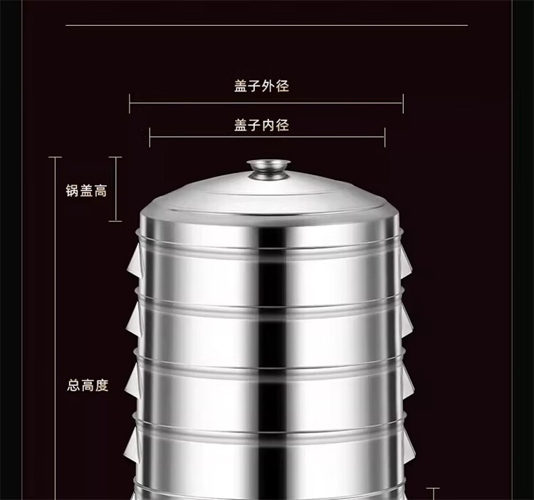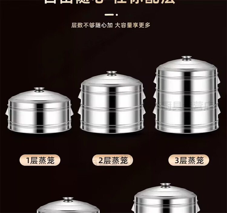 Qiermei stainless steel large steamer drawer steamer household large steamer steamer basket product round hole steamer multi-layer thickened steamer drawer thickened 47cm (2 drawers + 1 cover + 1 tripod)