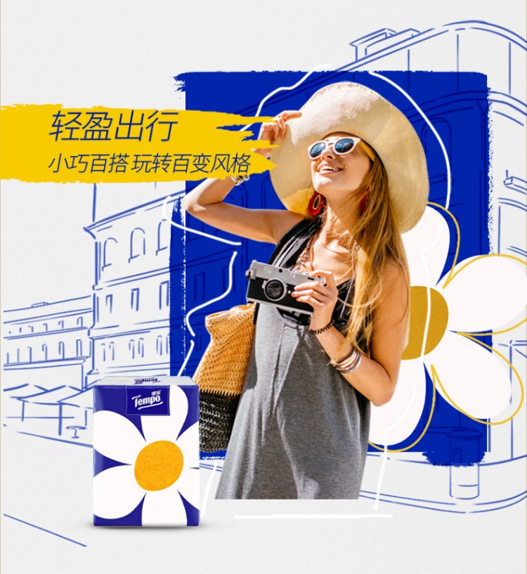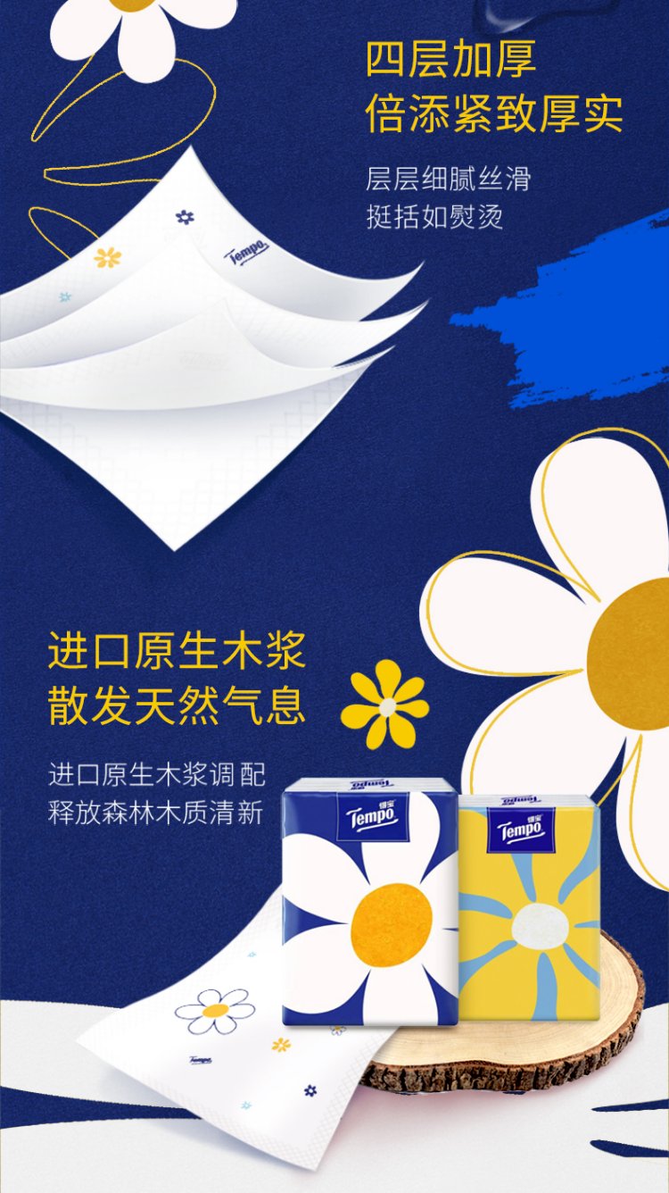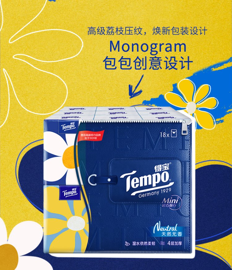 TEMPO Yibo same style handkerchief paper Mini series 4 layers 5 sheets * 18 pack, not broken when wet, tissue paper small bag, facial tissue
