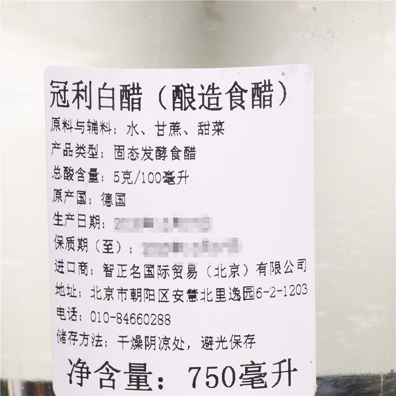 Guanli imported from Germany white vinegar 750ml household cold pickled edible distilled white vinegar homemade lemon new year products