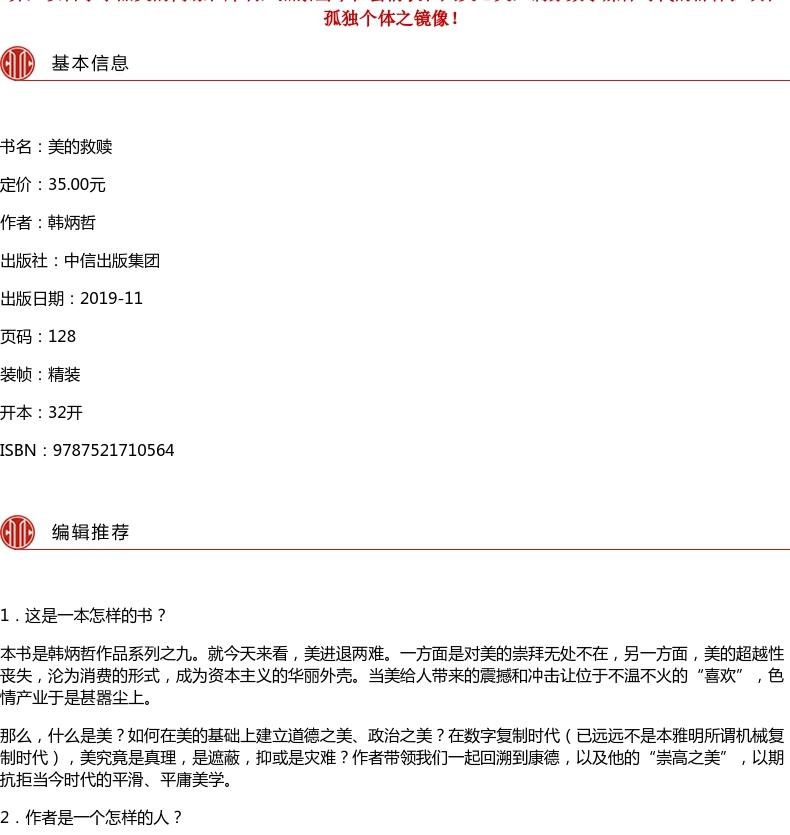 The Redemption of Beauty, written by Han Bingzhe, returns to the critical tradition of philosophy and humanities, CITIC Publishing House, genuine books, Xinhua Bookstore