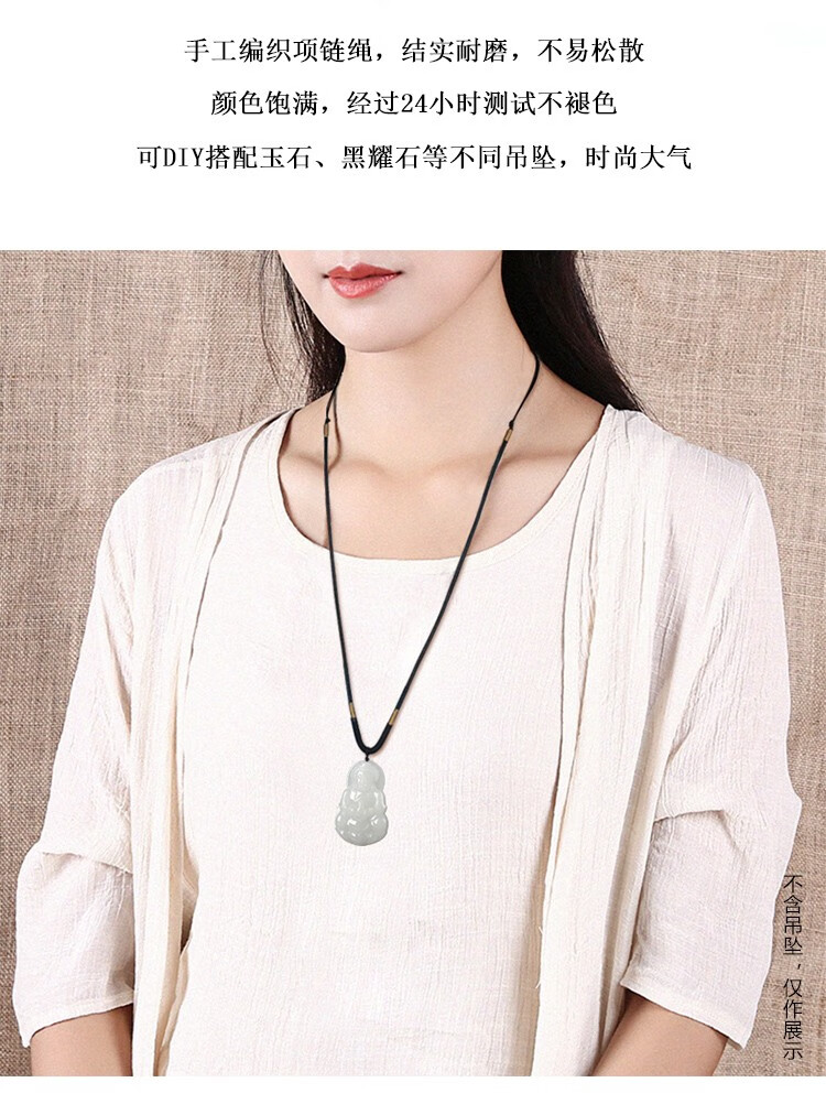 Lingjiujiu high-end hand-woven necklace rope 2mm thin rope for men and women jade pendant rope Guanyin Buddha pendant rope black