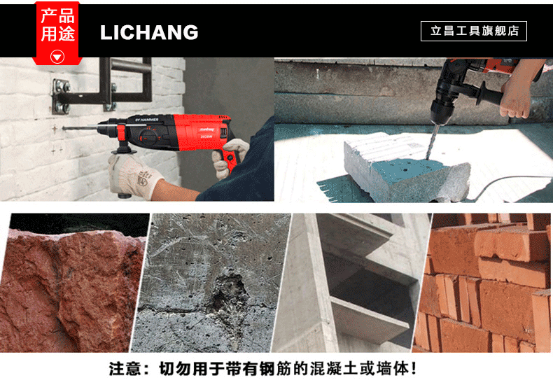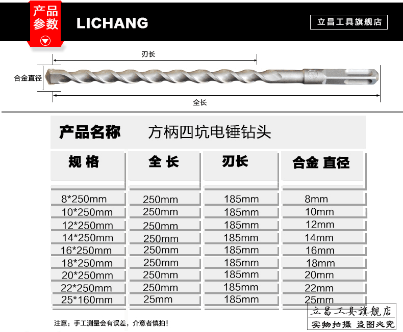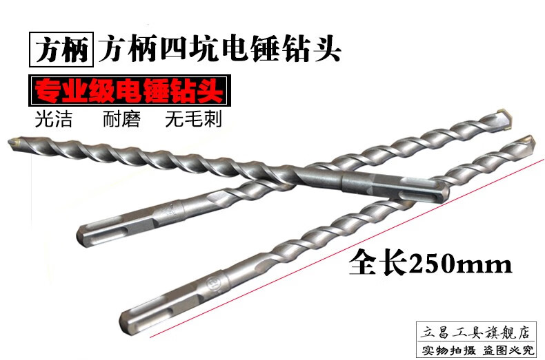 Lichang extended impact drill bit to drill concrete red brick through the wall 250 Lichang electric hammer drill bit through the wall electric hammer turner square handle four pits (8*250)