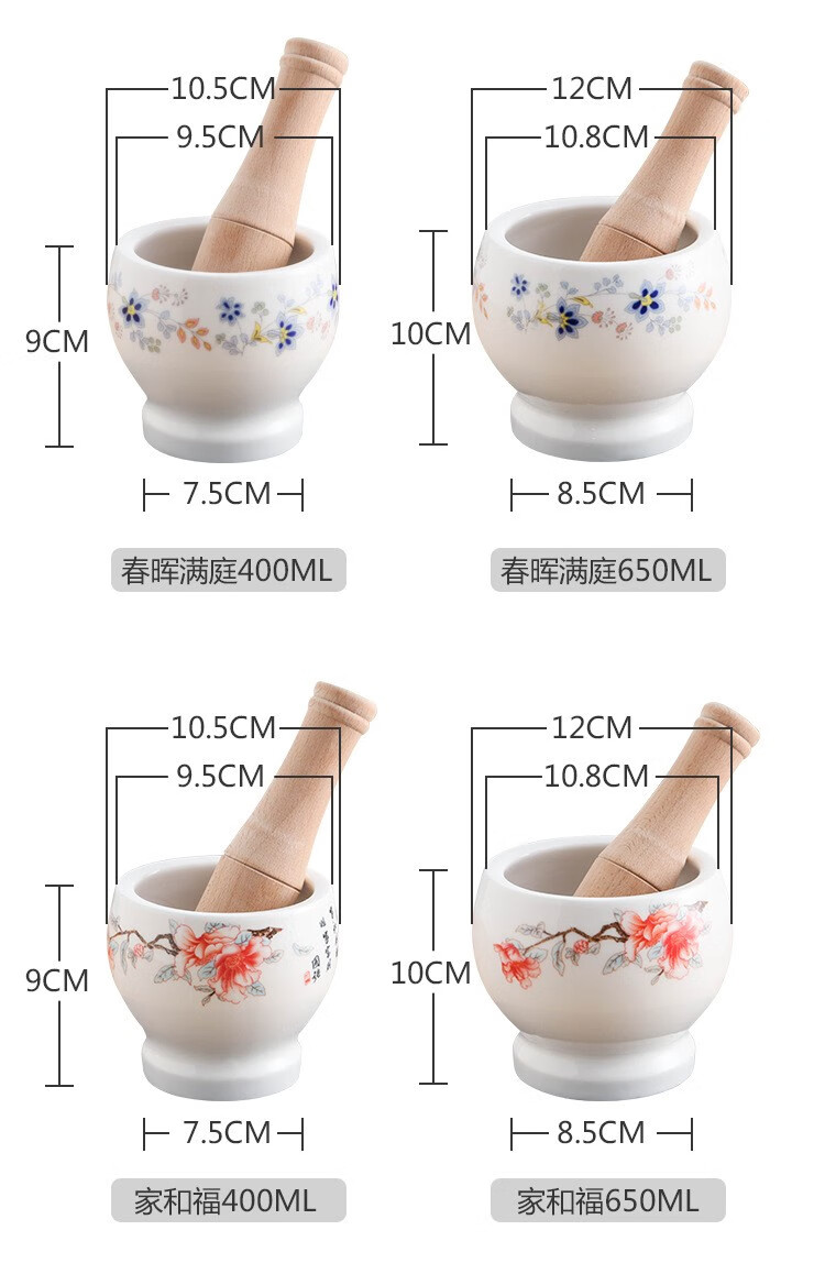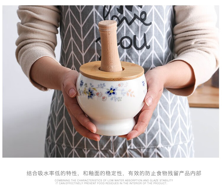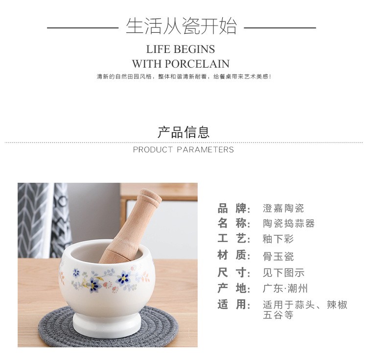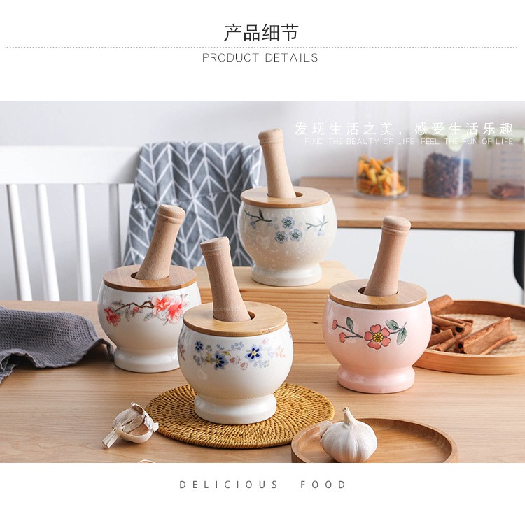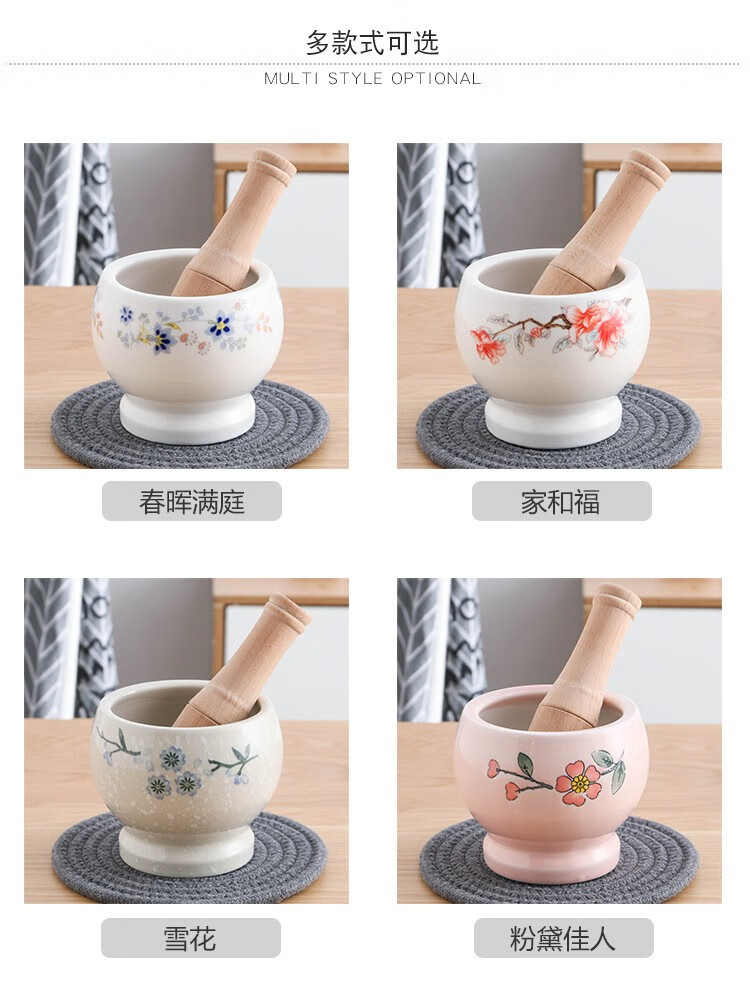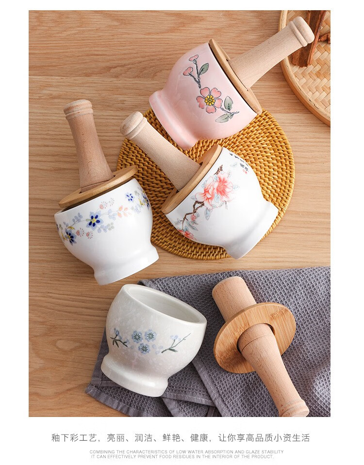 With stick, garlic jar, garlic mortar, ceramic household garlic pounder, kitchen garlic press, garlic paste, medicine jar grinder, Chunhui Manting, small size (with stick)