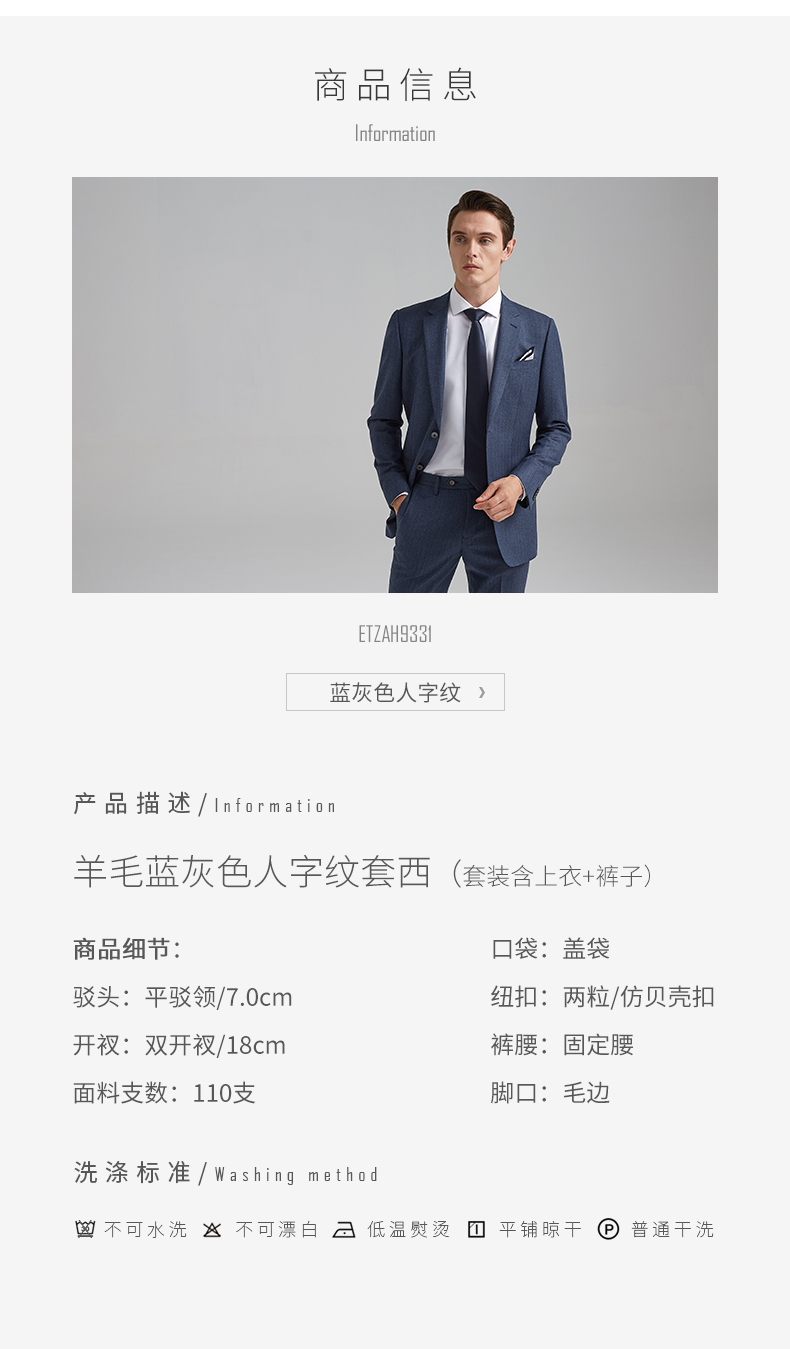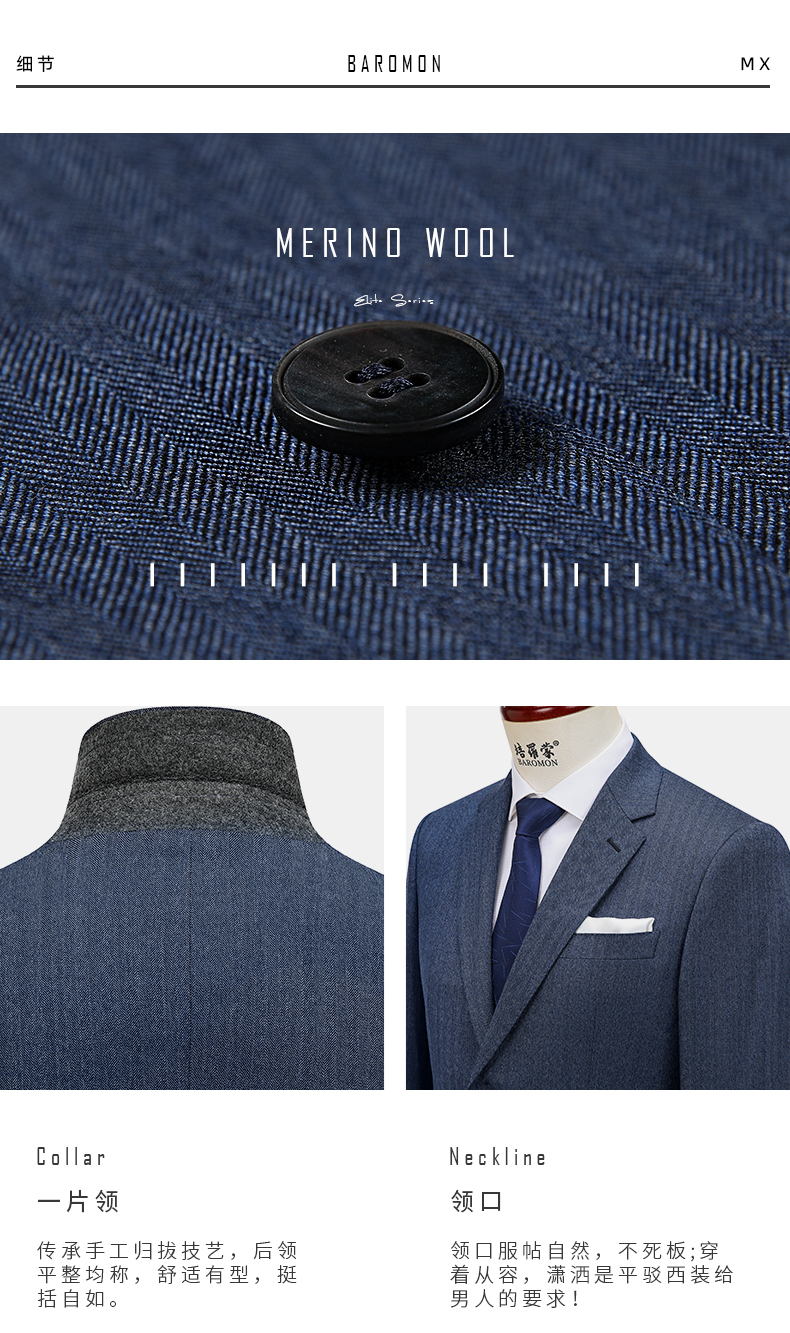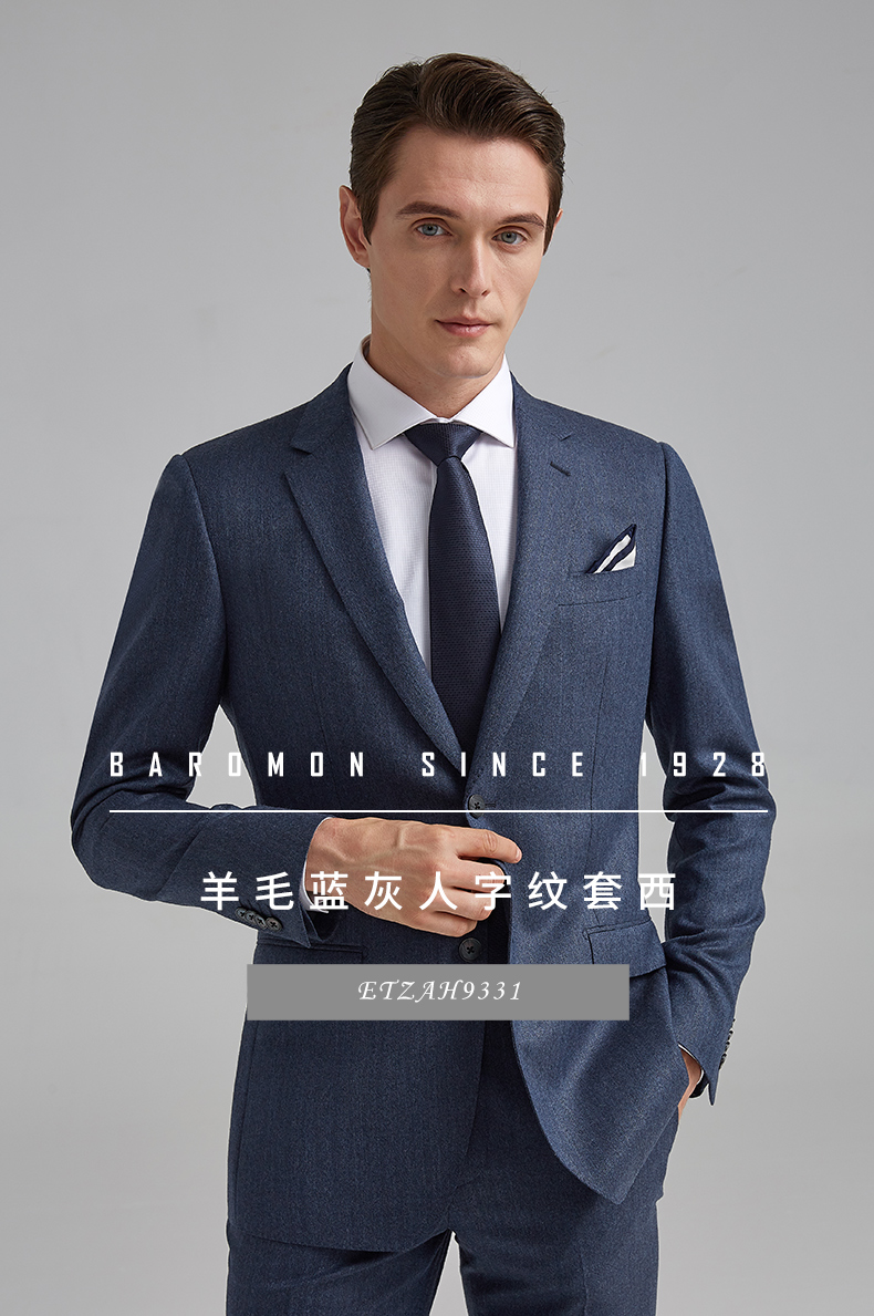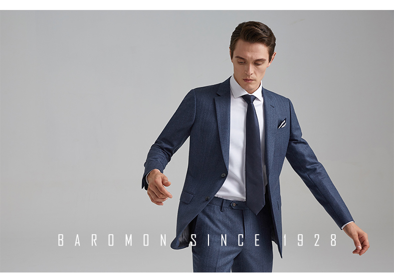 BAROMON 64.1% wool suit suit for men, slim professional suit, complete business suit for wedding and groom, gray 9332 170B, please note the size of the trousers