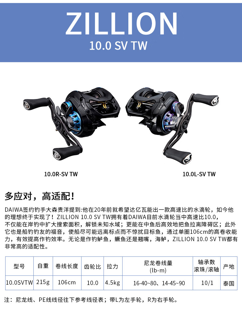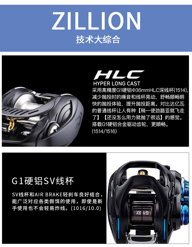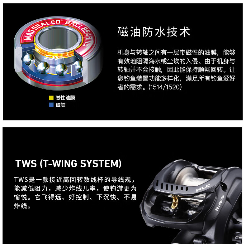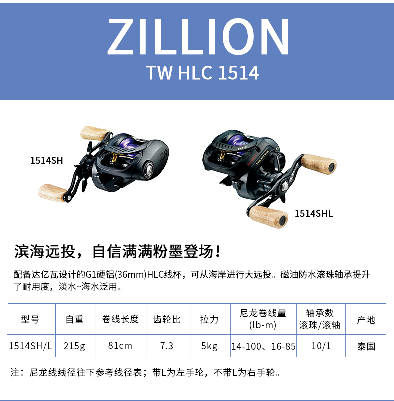 DAIWA ZILLION long-distance casting reel, general-purpose reel, water dripping lure fishing reel, freshwater fishing and freshwater fishing dual-purpose fishing reel HLC1514SH/L deep cup long-range casting reel (7.3 speed left-hand reel
