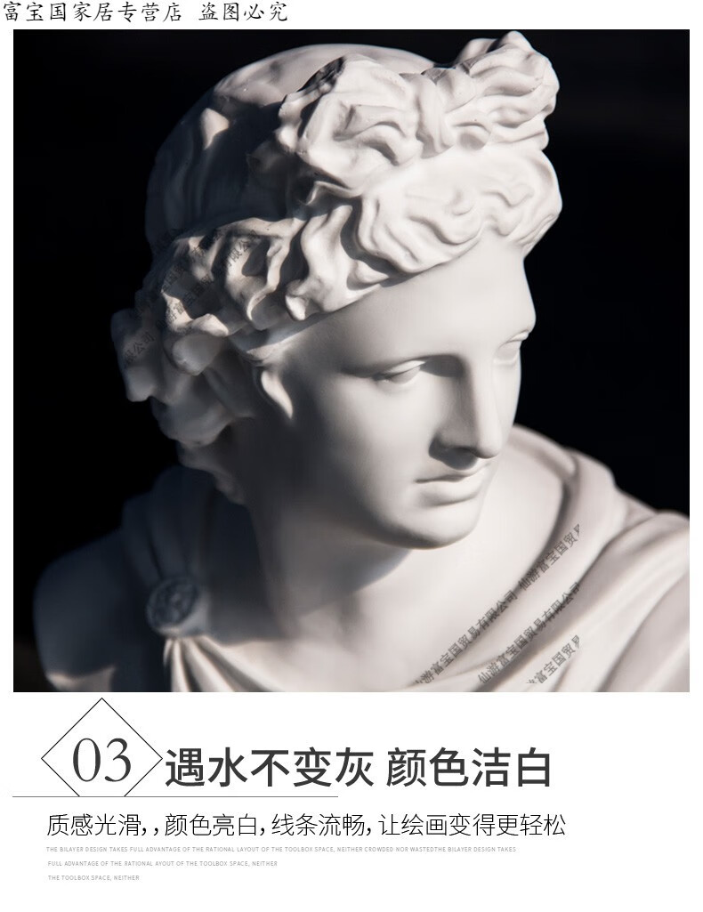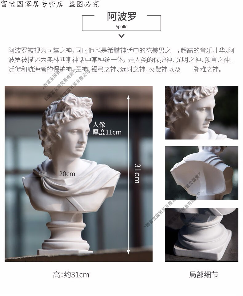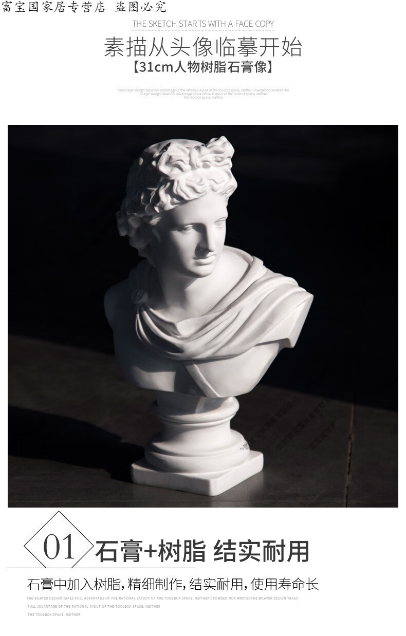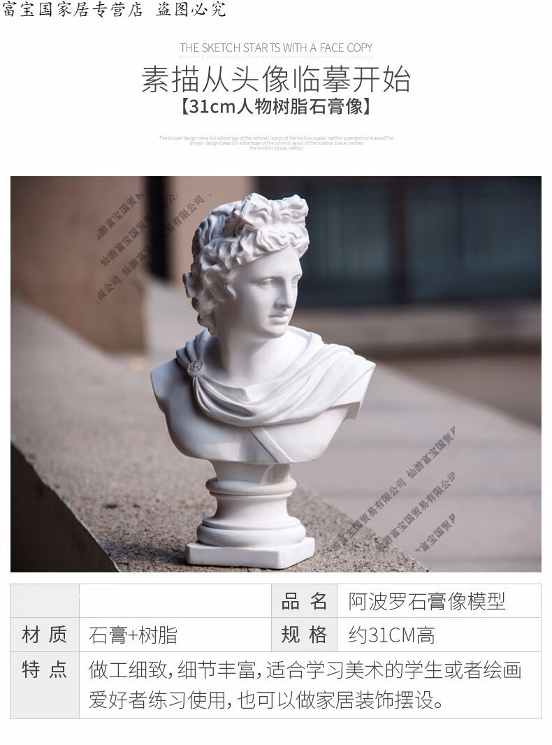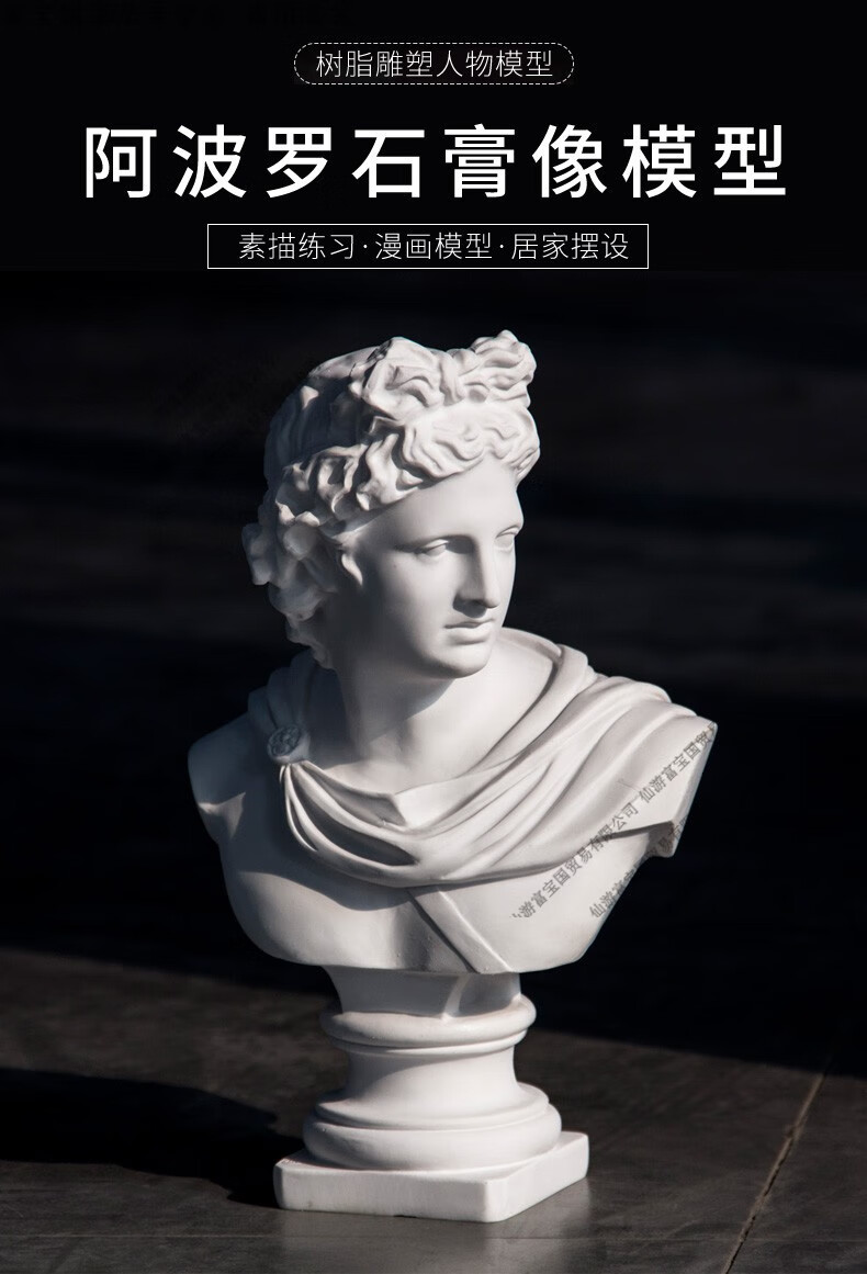 ZSTO resin Apollo plaster statue ornaments large sketch plaster head 31cm character plaster model sculpture