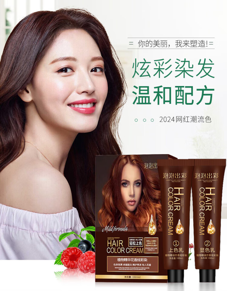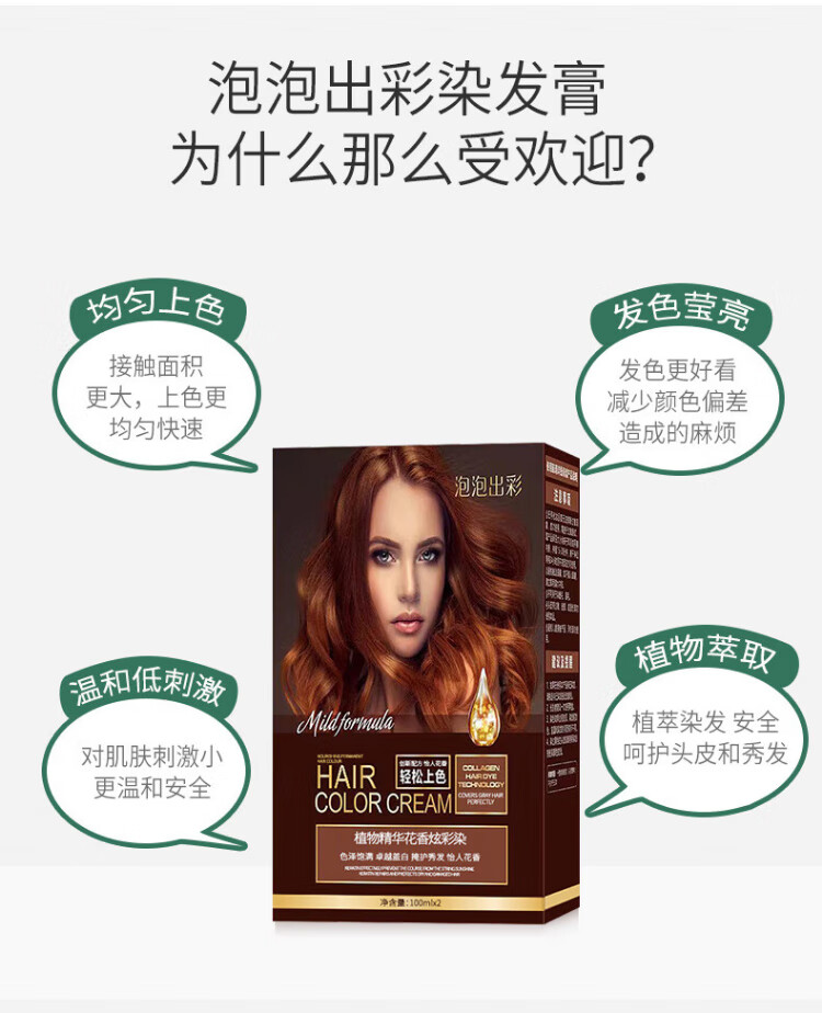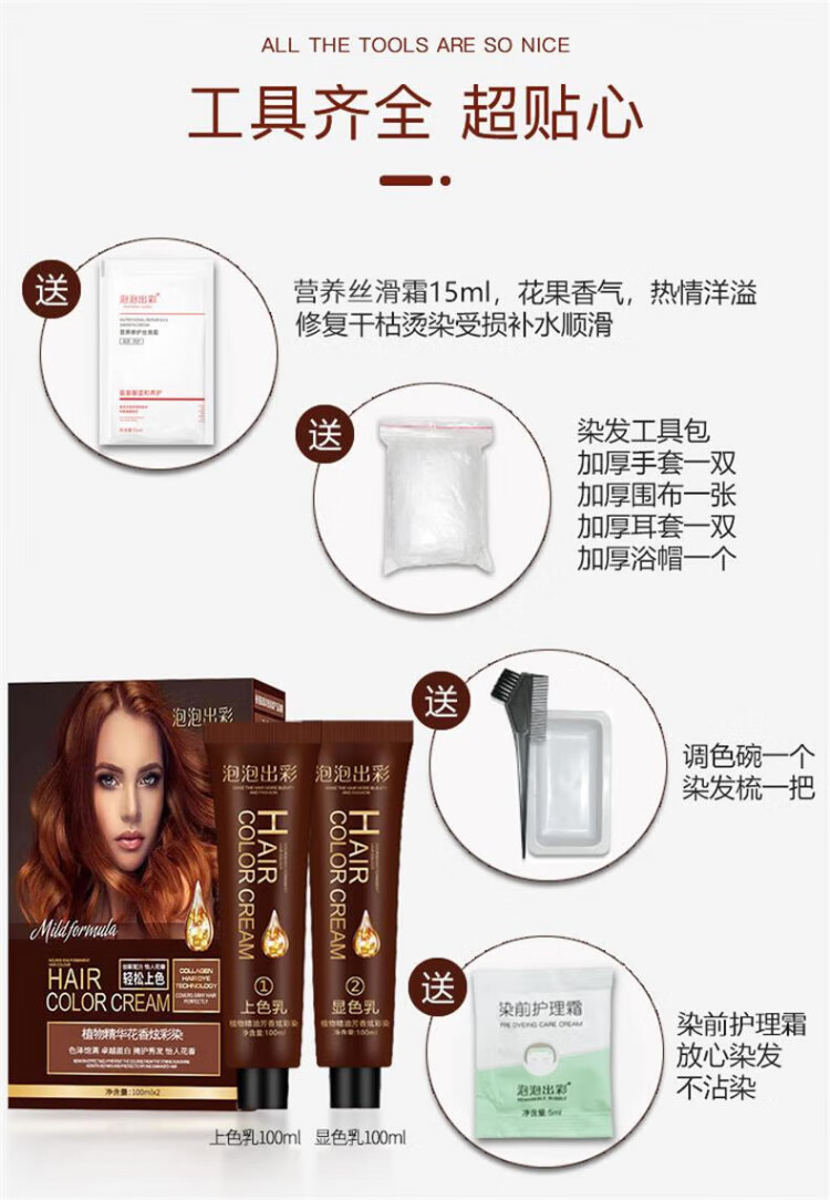 Bubble Color Hair Dye Cream, plant-based popular color whitening hair dye, black for men and women, purely covering gray hair, fashionable hair dyeing at home, flaxen color/no makeup, versatile (fashion color)