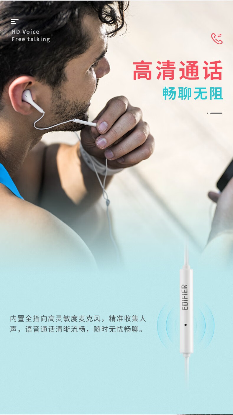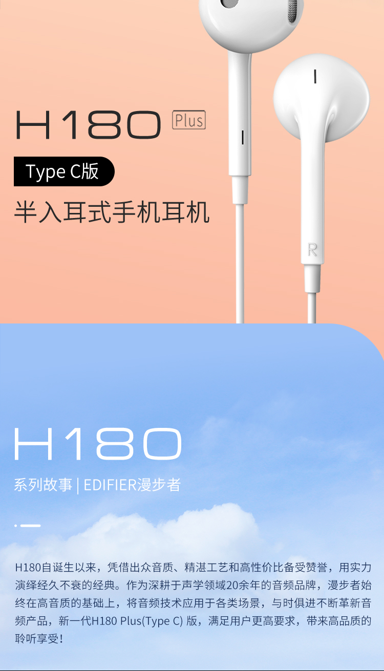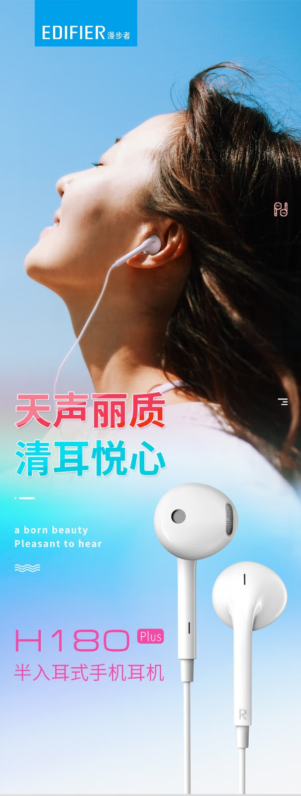 Edifier (EDIFIER) H180Plus wired headset semi-in-ear wire control can call mobile phone headset music earplugs suitable for 3.5mm interface white