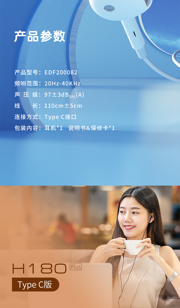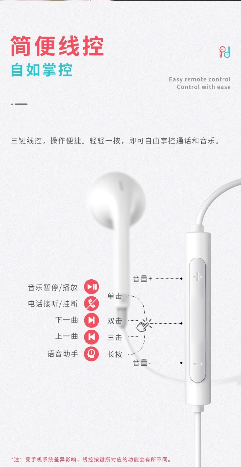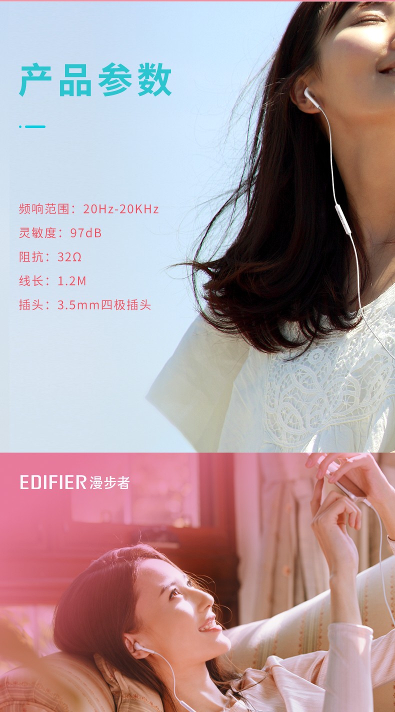 Edifier (EDIFIER) H180Plus wired headset semi-in-ear wire control can call mobile phone headset music earplugs suitable for 3.5mm interface white