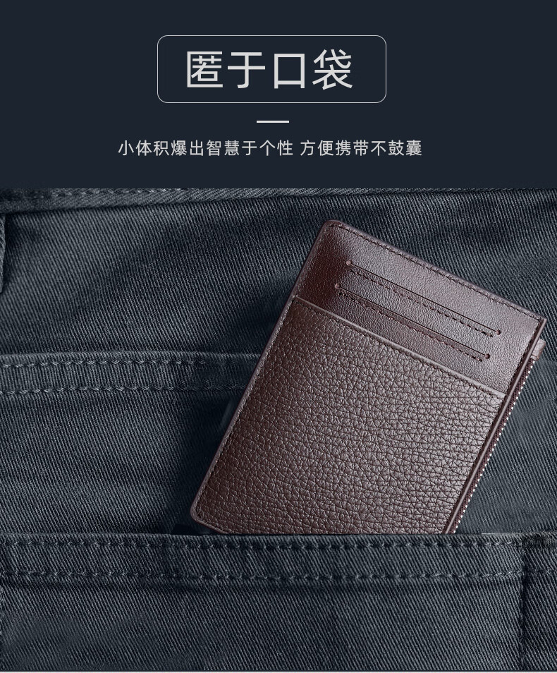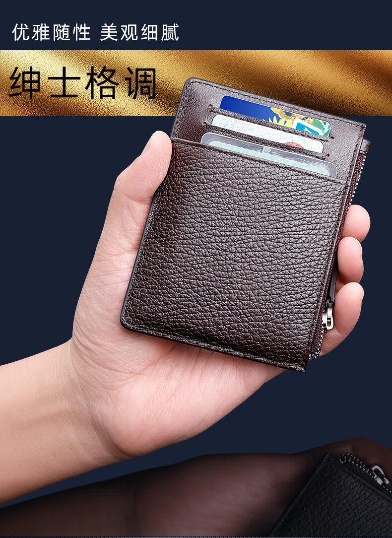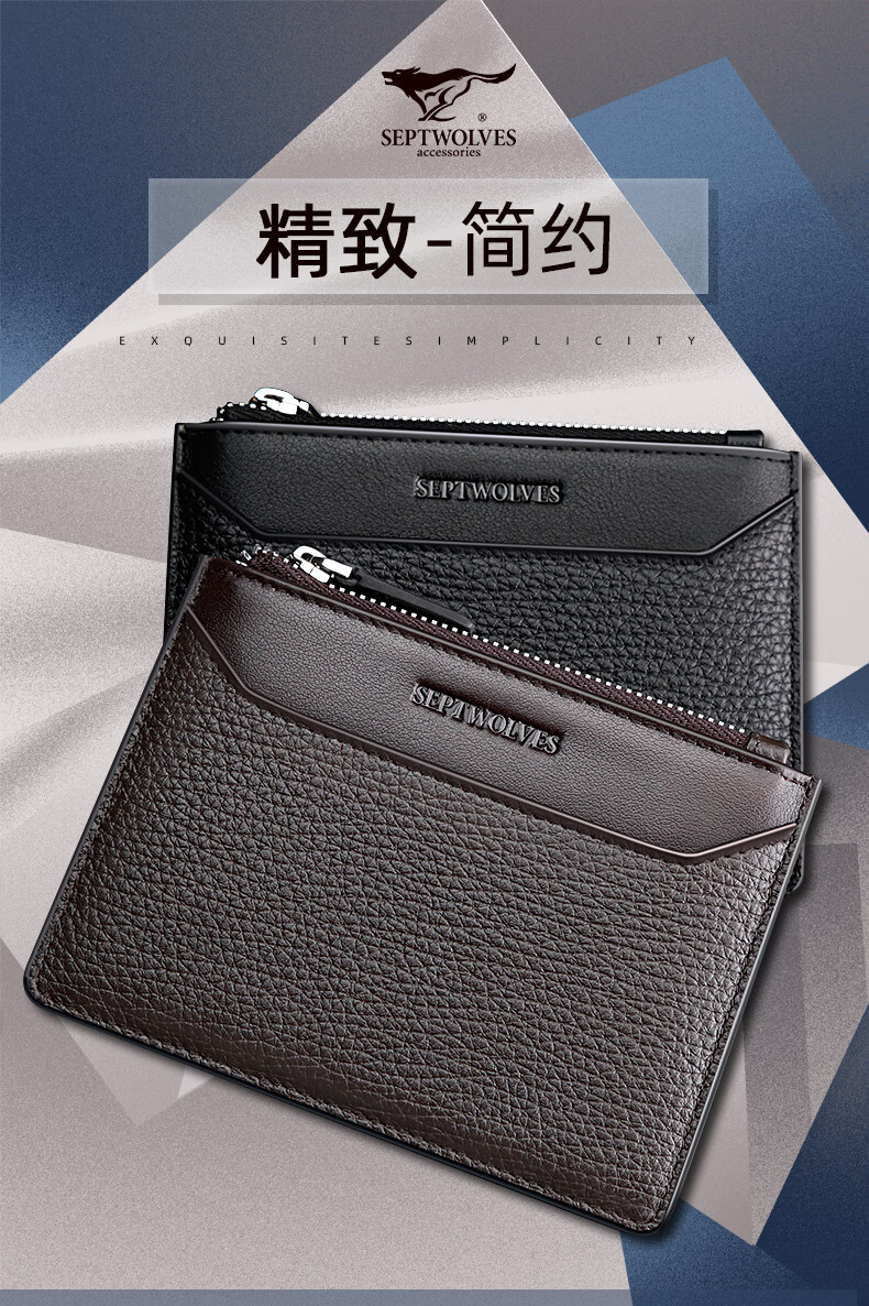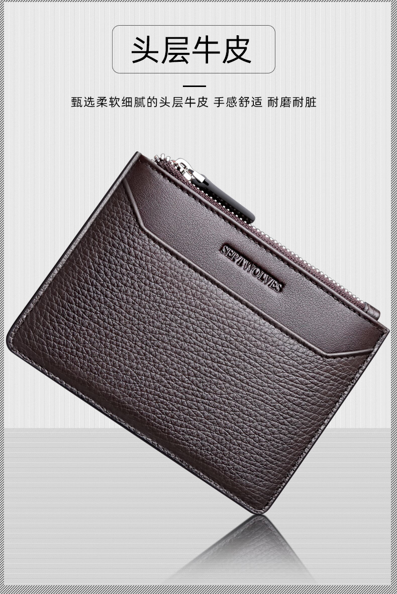Septwolves Small Card Holder Men's Genuine Leather Thin Driver's License Coin Purse All-in-one Simple Mini Multi-Function Wallet Holiday Gift Black