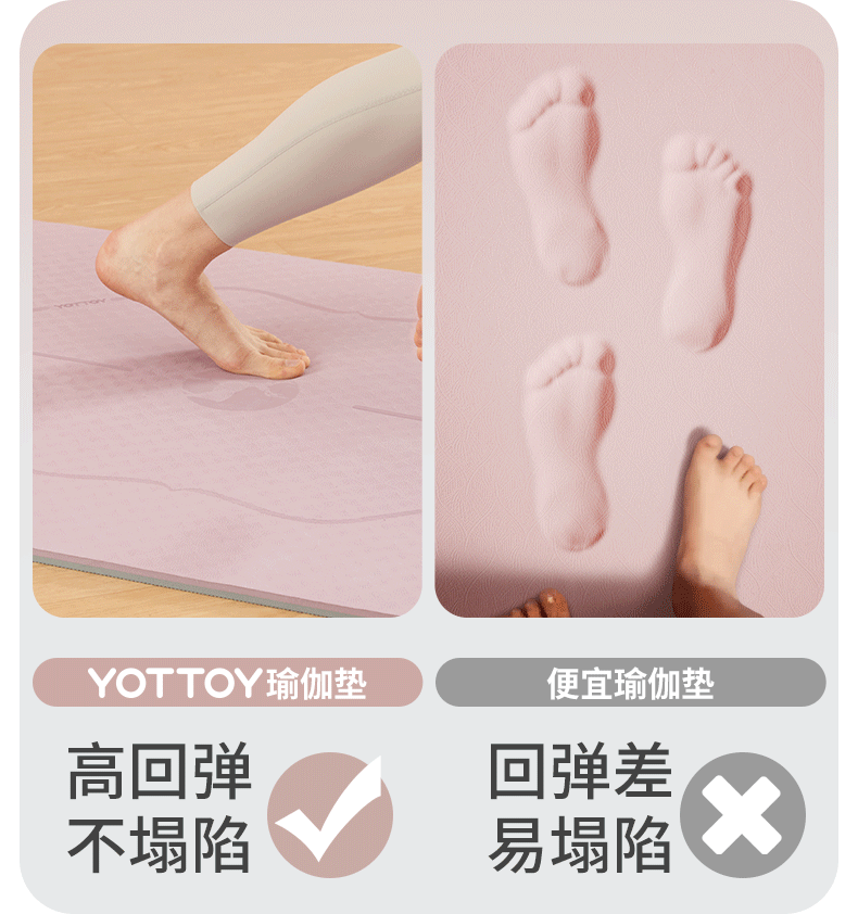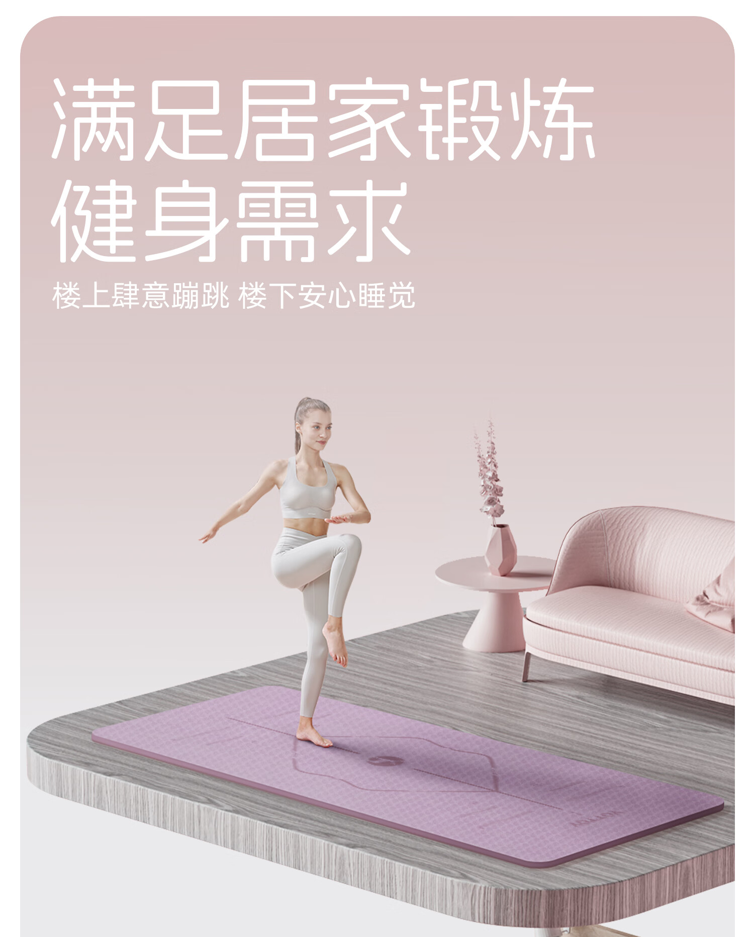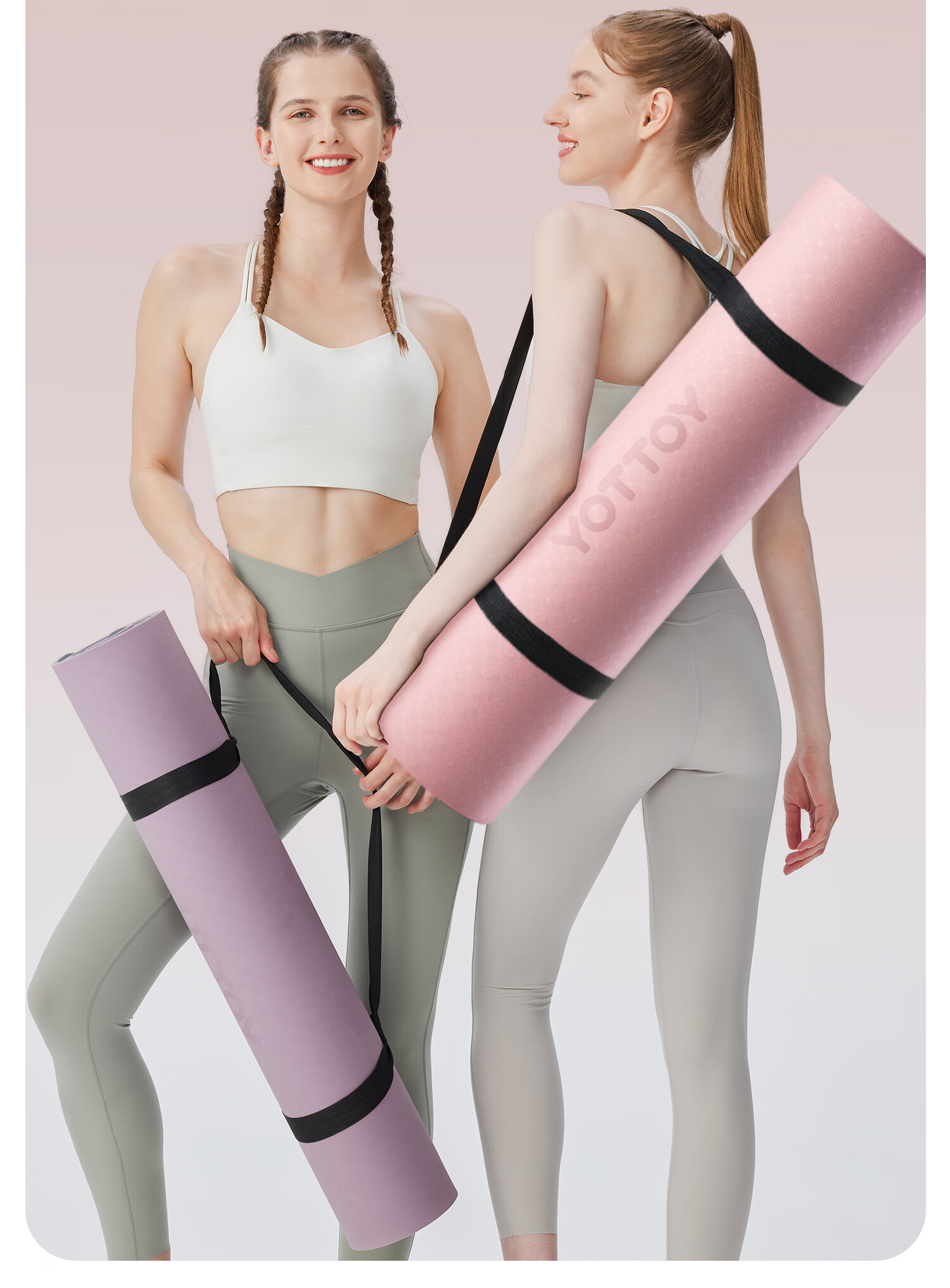Yottoy yoga mat TPE185*80cm widened and lengthened beginners men and women anti-slip fitness home floor mat thickened 7mm Yunshan blue four-piece set 7mm anti-slip shock absorption