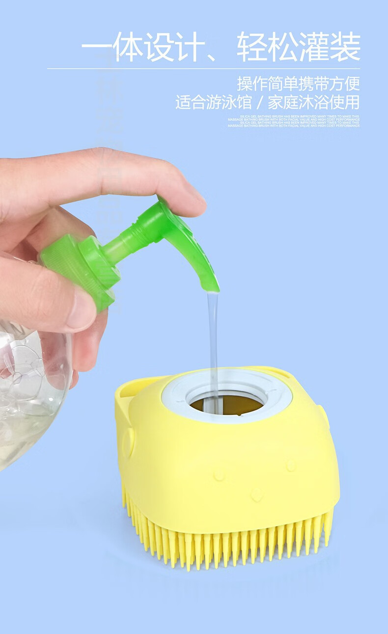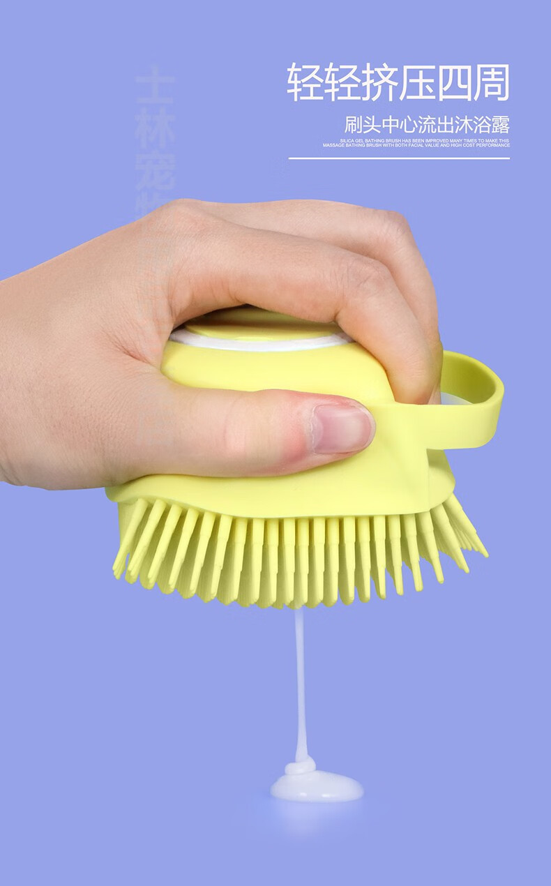 SLPC dog bath brush pet dog bath massage brush bath soft brush can be filled with shower gel bath brush combing brush new yellow soft bristle brush