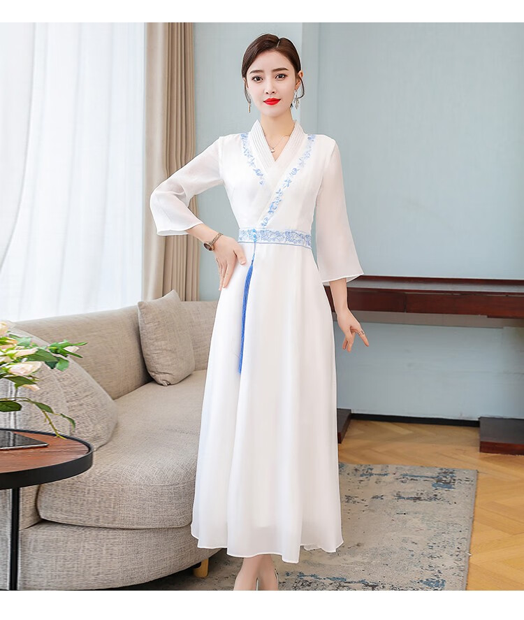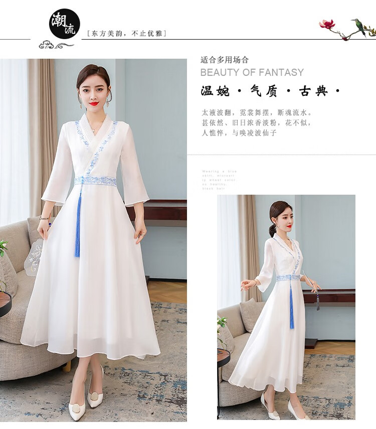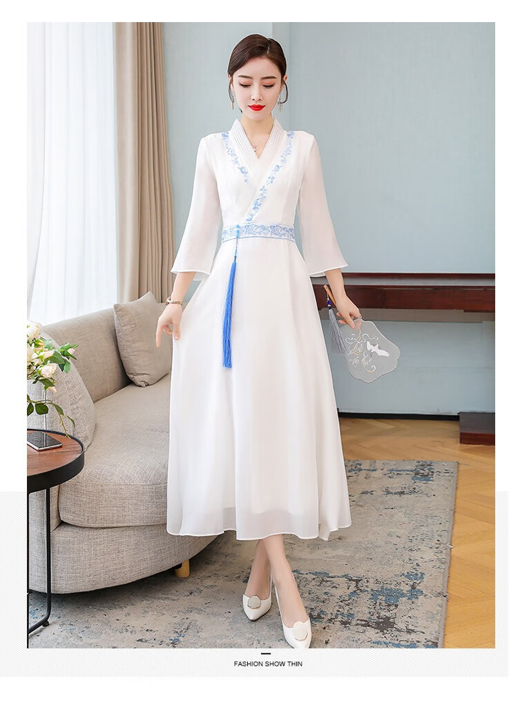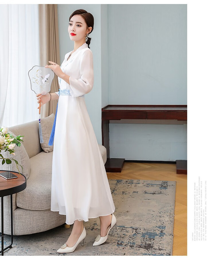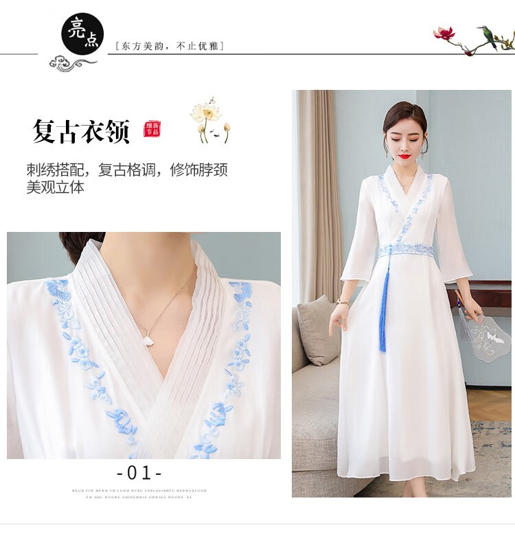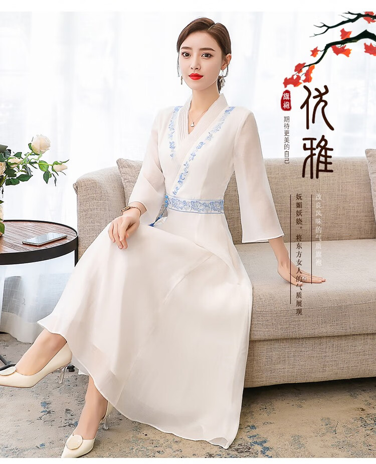 Dainaya Cheongsam Women's 2025 Spring and Summer New Chinese Style Women's Chinese Style Daily Improved Retro Hanfu Dress 2877 White 2XL