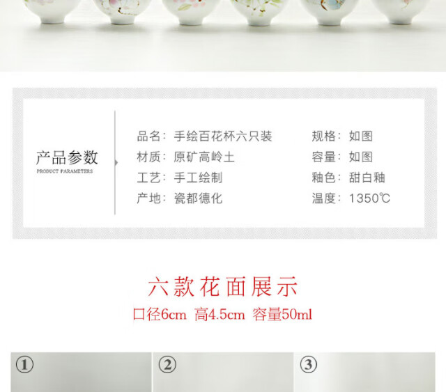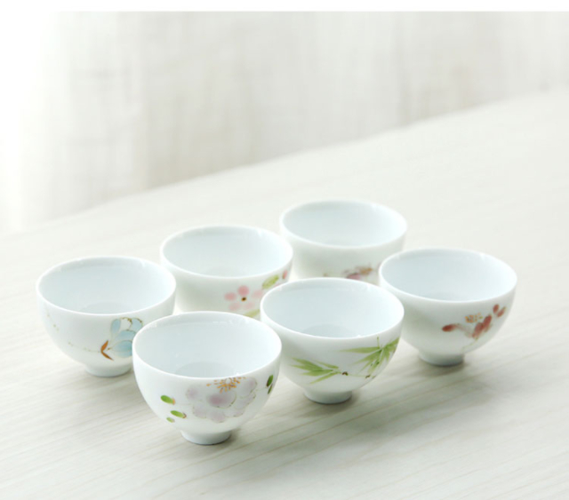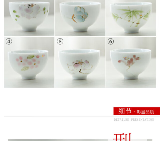 SUSHI CERAMICS Kung Fu Tea Cup Hand-painted Hundred Flowers Ceramic Personal Cup Thin Body Porcelain Master Cup Holiday Gift Box