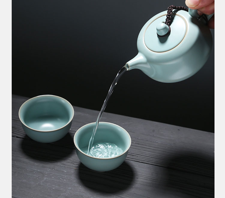 Su's Ceramics Ru Kiln Tea Set Zhongyi Teapot Opening Piece Can Grow Gold Thread One Pot Two Teacups Complete Kung Fu Tea Set J0137