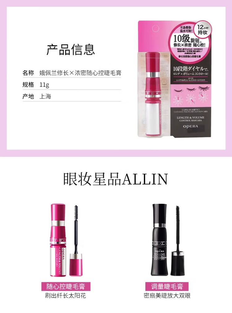 OPERA Slim, thick and controllable mascara 11g (non-smudgeable, adjustable, lengthening mascara)