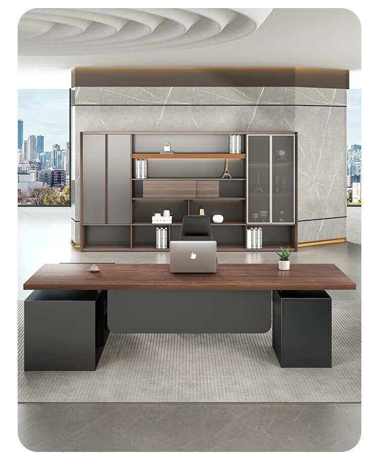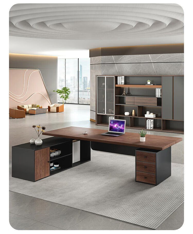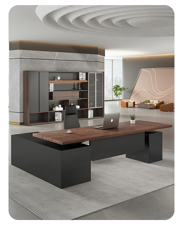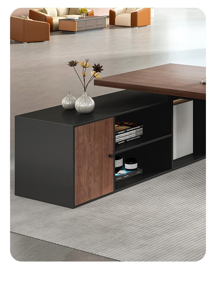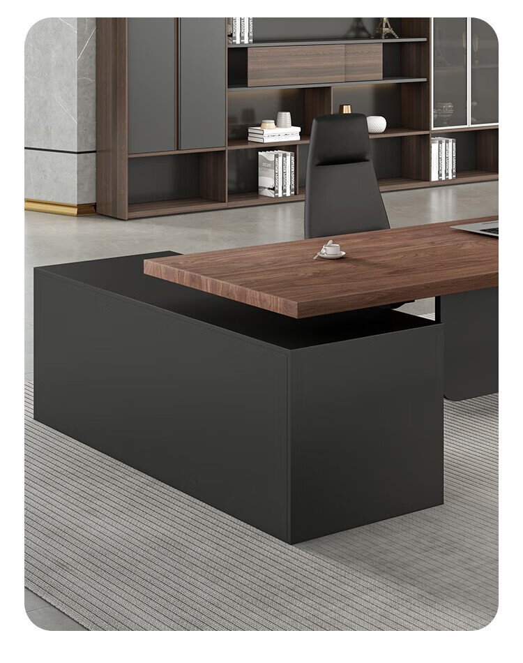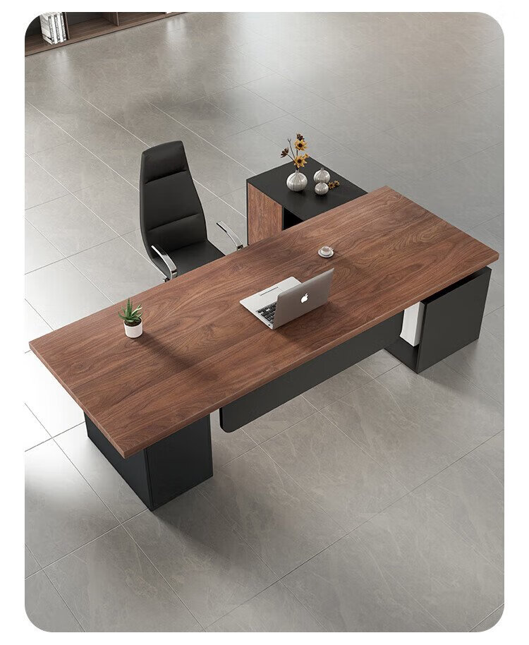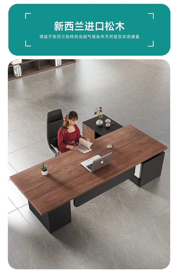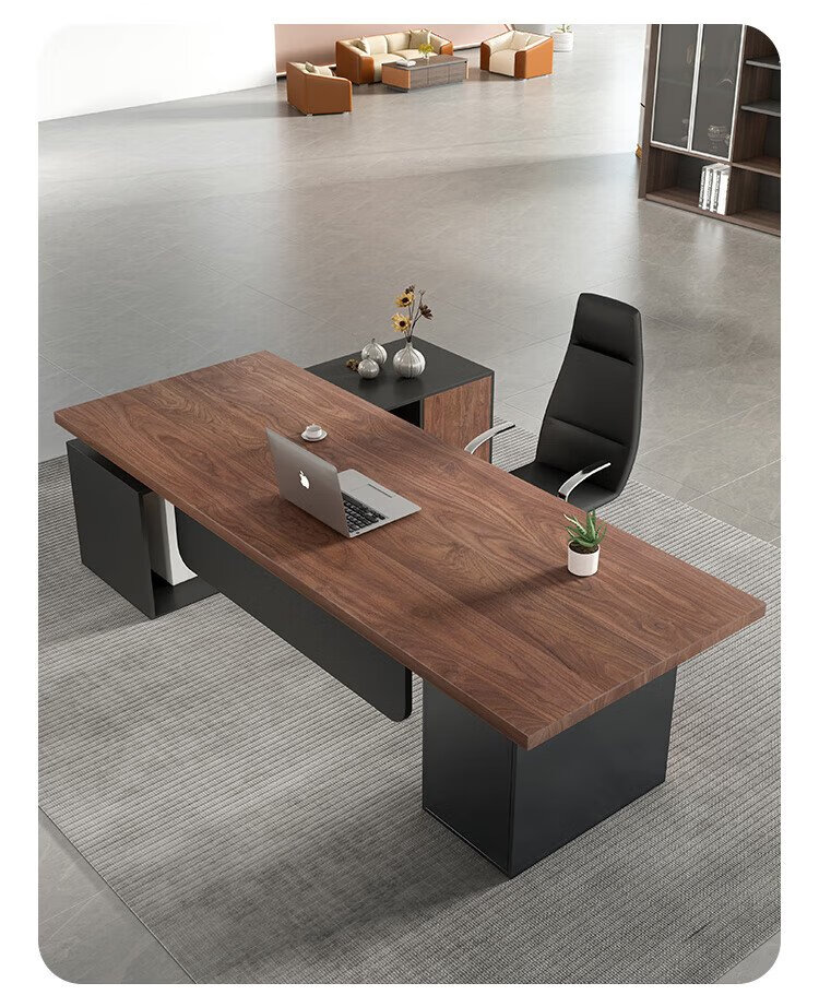 Austen black walnut solid wood boss desk with side cabinet president manager chairman office furniture log desk pine table 200*80*75*4.5