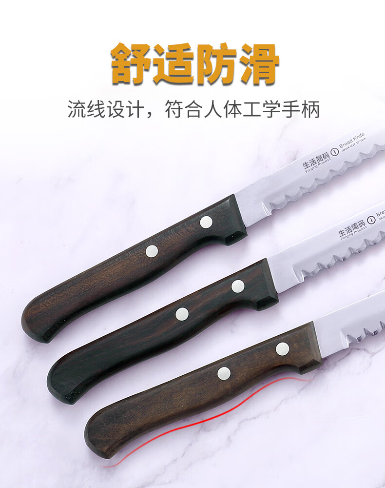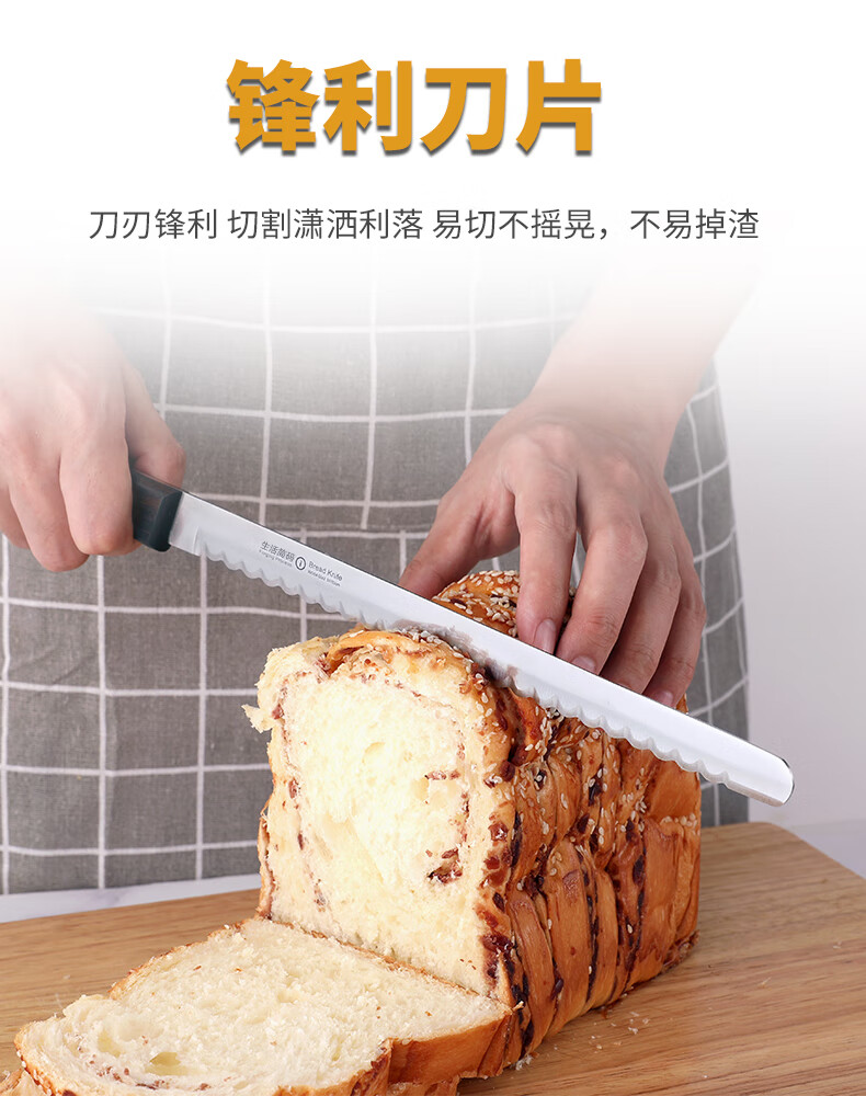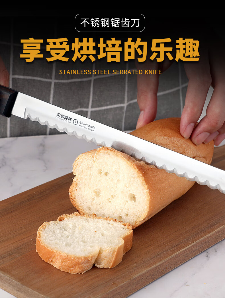 Lifestyle code Special bread knife that does not drop residue Stainless steel corrugated blade Non-deformation cutting knife Baking serrated knife Cake knife Japanese style bread knife