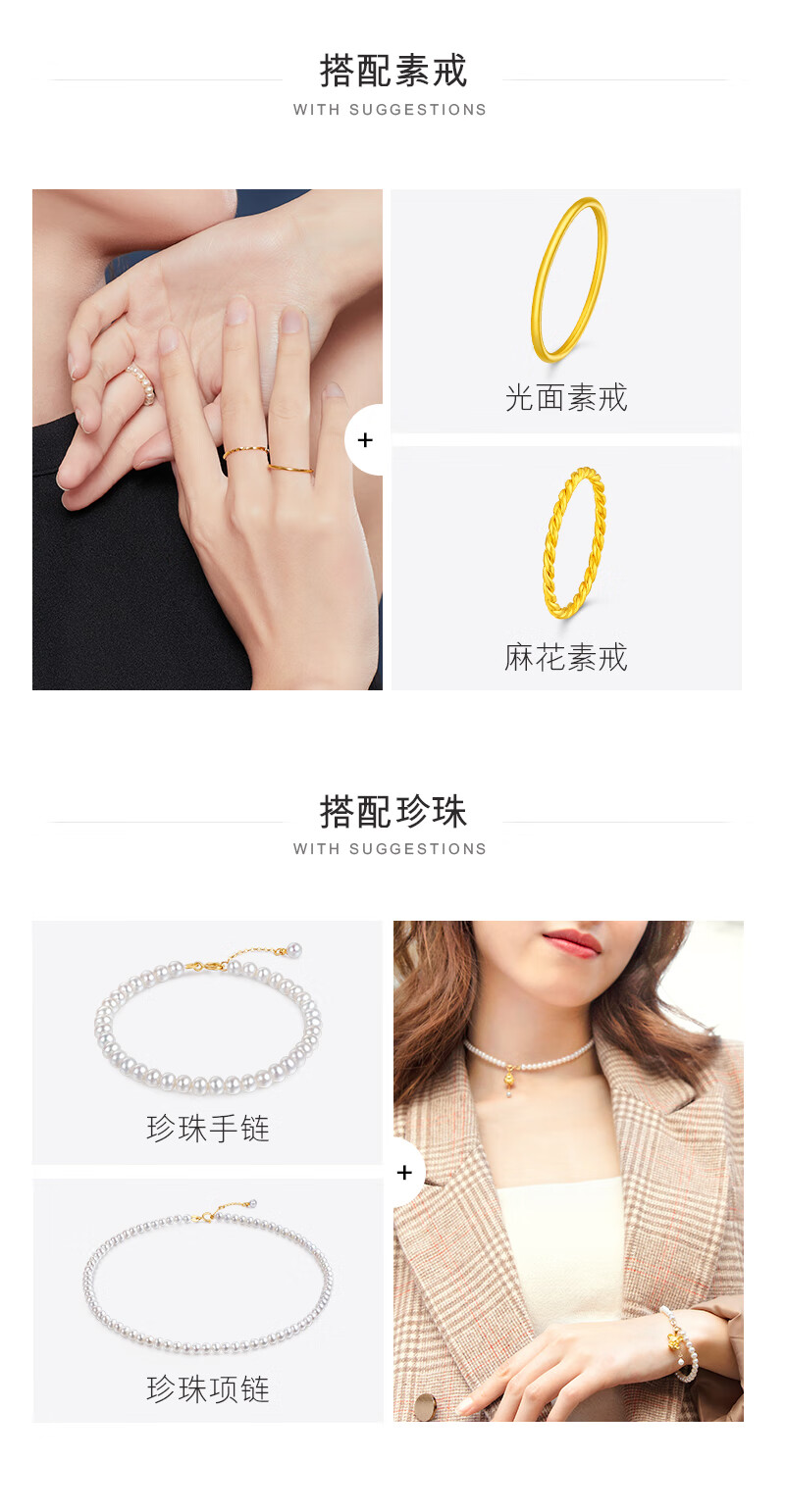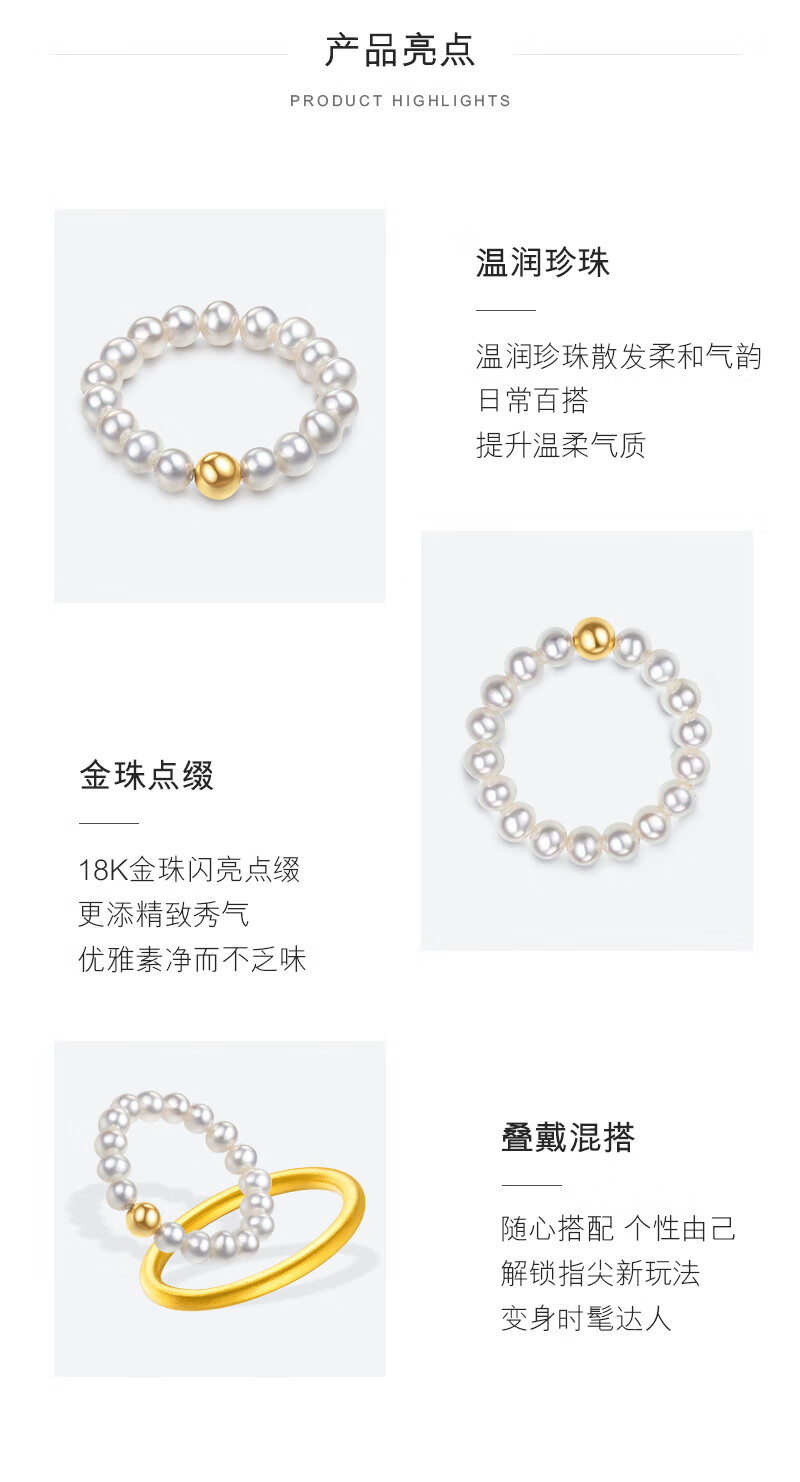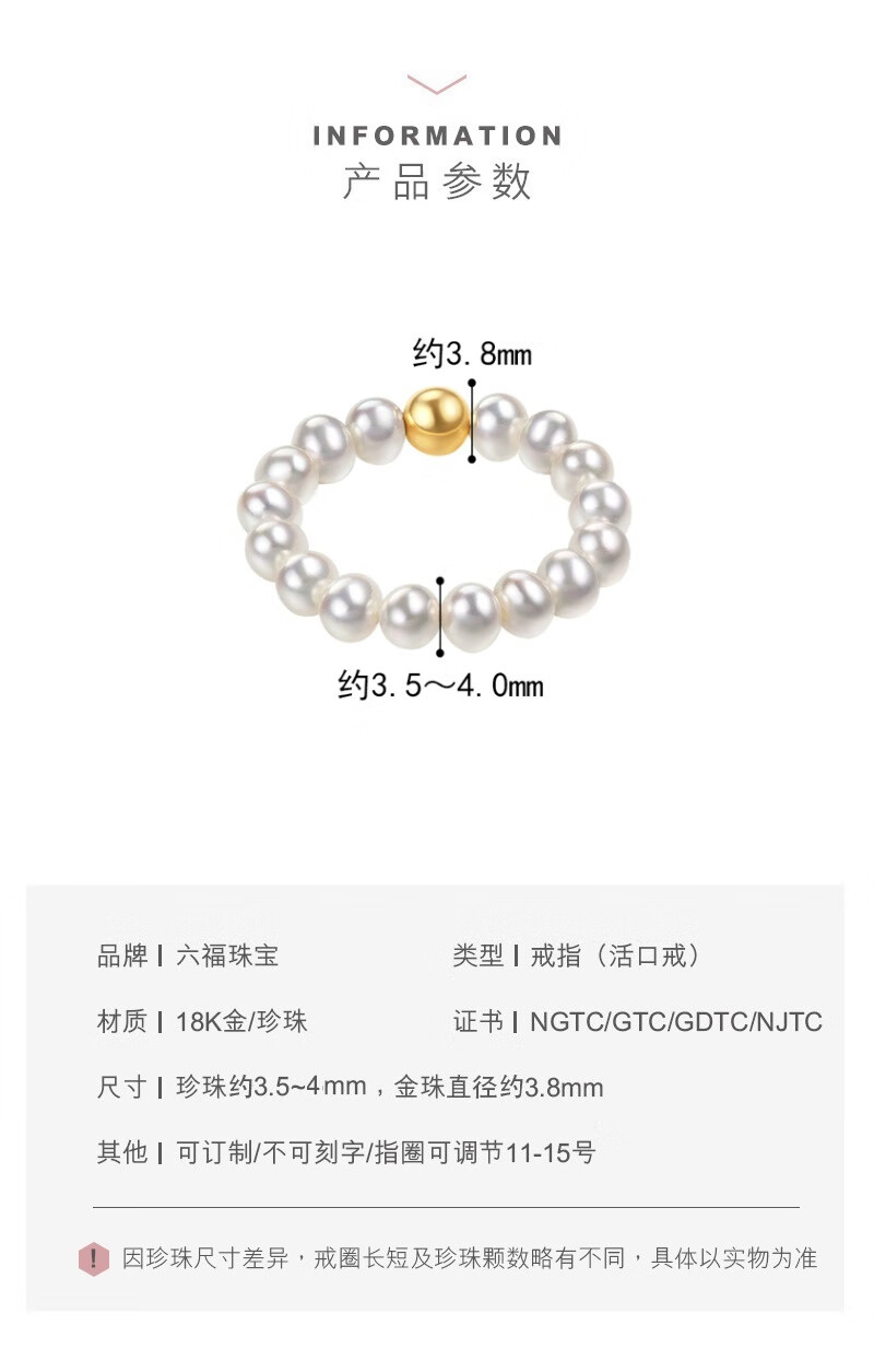 Lukfook Jewelry 18K gold mipearl non-tarnishing freshwater pearl ring fashion ring F87KRTB002Y total weight 0.97 grams