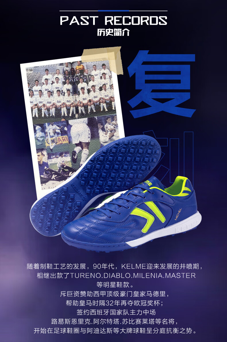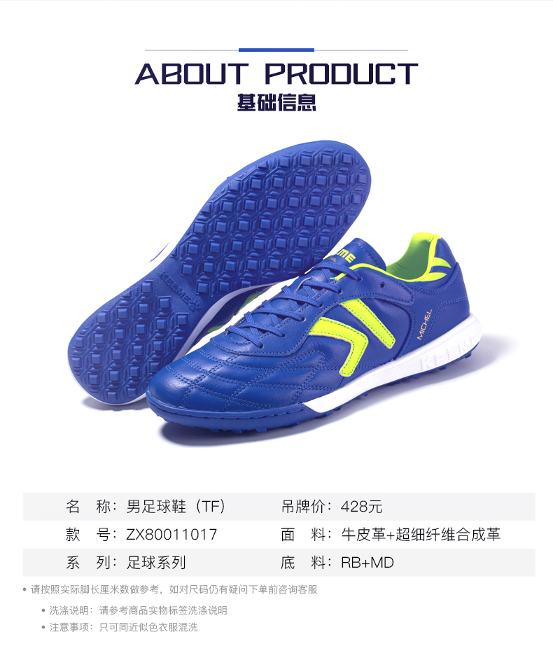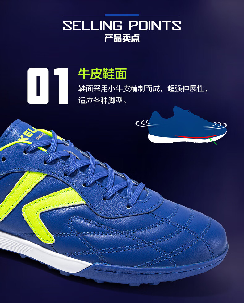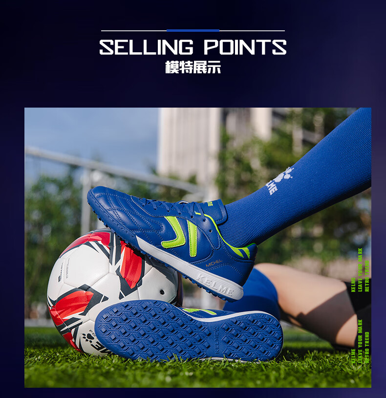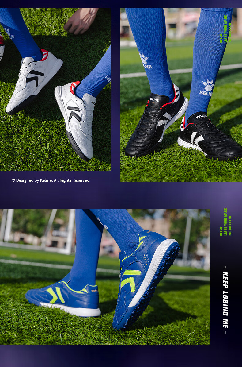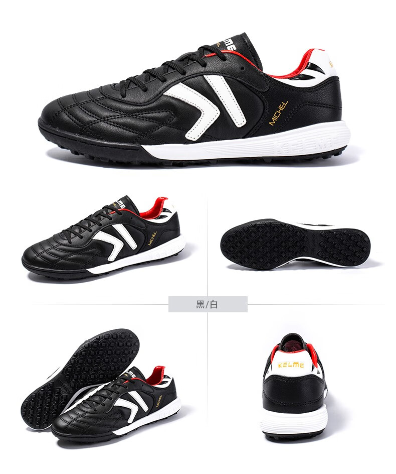 KELME/Kalme football shoes men's TF broken nails summer breathable lace student youth competition training shoes adult black/white 39